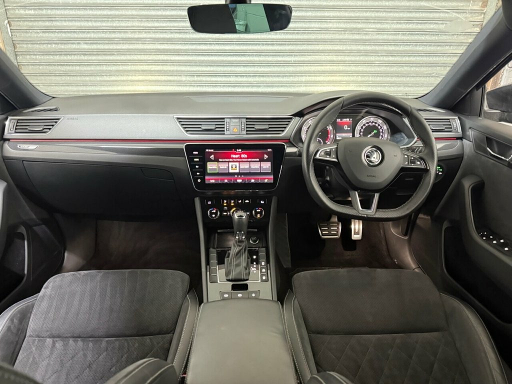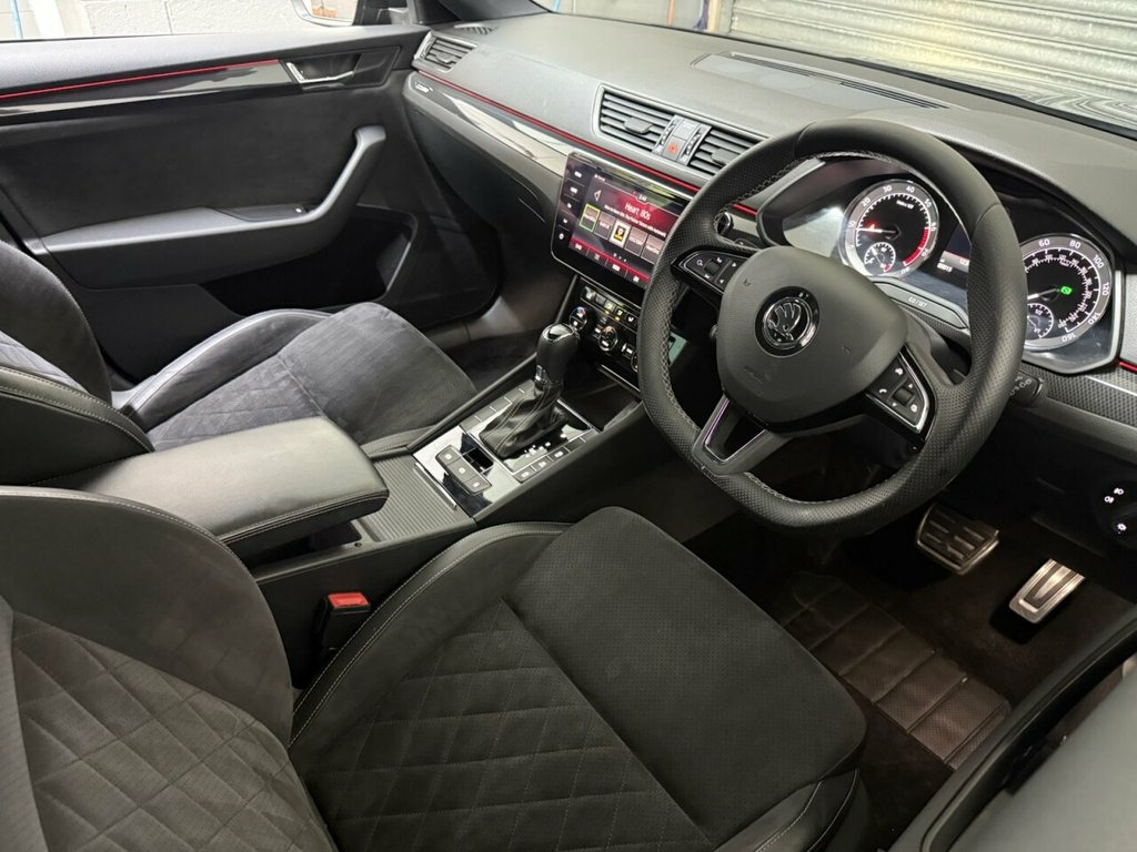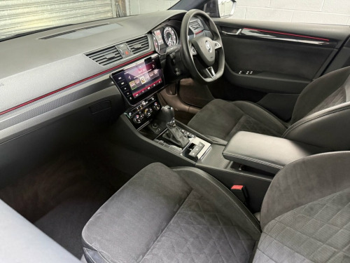 This stunning Skoda Superb SportLine Estate has been exceptionally well cared for and comes with a full Skoda service history. It has been looked after to a high standard, is lovely and clean inside and out, and drives superbly – offering the perfect blend of performance, space, and style. Finished in sleek black metallic paint with 19-inch alloy wheels and sun protection glass, this Superb has a sporty and premium appearance that really stands out. The high SportLine specification includes heated electric folding door mirrors, rear parking sensors, xenon headlights with headlight washers, and front and rear electric windows with child safety locks. Inside, you'll find half leather and Alcantara sports seats with electric memory function, a leather flat-bottom multifunction steering wheel with gearshift paddles, and a leather armrest for added comfort. Technology and convenience features include cruise control, automatic headlights and wipers, a touchscreen multimedia system with satellite navigation, Bluetooth telephone and audio, DAB digital radio, Apple CarPlay, Android Auto, and MirrorLink connectivity. Practical touches such as twin cupholders and the ISOFIX child seat system make it as family-friendly as it is fun to drive. Powered by the impressive 2.0 TSI petrol engine producing 220 PS and paired with the smooth DSG automatic gearbox, this Superb delivers effortless performance with refinement and comfort in equal measure. A lovely, genuine example of Black Magic, 12V Socket on Central Console - Front an, 19in Vega Alloy Wheels with Anti-Theft B, 3 Spoke Leather Supersport Multifunction, 7 Airbags - Front - Front Side - Curtain, ACC - Adaptive Cruise Control, Aero Windscreen Wipers with Intermittent, Alarm with Interior Monitoring - Tilt Se, Amundsen Touchscreen Navigation System, Auto Dimming Rear View Mirror, Bi-Xenon Headlights - AFS and LED Daytim, Black Roof Headlining, Bluetooth, Bolero Radio with 8in Touchscreen Displa, Carbon Optic Interior Elements, CareConnect Including Emergency Call, Colour Multifunction Trip Computer, Cornering Front Fog Lights, DAB Radio, Door Handles - Body Coloured, Drive Mode Selection, Driver Fatigue Sen