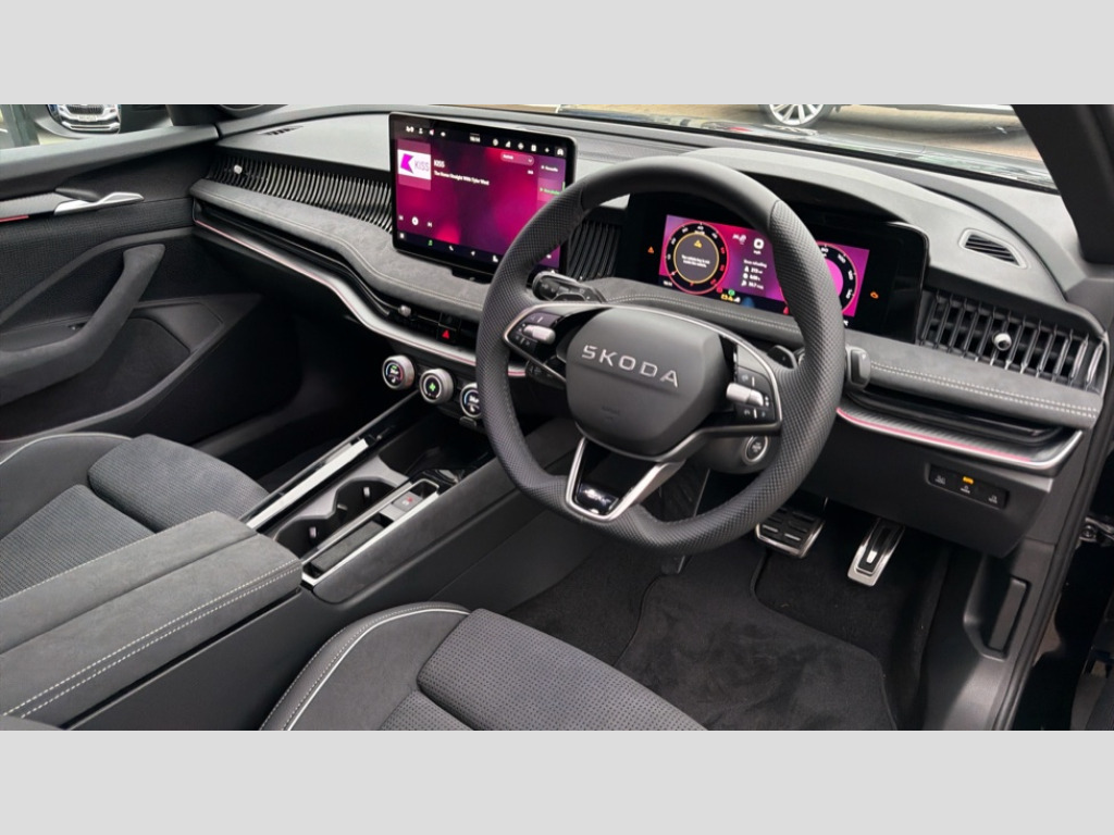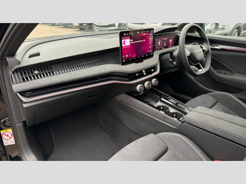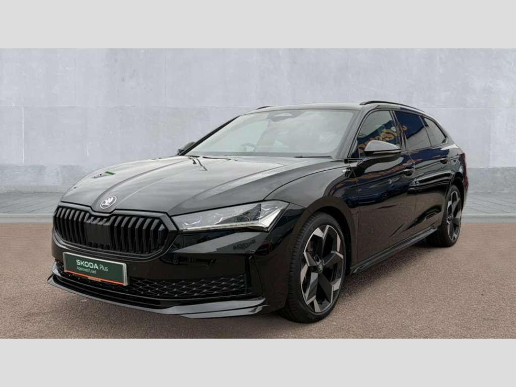 Skoda Superb 2.0 TDI Sportline 5dr DSG 13" touchscreen display with satellite navigation, 4x USB-C ports (2x in front centre console and 2x in rear) (45W), Adaptive cruise control with speed assist,lane assist plus and traffic tram assist, Blind spot detection with door exit warning, Bluetooth system, CareConnect and Emergency Call, ChatGPT functionality, Driver fatigue sensor, Front assist with extended predictive pedestrian protection, Front cross traffic assist, PAS, Quick start all heating software functionality, Stop/start engine system, Traffic sign recognition, Turn assist with evasive assistance, Virtual Cockpit - 10.25" digital display, Voice control system, Washer for rear camera, Wireless charging for one smartphone (15W) with cooling function, Wireless smartlink apple carplay, SmartLink+ android auto, Dynamic chassis control plus with progressive dynamic steering, DAB Digital radio, Display cleaner, FM radio connection, Web radio connection, Acoustic side windows and interior noise suppression, Backdrop lighting, Black exterior styling window and grille surrounds, Black roof rails, Body colour door handles, Dynamic range control with poor weather light and integrated fog light, Electrically adjustable, heated, folding and driver side auto-dimming door mirrors with memory function, integrated indicators and logo projection, Frameless auto-dimming rear view mirror with USB-C, Gloss black door mirrors, Ice scraper in fuel tank cap, LED 3rd brake light, Light assist with High beam control, Light assistant (coming/leaving home/tunnel light), Privacy glass, Rear fog lights (x2), Rear roof spoiler, Rear side wing doors, Rear windscreen wiper, Skoda lettering in black, Sportline badging, Sports bumpers, Windscreen wipers with rain sensor, 12V socket 1x centre console 1x boot, 14-way electrically adjustable, memory, front seats with 4-way pneumatic lumbar support, and extendable thigh support with smart comfort entry aid, 2x cargo elements in boot, 2x light in boot, 3 seat bench in 2nd row, 4x foldable bag hooks in boot, 60:40 Split folding rear seats, Aluminium pedals, Bottle holders in the front doors 1.5 litre bottle and rear 1.5 litre bottle, Cup holder in front with easy open mat, Front armrest with storage box, Front sports seats, Heated and ventilated front seats, Height adjustable front and rear head restraints, Illuminated glovebox, Interior lights with control switches, Isofix child seat fittings in outer rear and front passenger seats, LED front and rear reading lights, Single front passenger seat, Skoda lettering on steering wheel, Storage compartment with cover, Storage pockets on back of front seats, Sun visors with illuminated vanity mirrors, Ticket holder on A Pillar, Tri zone climate control, Umbrella in driver's door, Light and view package - Superb, Transport package - Superb Estate, 3 rear seatbelts, 8 Airbags - Front driver and passenger,front side driver and passenger,centre,curtain front and rear,drivers knee, Crew protect assist, Driver and passenger seatbelts with warning light, Electronic parking brake, ESC including ABS, EBV, MSR, ASR, EDS, HBA, DSR, RBS, CBC, multi-collision brake (MKB) and Auto hold, Hill hold assist, Power operated child lock in rear doors, Alarm with interior monitoring tilt sensor and back up horn, Backrest remote release from trunk, Electronic engine immobiliser, Keyless start/stop, Remote central locking with SAFE system, Third key, Walk away locking, Decorative front door sills, 19" Torcular polished black alloy wheels with anti theft wheel bolts