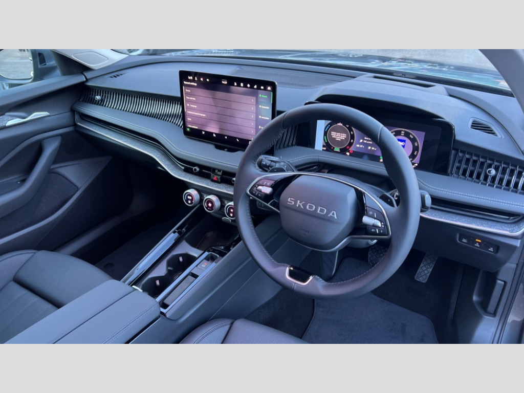 Skoda Superb 1.5 TSI iV SE L DSG 5dr 13" touchscreen display with satellite navigation, 4x USB-C ports (2x in front centre console and 2x in rear) (45W), Adaptive cruise control with speed assist,lane assist plus and traffic tram assist, Blind spot detection with door exit warning, Bluetooth system, CareConnect and Emergency Call, ChatGPT functionality, Drive mode selection, Driver fatigue sensor, Easy boot close funtion, Front assist with extended predictive pedestrian protection, Front cross traffic assist, Quick start all heating software functionality, Stop/start engine system, Traffic sign recognition, Turn assist with evasive assistance, Virtual Cockpit - 10.25" digital display, Voice control system, Washer for rear camera, Wireless charging for one smartphone (15W) with cooling function, Wireless smartlink apple carplay, SmartLink+ android auto, Mode 3 charging cable, DAB Digital radio, Display cleaner, FM radio connection, Web radio connection, Acoustic side windows and interior noise suppression, Backdrop lighting, Body colour door handles, Body coloured door mirrors, Chrome roof rails, Chrome window surround, Dark chrome grille surround, Dynamic range control with poor weather light and integrated fog light, Electrically adjustable, heated, folding and driver side auto-dimming door mirrors with memory function, integrated indicators and logo projection, Frameless auto-dimming rear view mirror with USB-C, Ice scraper in fuel tank cap, LED 3rd brake light, Light assist with High beam control, Light assistant (coming/leaving home/tunnel light), Privacy glass, Rear fog lights (x2), Rear roof spoiler, Rear side wing doors, Rear windscreen wiper, Unique dark chrome design logo on alloy wheels, Windscreen wipers with rain sensor, 12V socket 1x centre console 1x boot, 14-way electrically adjustable, memory, front seats with 4-way pneumatic lumbar support, and extendable thigh support with smart comfort entry aid, 2x cargo elements in boot, 2x light in boot, 3 seat bench in 2nd row, 4x foldable bag hooks in boot, 60:40 Split folding rear seats, Advanced massage function for front seats, Bottle holders in the front doors 1.5 litre bottle and rear 1.5 litre bottle, Cup holder in front with easy open mat, Front armrest with storage box, Front sports comfort seats, Heated and ventilated front seats, Height adjustable front and rear head restraints, Illuminated glovebox, Interior lights with control switches, Isofix child seat fittings in outer rear and front passenger seats, LED front and rear reading lights, Single front passenger seat, Skoda lettering on steering wheel, Storage compartment with cover, Storage pockets on back of front seats, Sun visors with illuminated vanity mirrors, Ticket holder on A Pillar, Tri zone climate control, Umbrella in driver's door, Light and view package - Superb, Transport package - Superb Estate, 3 rear seatbelts, 8 Airbags - Front driver and passenger,front side driver and passenger,centre,curtain front and rear,drivers knee, Crew protect assist, Driver and passenger seatbelts with warning light, Electronic parking brake, ESC including ABS, EBV, MSR, ASR, EDS, HBA, DSR, RBS, CBC, multi-collision brake (MKB) and Auto hold, Hill hold assist, Power operated child lock in rear doors, Alarm with interior monitoring tilt sensor and back up horn, Backrest remote release from trunk, Electronic engine immobiliser, Keyless start/stop, Remote central locking with SAFE system, Third key, Walk away locking, Decorative front door sills, Tyre repair kit