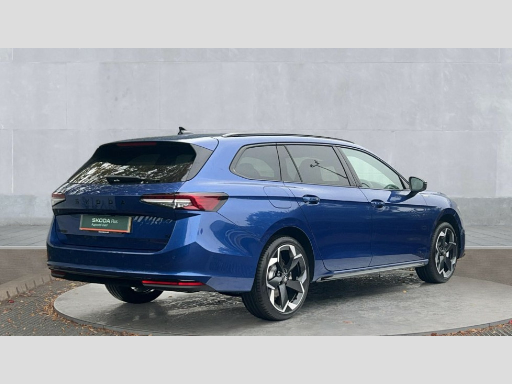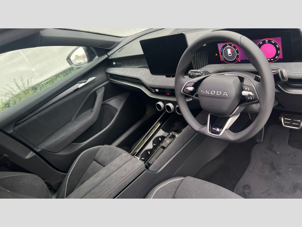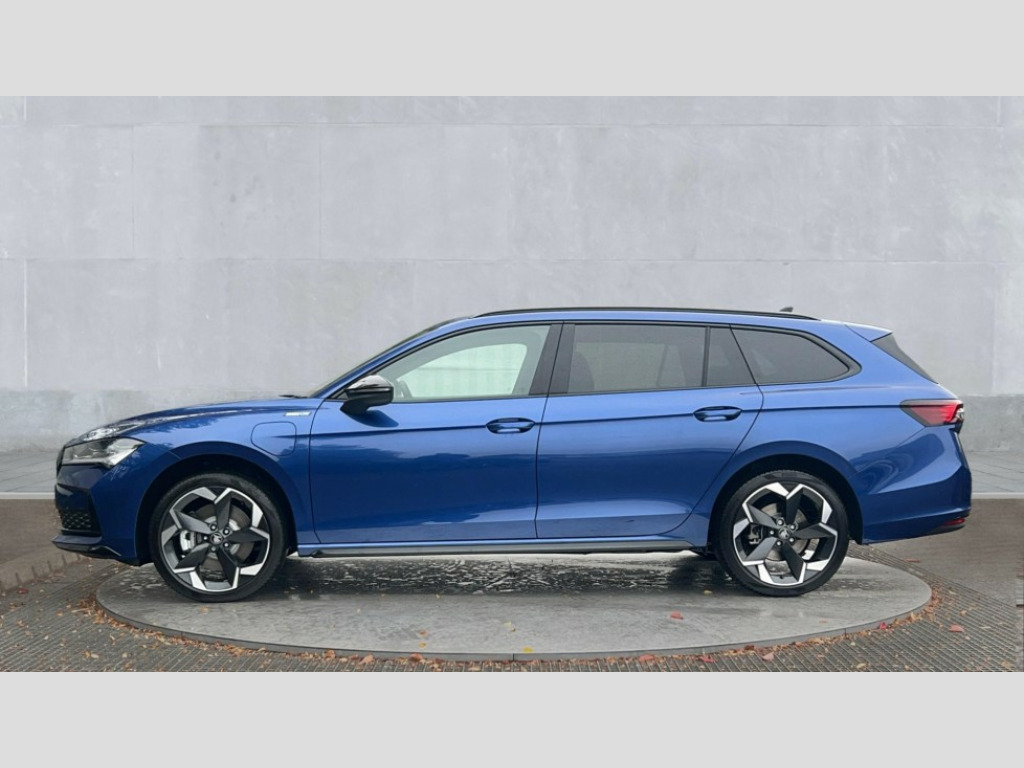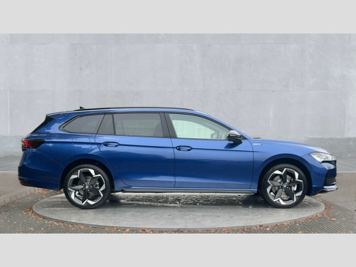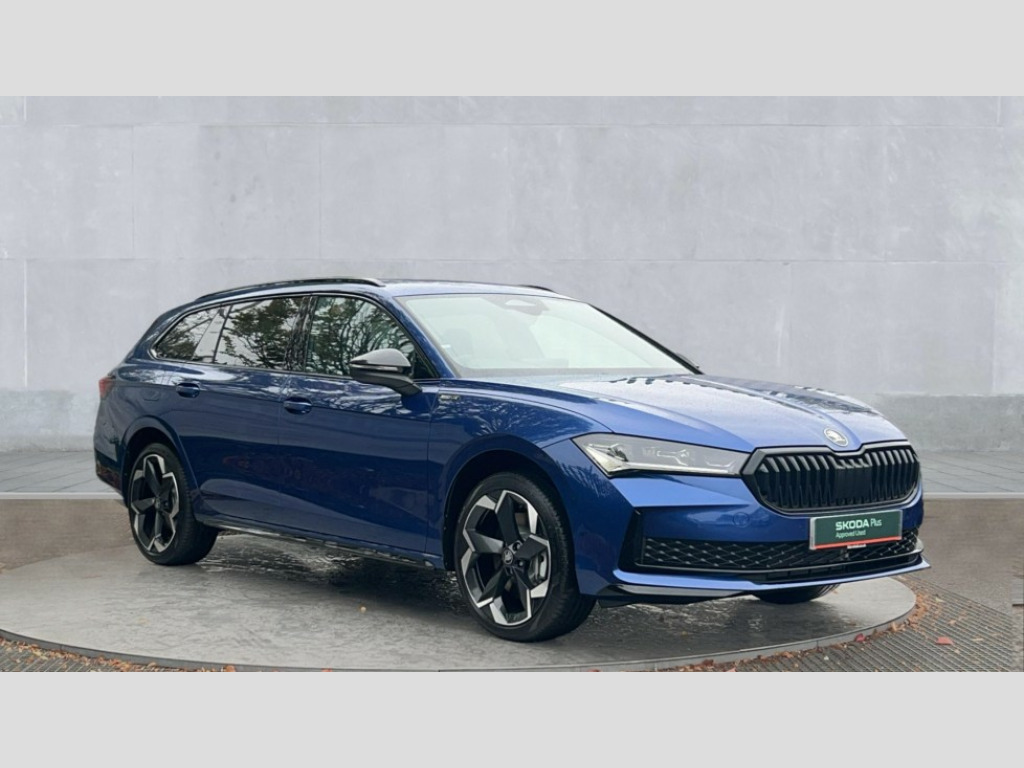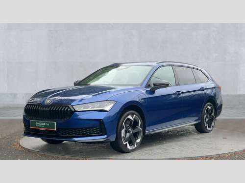 Skoda Superb 1.5 TSI iV Sportline 5dr DSG 13" touchscreen display with satellite navigation, 4x USB-C ports (2x in front centre console and 2x in rear) (45W), Adaptive cruise control with speed assist,lane assist plus and traffic tram assist, Blind spot detection with door exit warning, Bluetooth system, CareConnect and Emergency Call, ChatGPT functionality, Drive mode selection, Driver fatigue sensor, Front assist with extended predictive pedestrian protection, Front cross traffic assist, PAS, Quick start all heating software functionality, Stop/start engine system, Traffic sign recognition, Turn assist with evasive assistance, Virtual Cockpit - 10.25" digital display, Voice control system, Washer for rear camera, Wireless charging for one smartphone (15W) with cooling function, Wireless smartlink apple carplay, SmartLink+ android auto, Dynamic chassis control plus with progressive dynamic steering, Mode 3 charging cable, DAB Digital radio, Display cleaner, FM radio connection, Web radio connection, Acoustic side windows and interior noise suppression, Backdrop lighting, Black exterior styling window and grille surrounds, Black roof rails, Body colour door handles, Dynamic range control with poor weather light and integrated fog light, Electrically adjustable, heated, folding and driver side auto-dimming door mirrors with memory function, integrated indicators and logo projection, Frameless auto-dimming rear view mirror with USB-C, Gloss black door mirrors, Ice scraper in fuel tank cap, LED 3rd brake light, Light assist with High beam control, Light assistant (coming/leaving home/tunnel light), Privacy glass, Rear fog lights (x2), Rear roof spoiler, Rear side wing doors, Rear windscreen wiper, Skoda lettering in black, Sportline badging, Sports bumpers, Windscreen wipers with rain sensor, 12V socket 1x centre console 1x boot, 14-way electrically adjustable, memory, front seats with 4-way pneumatic lumbar support, and extendable thigh support with smart comfort entry aid, 2x cargo elements in boot, 2x light in boot, 3 seat bench in 2nd row, 4x foldable bag hooks in boot, 60:40 Split folding rear seats, Aluminium pedals, Bottle holders in the front doors 1.5 litre bottle and rear 1.5 litre bottle, Cup holder in front with easy open mat, Front armrest with storage box, Front sports seats, Heated and ventilated front seats, Height adjustable front and rear head restraints, Illuminated glovebox, Interior lights with control switches, Isofix child seat fittings in outer rear and front passenger seats, LED front and rear reading lights, Single front passenger seat, Skoda lettering on steering wheel, Storage compartment with cover, Storage pockets on back of front seats, Sun visors with illuminated vanity mirrors, Ticket holder on A Pillar, Tri zone climate control, Umbrella in driver's door, Light and view package - Superb, Transport package - Superb Estate, 3 rear seatbelts, 8 Airbags - Front driver and passenger,front side driver and passenger,centre,curtain front and rear,drivers knee, Crew protect assist, Driver and passenger seatbelts with warning light, Electronic parking brake, ESC including ABS, EBV, MSR, ASR, EDS, HBA, DSR, RBS, CBC, multi-collision brake (MKB) and Auto hold, Hill hold assist, Power operated child lock in rear doors, Alarm with interior monitoring tilt sensor and back up horn, Backrest remote release from trunk, Electronic engine immobiliser, Keyless start/stop, Remote central locking with SAFE system, Third key, Walk away locking, Decorative front door sills, 19" Torcular polished black alloy wheels with anti theft wheel bolts, Tyre repair kit