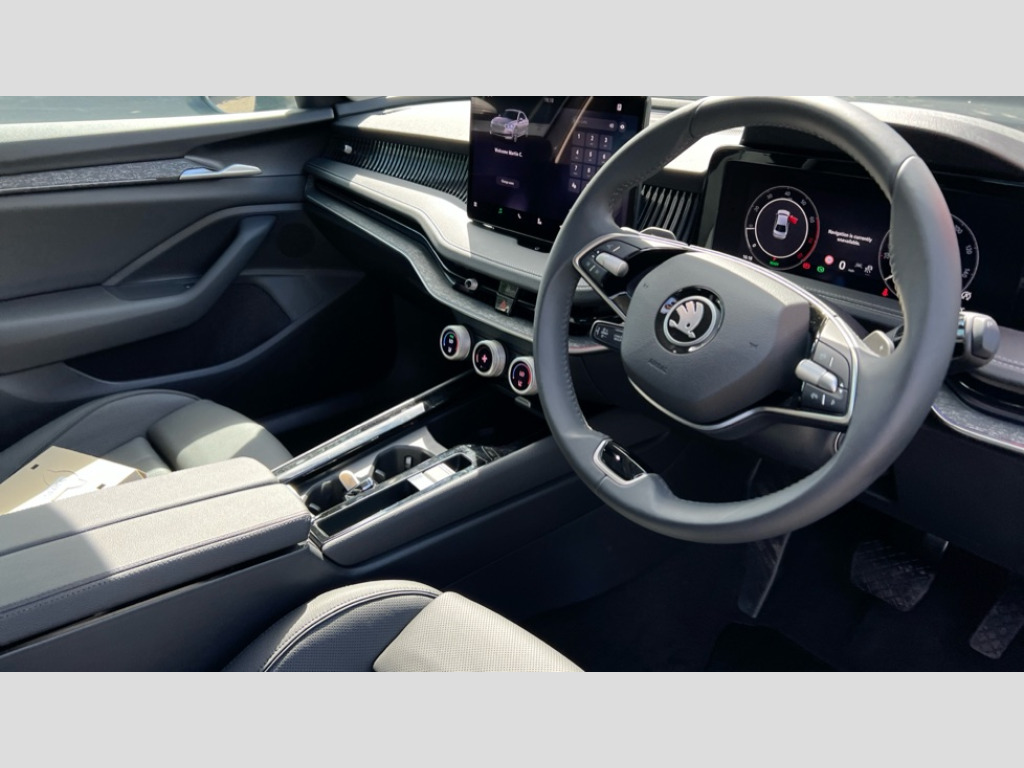 Skoda Superb 1.5 TSI e-TEC SE L 5dr DSG 13" touchscreen display with satellite navigation, 4x USB-C ports (2x in front centre console and 2x in rear) (45W), Adaptive cruise control with speed assist,lane assist plus and traffic tram assist, Blind spot detection with door exit warning, Bluetooth system, CareConnect and Emergency Call, ChatGPT functionality, Driver fatigue sensor, Front assist with extended predictive pedestrian protection, Front cross traffic assist, Quick start all heating software functionality, Stop/start engine system, Traffic sign recognition, Turn assist with evasive assistance, Virtual Cockpit - 10.25" digital display, Voice control system, Washer for rear camera, Wireless charging for one smartphone (15W) with cooling function, Wireless smartlink apple carplay, SmartLink+ android auto, DAB Digital radio, Display cleaner, FM radio connection, Web radio connection, Acoustic side windows and interior noise suppression, Backdrop lighting, Body colour door handles, Body coloured door mirrors, Chrome window surround, Dark chrome grille surround, Dynamic range control with poor weather light and integrated fog light, Electrically adjustable, heated, folding and driver side auto-dimming door mirrors with memory function, integrated indicators and logo projection, Frameless auto-dimming rear view mirror with USB-C, Ice scraper in fuel tank cap, LED 3rd brake light, Light assist with High beam control, Light assistant (coming/leaving home/tunnel light), Privacy glass, Rear fog lights (x2), Rear side wing doors, Unique dark chrome design logo on alloy wheels, Windscreen wipers with rain sensor, 12V socket 1x centre console 1x boot, 14-way electrically adjustable, memory, front seats with 4-way pneumatic lumbar support, and extendable thigh support with smart comfort entry aid, 2x cargo elements in boot, 2x light in boot, 3 seat bench in 2nd row, 60:40 Split folding rear seats, Advanced massage function for front seats, Bottle holders in the front doors 1.5 litre bottle and rear 1.5 litre bottle, Cup holder in front with easy open mat, Front armrest with storage box, Front sports comfort seats, Heated and ventilated front seats, Height adjustable front and rear head restraints, Illuminated glovebox, Interior lights with control switches, Isofix child seat fittings in outer rear and front passenger seats, LED front and rear reading lights, Single front passenger seat, Skoda lettering on steering wheel, Storage compartment with cover, Storage pockets on back of front seats, Sun visors with illuminated vanity mirrors, Ticket holder on A Pillar, Tri zone climate control, Umbrella in driver's door, Light and view package - Superb, Transport package - Superb Hatchback, 3 rear seatbelts, 8 Airbags - Front driver and passenger,front side driver and passenger,centre,curtain front and rear,drivers knee, Crew protect assist, Driver and passenger seatbelts with warning light, Electronic parking brake, ESC including ABS, EBV, MSR, ASR, EDS, HBA, DSR, RBS, CBC, multi-collision brake (MKB) and Auto hold, Hill hold assist, Power operated child lock in rear doors, Alarm with interior monitoring tilt sensor and back up horn, Backrest remote release from trunk, Electronic engine immobiliser, Keyless start/stop, Remote central locking with SAFE system, Third key, Walk away locking, Decorative front door sills