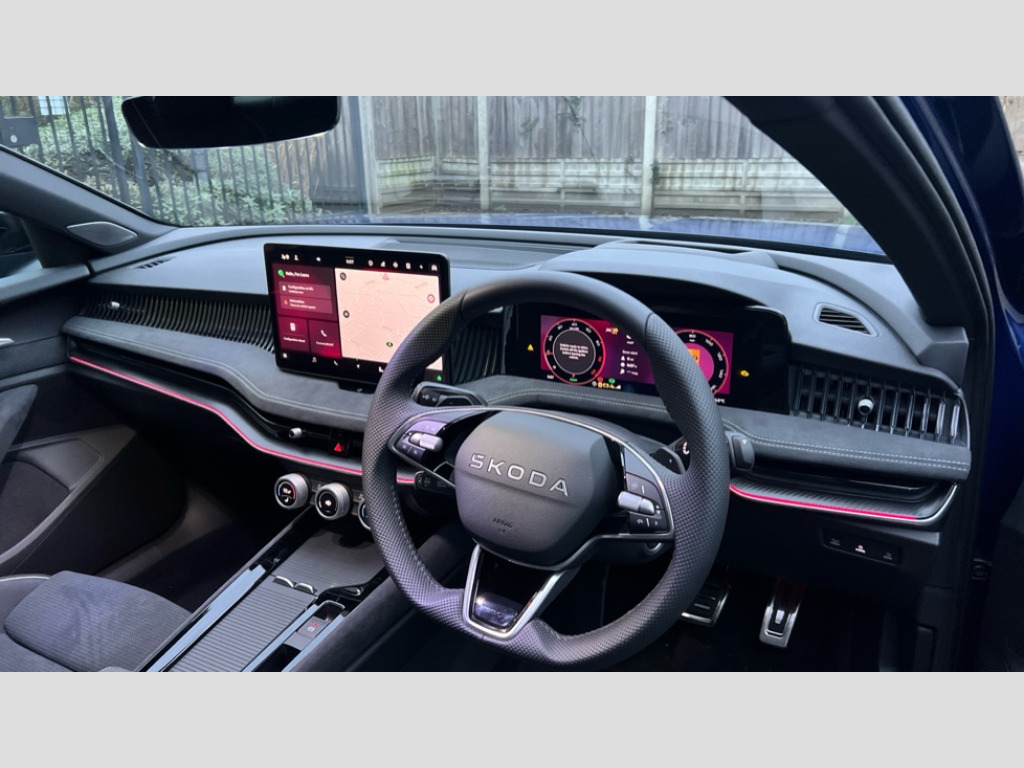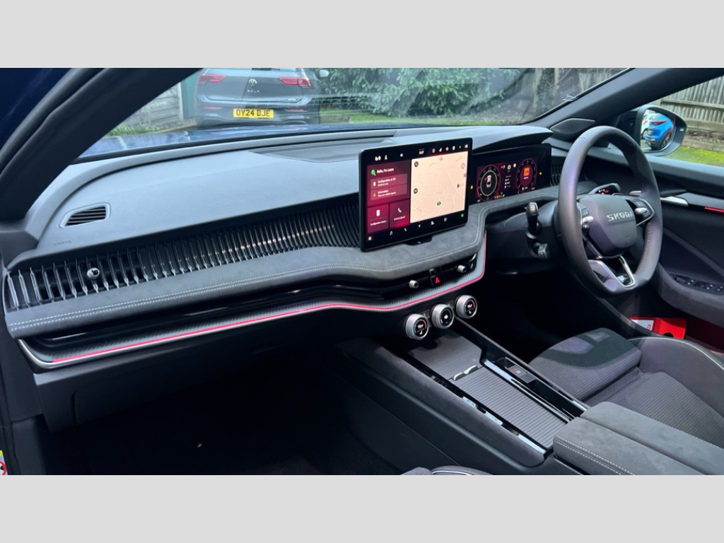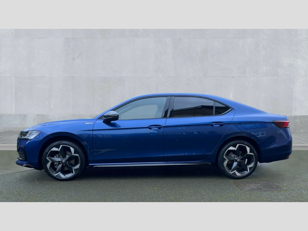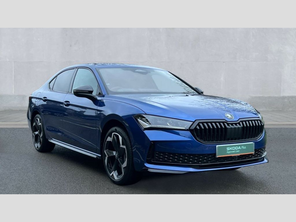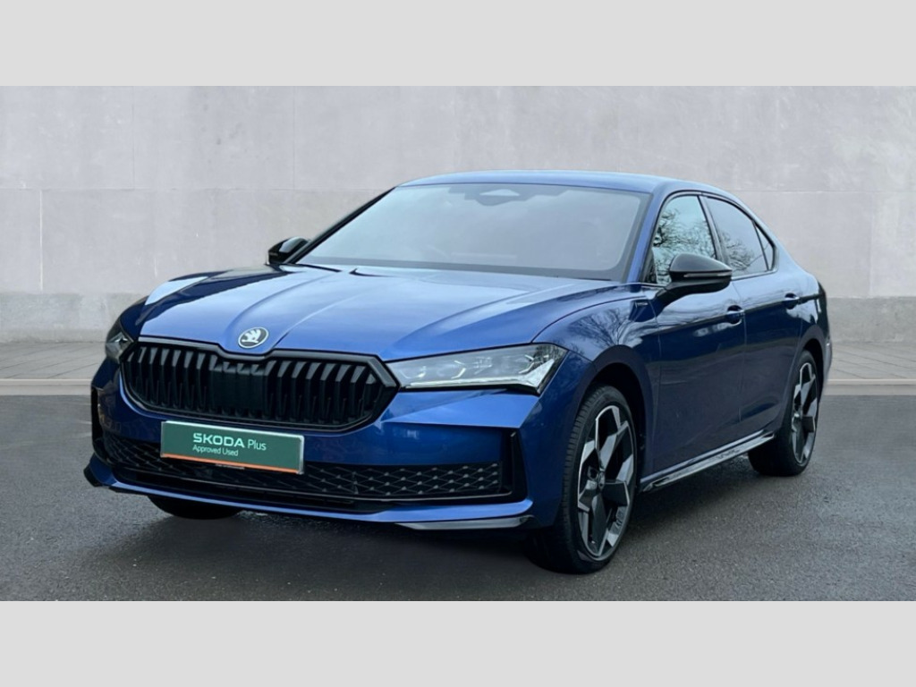 Skoda Superb 1.5 TSI e-TEC Sportline 5dr DSG 13" touchscreen display with satellite navigation, 4x USB-C ports (2x in front centre console and 2x in rear) (45W), Adaptive cruise control with speed assist,lane assist plus and traffic tram assist, Blind spot detection with door exit warning, Bluetooth system, CareConnect and Emergency Call, ChatGPT functionality, Driver fatigue sensor, Easy boot close funtion, Front assist with extended predictive pedestrian protection, Front cross traffic assist, PAS, Quick start all heating software functionality, Stop/start engine system, Traffic sign recognition, Turn assist with evasive assistance, Virtual Cockpit - 10.25" digital display, Voice control system, Washer for rear camera, Wireless charging for one smartphone (15W) with cooling function, Wireless smartlink apple carplay, SmartLink+ android auto, Dynamic chassis control plus with progressive dynamic steering, DAB Digital radio, Display cleaner, FM radio connection, Web radio connection, Acoustic side windows and interior noise suppression, Backdrop lighting, Black exterior styling window and grille surrounds, Body colour door handles, Dynamic range control with poor weather light and integrated fog light, Electrically adjustable, heated, folding and driver side auto-dimming door mirrors with memory function, integrated indicators and logo projection, Frameless auto-dimming rear view mirror with USB-C, Gloss black door mirrors, Ice scraper in fuel tank cap, LED 3rd brake light, Light assist with High beam control, Light assistant (coming/leaving home/tunnel light), Privacy glass, Rear fog lights (x2), Rear side wing doors, Skoda lettering in black, Sportline badging, Sports bumpers, Windscreen wipers with rain sensor, 12V socket 1x centre console 1x boot, 14-way electrically adjustable, memory, front seats with 4-way pneumatic lumbar support, and extendable thigh support with smart comfort entry aid, 2x cargo elements in boot, 2x light in boot, 3 seat bench in 2nd row, 60:40 Split folding rear seats, Aluminium pedals, Bottle holders in the front doors 1.5 litre bottle and rear 1.5 litre bottle, Cup holder in front with easy open mat, Front armrest with storage box, Front sports seats, Heated and ventilated front seats, Height adjustable front and rear head restraints, Illuminated glovebox, Interior lights with control switches, Isofix child seat fittings in outer rear and front passenger seats, LED front and rear reading lights, Single front passenger seat, Skoda lettering on steering wheel, Storage compartment with cover, Storage pockets on back of front seats, Sun visors with illuminated vanity mirrors, Ticket holder on A Pillar, Tri zone climate control, Umbrella in driver's door, Light and view package - Superb, Transport package - Superb Hatchback, 3 rear seatbelts, 8 Airbags - Front driver and passenger,front side driver and passenger,centre,curtain front and rear,drivers knee, Crew protect assist, Driver and passenger seatbelts with warning light, Electronic parking brake, ESC including ABS, EBV, MSR, ASR, EDS, HBA, DSR, RBS, CBC, multi-collision brake (MKB) and Auto hold, Hill hold assist, Power operated child lock in rear doors, Alarm with interior monitoring tilt sensor and back up horn, Backrest remote release from trunk, Electronic engine immobiliser, Keyless start/stop, Remote central locking with SAFE system, Third key, Walk away locking, Decorative front door sills, 19" Torcular polished black alloy wheels with anti theft wheel bolts