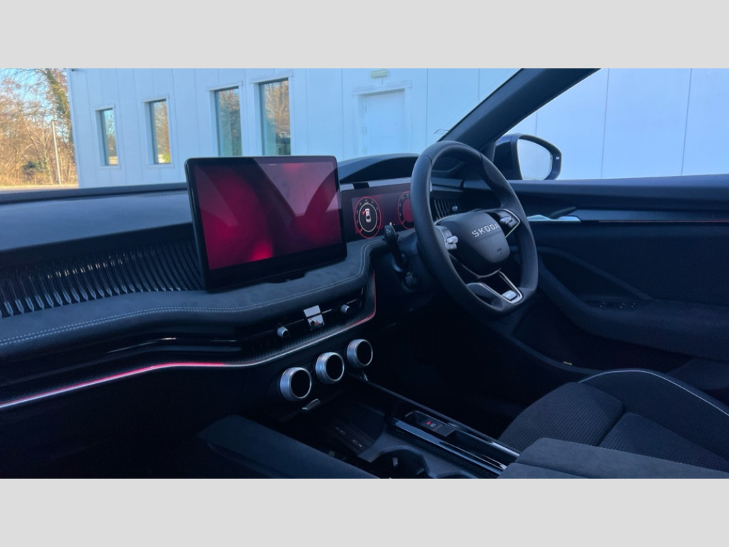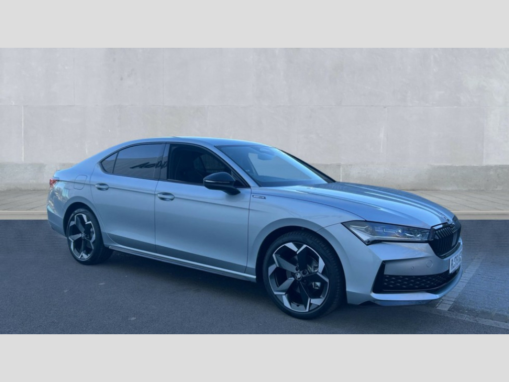 Skoda Superb 1.5 TSI e-TEC Sportline 5dr DSG 13" touchscreen display with satellite navigation, 4x USB-C ports (2x in front centre console and 2x in rear) (45W), Adaptive cruise control with speed assist,lane assist plus and traffic tram assist, Blind spot detection with door exit warning, Bluetooth system, CareConnect and Emergency Call, ChatGPT functionality, Driver fatigue sensor, Easy boot close funtion, Front assist with extended predictive pedestrian protection, Front cross traffic assist, PAS, Quick start all heating software functionality, Stop/start engine system, Traffic sign recognition, Turn assist with evasive assistance, Virtual Cockpit - 10.25" digital display, Voice control system, Washer for rear camera, Wireless charging for one smartphone (15W) with cooling function, Wireless smartlink apple carplay, SmartLink+ android auto, Dynamic chassis control plus with progressive dynamic steering, DAB Digital radio, Display cleaner, FM radio connection, Web radio connection, Acoustic side windows and interior noise suppression, Backdrop lighting, Black exterior styling window and grille surrounds, Body colour door handles, Dynamic range control with poor weather light and integrated fog light, Electrically adjustable, heated, folding and driver side auto-dimming door mirrors with memory function, integrated indicators and logo projection, Frameless auto-dimming rear view mirror with USB-C, Gloss black door mirrors, Ice scraper in fuel tank cap, LED 3rd brake light, Light assist with High beam control, Light assistant (coming/leaving home/tunnel light), Privacy glass, Rear fog lights (x2), Rear side wing doors, Skoda lettering in black, Sportline badging, Sports bumpers, Windscreen wipers with rain sensor, 12V socket 1x centre console 1x boot, 14-way electrically adjustable, memory, front seats with 4-way pneumatic lumbar support, and extendable thigh support with smart comfort entry aid, 2x cargo elements in boot, 2x light in boot, 3 seat bench in 2nd row, 60:40 Split folding rear seats, Aluminium pedals, Bottle holders in the front doors 1.5 litre bottle and rear 1.5 litre bottle, Cup holder in front with easy open mat, Front armrest with storage box, Front sports seats, Heated and ventilated front seats, Height adjustable front and rear head restraints, Illuminated glovebox, Interior lights with control switches, Isofix child seat fittings in outer rear and front passenger seats, LED front and rear reading lights, Single front passenger seat, Skoda lettering on steering wheel, Storage compartment with cover, Storage pockets on back of front seats, Sun visors with illuminated vanity mirrors, Ticket holder on A Pillar, Tri zone climate control, Umbrella in driver's door, Light and view package - Superb, Transport package - Superb Hatchback, 3 rear seatbelts, 8 Airbags - Front driver and passenger,front side driver and passenger,centre,curtain front and rear,drivers knee, Crew protect assist, Driver and passenger seatbelts with warning light, Electronic parking brake, ESC including ABS, EBV, MSR, ASR, EDS, HBA, DSR, RBS, CBC, multi-collision brake (MKB) and Auto hold, Hill hold assist, Power operated child lock in rear doors, Alarm with interior monitoring tilt sensor and back up horn, Backrest remote release from trunk, Electronic engine immobiliser, Keyless start/stop, Remote central locking with SAFE system, Third key, Walk away locking, Decorative front door sills, 19" Torcular polished black alloy wheels with anti theft wheel bolts
