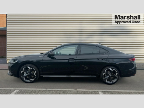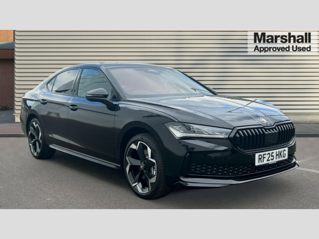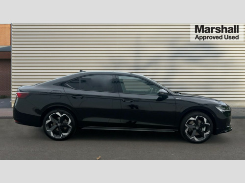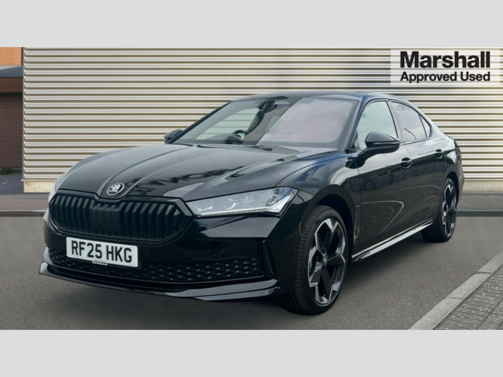 Skoda Superb 2.0 TSI 204 Sportline 5dr DSG 13" touchscreen display with satellite navigation, 4x USB-C ports (2x in front centre console and 2x in rear) (45W), Adaptive cruise control with speed assist,lane assist plus and traffic tram assist, Blind spot detection with door exit warning, Bluetooth system, CareConnect and Emergency Call, ChatGPT functionality, Driver fatigue sensor, Front assist with extended predictive pedestrian protection, Front cross traffic assist, PAS, Quick start all heating software functionality, Stop/start engine system, Traffic sign recognition, Turn assist with evasive assistance, Virtual Cockpit - 10.25" digital display, Voice control system, Washer for rear camera, Wireless charging for one smartphone (15W) with cooling function, Wireless smartlink apple carplay, SmartLink+ android auto, Dynamic chassis control plus with progressive dynamic steering, DAB Digital radio, Display cleaner, FM radio connection, Web radio connection, Acoustic side windows and interior noise suppression, Backdrop lighting, Black exterior styling window and grille surrounds, Body colour door handles, Dynamic range control with poor weather light and integrated fog light, Electrically adjustable, heated, folding and driver side auto-dimming door mirrors with memory function, integrated indicators and logo projection, Frameless auto-dimming rear view mirror with USB-C, Gloss black door mirrors, Ice scraper in fuel tank cap, LED 3rd brake light, Light assist with High beam control, Light assistant (coming/leaving home/tunnel light), Privacy glass, Rear fog lights (x2), Rear side wing doors, Skoda lettering in black, Sportline badging, Sports bumpers, Windscreen wipers with rain sensor, 12V socket 1x centre console 1x boot, 14-way electrically adjustable, memory, front seats with 4-way pneumatic lumbar support, and extendable thigh support with smart comfort entry aid, 2x cargo elements in boot, 2x light in boot, 3 seat bench in 2nd row, 60:40 Split folding rear seats, Aluminium pedals, Bottle holders in the front doors 1.5 litre bottle and rear 1.5 litre bottle, Cup holder in front with easy open mat, Front armrest with storage box, Front sports seats, Heated and ventilated front seats, Height adjustable front and rear head restraints, Illuminated glovebox, Interior lights with control switches, Isofix child seat fittings in outer rear and front passenger seats, LED front and rear reading lights, Single front passenger seat, Skoda lettering on steering wheel, Storage compartment with cover, Storage pockets on back of front seats, Sun visors with illuminated vanity mirrors, Ticket holder on A Pillar, Tri zone climate control, Umbrella in driver's door, Light and view package - Superb, Parking package - Superb, Transport package - Superb Hatchback, 3 rear seatbelts, 8 Airbags - Front driver and passenger,front side driver and passenger,centre,curtain front and rear,drivers knee, Crew protect assist, Driver and passenger seatbelts with warning light, Electronic parking brake, ESC including ABS, EBV, MSR, ASR, EDS, HBA, DSR, RBS, CBC, multi-collision brake (MKB) and Auto hold, Hill hold assist, Power operated child lock in rear doors, Alarm with interior monitoring tilt sensor and back up horn, Backrest remote release from trunk, Electronic engine immobiliser, Keyless start/stop, Remote central locking with SAFE system, Third key, Walk away locking, Decorative front door sills, 19" Torcular polished black alloy wheels with anti theft wheel bolts