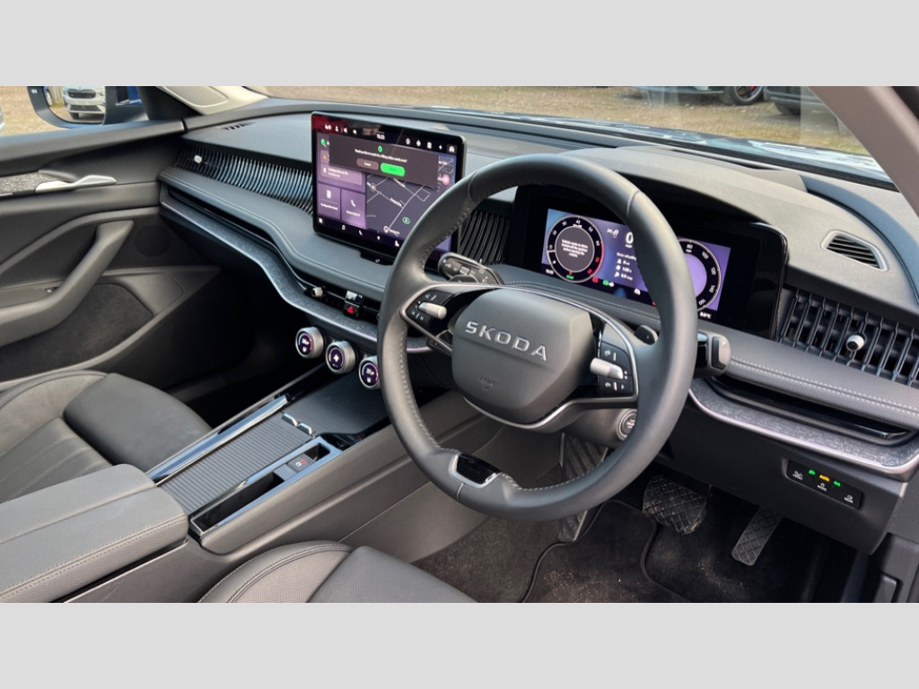 Skoda Superb 1.5 TSI e-TEC SE L 5dr DSG 13" touchscreen display with satellite navigation, 4x USB-C ports (2x in front centre console and 2x in rear) (45W), Adaptive cruise control with speed assist,lane assist plus and traffic tram assist, Blind spot detection with door exit warning, Bluetooth system, CareConnect and Emergency Call, ChatGPT functionality, Driver fatigue sensor, Front assist with extended predictive pedestrian protection, Front cross traffic assist, Quick start all heating software functionality, Stop/start engine system, Traffic sign recognition, Turn assist with evasive assistance, Virtual Cockpit - 10.25" digital display, Voice control system, Washer for rear camera, Wireless charging for one smartphone (15W) with cooling function, Wireless smartlink apple carplay, SmartLink+ android auto, DAB Digital radio, Display cleaner, FM radio connection, Web radio connection, Acoustic side windows and interior noise suppression, Backdrop lighting, Body colour door handles, Body coloured door mirrors, Chrome roof rails, Chrome window surround, Dark chrome grille surround, Dynamic range control with poor weather light and integrated fog light, Electrically adjustable, heated, folding and driver side auto-dimming door mirrors with memory function, integrated indicators and logo projection, Frameless auto-dimming rear view mirror with USB-C, Ice scraper in fuel tank cap, LED 3rd brake light, Light assist with High beam control, Light assistant (coming/leaving home/tunnel light), Privacy glass, Rear fog lights (x2), Rear roof spoiler, Rear side wing doors, Rear windscreen wiper, Unique dark chrome design logo on alloy wheels, Windscreen wipers with rain sensor, 12V socket 1x centre console 1x boot, 14-way electrically adjustable, memory, front seats with 4-way pneumatic lumbar support, and extendable thigh support with smart comfort entry aid, 2x cargo elements in boot, 2x light in boot, 3 seat bench in 2nd row, 4x foldable bag hooks in boot, 60:40 Split folding rear seats, Advanced massage function for front seats, Bottle holders in the front doors 1.5 litre bottle and rear 1.5 litre bottle, Cup holder in front with easy open mat, Front armrest with storage box, Front sports comfort seats, Heated and ventilated front seats, Height adjustable front and rear head restraints, Illuminated glovebox, Interior lights with control switches, Isofix child seat fittings in outer rear and front passenger seats, LED front and rear reading lights, Single front passenger seat, Skoda lettering on steering wheel, Storage compartment with cover, Storage pockets on back of front seats, Sun visors with illuminated vanity mirrors, Ticket holder on A Pillar, Tri zone climate control, Umbrella in driver's door, Light and view package - Superb, Transport package - Superb Estate, 3 rear seatbelts, 8 Airbags - Front driver and passenger,front side driver and passenger,centre,curtain front and rear,drivers knee, Crew protect assist, Driver and passenger seatbelts with warning light, Electronic parking brake, ESC including ABS, EBV, MSR, ASR, EDS, HBA, DSR, RBS, CBC, multi-collision brake (MKB) and Auto hold, Hill hold assist, Power operated child lock in rear doors, Alarm with interior monitoring tilt sensor and back up horn, Backrest remote release from trunk, Electronic engine immobiliser, Keyless start/stop, Remote central locking with SAFE system, Third key, Walk away locking, Decorative front door sills