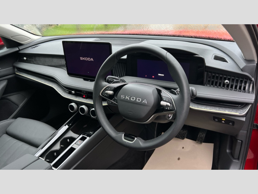 Skoda Superb 1.5 TSI e-TEC SE L 5dr DSG 13" touchscreen display with satellite navigation, 4x USB-C ports (2x in front centre console and 2x in rear) (45W), Adaptive cruise control with speed assist,lane assist plus and traffic tram assist, Blind spot detection with door exit warning, Bluetooth system, CareConnect and Emergency Call, ChatGPT functionality, Driver fatigue sensor, Front assist with extended predictive pedestrian protection, Front cross traffic assist, Quick start all heating software functionality, Stop/start engine system, Traffic sign recognition, Turn assist with evasive assistance, Virtual Cockpit - 10.25" digital display, Voice control system, Washer for rear camera, Wireless charging for one smartphone (15W) with cooling function, Wireless smartlink apple carplay, SmartLink+ android auto, DAB Digital radio, Display cleaner, FM radio connection, Web radio connection, Acoustic side windows and interior noise suppression, Backdrop lighting, Body colour door handles, Body coloured door mirrors, Chrome roof rails, Chrome window surround, Dark chrome grille surround, Dynamic range control with poor weather light and integrated fog light, Electrically adjustable, heated, folding and driver side auto-dimming door mirrors with memory function, integrated indicators and logo projection, Frameless auto-dimming rear view mirror with USB-C, Ice scraper in fuel tank cap, LED 3rd brake light, Light assist with High beam control, Light assistant (coming/leaving home/tunnel light), Privacy glass, Rear fog lights (x2), Rear roof spoiler, Rear side wing doors, Rear windscreen wiper, Unique dark chrome design logo on alloy wheels, Windscreen wipers with rain sensor, 12V socket 1x centre console 1x boot, 14-way electrically adjustable, memory, front seats with 4-way pneumatic lumbar support, and extendable thigh support with smart comfort entry aid, 2x cargo elements in boot, 2x light in boot, 3 seat bench in 2nd row, 4x foldable bag hooks in boot, 60:40 Split folding rear seats, Advanced massage function for front seats, Bottle holders in the front doors 1.5 litre bottle and rear 1.5 litre bottle, Cup holder in front with easy open mat, Front armrest with storage box, Front sports comfort seats, Heated and ventilated front seats, Height adjustable front and rear head restraints, Illuminated glovebox, Interior lights with control switches, Isofix child seat fittings in outer rear and front passenger seats, LED front and rear reading lights, Single front passenger seat, Skoda lettering on steering wheel, Storage compartment with cover, Storage pockets on back of front seats, Sun visors with illuminated vanity mirrors, Ticket holder on A Pillar, Tri zone climate control, Umbrella in driver's door, Light and view package - Superb, Transport package - Superb Estate, 3 rear seatbelts, 8 Airbags - Front driver and passenger,front side driver and passenger,centre,curtain front and rear,drivers knee, Crew protect assist, Driver and passenger seatbelts with warning light, Electronic parking brake, ESC including ABS, EBV, MSR, ASR, EDS, HBA, DSR, RBS, CBC, multi-collision brake (MKB) and Auto hold, Hill hold assist, Power operated child lock in rear doors, Alarm with interior monitoring tilt sensor and back up horn, Backrest remote release from trunk, Electronic engine immobiliser, Keyless start/stop, Remote central locking with SAFE system, Third key, Walk away locking, Decorative front door sills