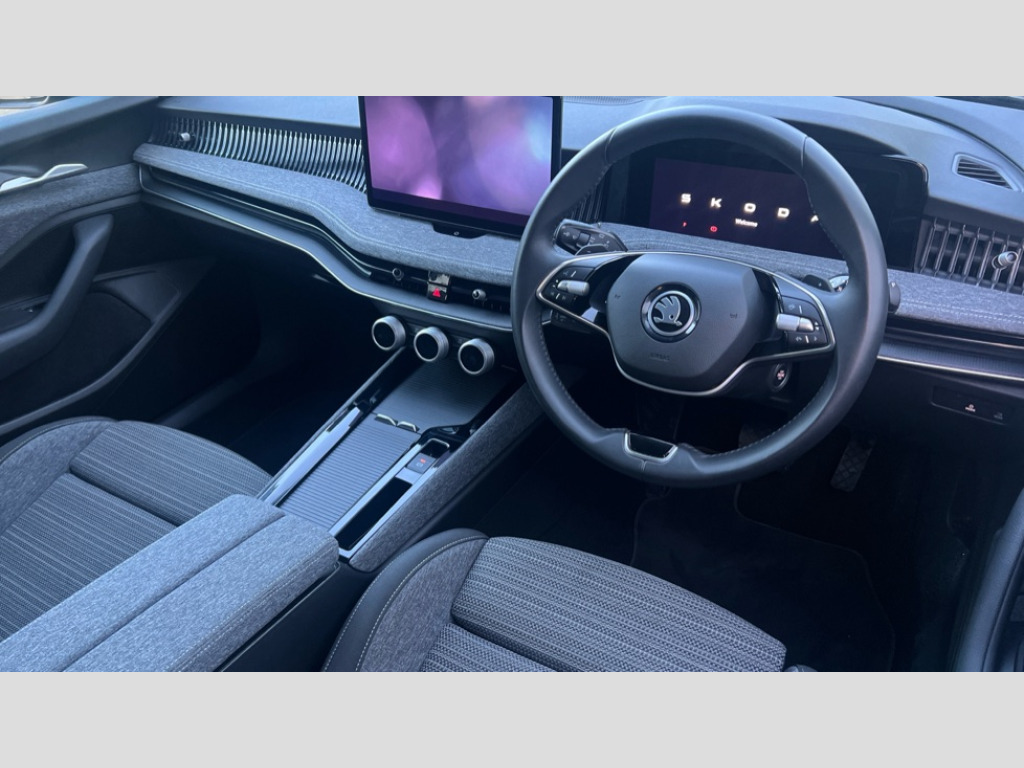 Skoda Superb 1.5 TSI e-TEC SE Technology 5dr DSG 13" touchscreen display with satellite navigation, 4x USB-C ports (2x in front centre console and 2x in rear) (45W), Adaptive cruise control with speed assist,lane assist plus and traffic tram assist, Blind spot detection with door exit warning, Bluetooth system, CareConnect and Emergency Call, ChatGPT functionality, Driver fatigue sensor, Front assist with extended predictive pedestrian protection, Front cross traffic assist, PAS, Quick start all heating software functionality, Rear view camera with washer, Stop/start engine system, Traffic sign recognition, Turn assist with evasive assistance, Virtual Cockpit - 10.25" digital display, Voice control system, Wireless charging for one smartphone (15W) with cooling function, Wireless smartlink apple carplay, SmartLink+ android auto, 8 Speakers, DAB Digital radio, Display cleaner, FM radio connection, Web radio connection, Acoustic side windows and interior noise suppression, Backdrop lighting, Body colour door handles, Body coloured door mirrors, Chrome roof rails, Chrome window surround, Electrically adjustable, heated, folding and driver side auto-dimming door mirrors with integrated indicators and logo projection, Frameless auto-dimming rear view mirror with USB-C, Front windscreen with heat-insulating glass, Ice scraper in fuel tank cap, LED 3rd brake light, Light assist with High beam control, Light assistant (coming/leaving home/tunnel light), Privacy glass, Rear fog light (x1), Rear roof spoiler, Rear side wing doors, Rear windscreen wiper, Tow bar preparation, Unique dark chrome design logo on alloy wheels, Unique dark chrome grille surround with dark chrome rib elements, Windscreen wipers with rain sensor, 12V socket 1x centre console 1x boot, 12V socket and 2x cargo elements in boot, 2 spoke multifunction steering wheel with DSG paddles, 3 seat bench in 2nd row, 4x foldable bag hooks in boot, 60:40 Split folding rear seats, Bottle holders in the front doors 1.5 litre bottle and rear 1.5 litre bottle, Cup holder in front with easy open mat, Front and rear footwell illumination, Front armrest with storage box, Front comfort seats, Heated front seats, Height adjustable driver and front passenger seats with 2-way electric tilt, 4-way pneumatic lumbar support, and extendable thigh support, Height adjustable front and rear head restraints, Height adjustable front passenger seat, Illuminated glovebox, Interior lights with control switches, Isofix child seat fittings in outer rear and front passenger seats, LED front and rear reading lights, Massage function for front seats, Single front passenger seat, Skoda lettering on steering wheel, Storage pockets on back of front seats, Sun visors with illuminated vanity mirrors, Ticket holder on A Pillar, Tri zone climate control, Umbrella in driver's door, 3 rear seatbelts, 8 Airbags - Front driver and passenger,front side driver and passenger,centre,curtain front and rear,drivers knee, Crew protect assist, Driver and passenger seatbelts with warning light, Electronic parking brake, ESC including ABS, EBV, MSR, ASR, EDS, HBA, DSR, RBS, CBC, multi-collision brake (MKB) and Auto hold, Hill hold assist, Power operated child lock in rear doors, Alarm with interior monitoring tilt sensor and back up horn, Backrest remote release from trunk, Electronic engine immobiliser, Keyless start/stop, Remote central locking with SAFE system, Third key, Decorative front door sills