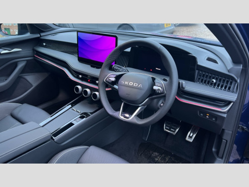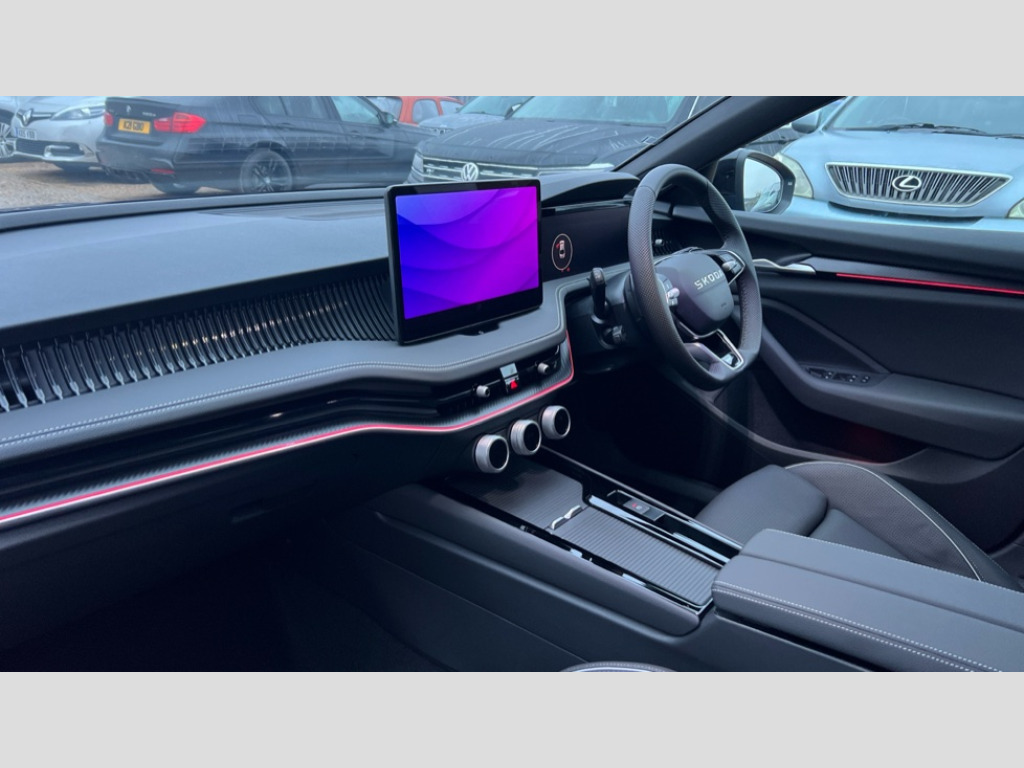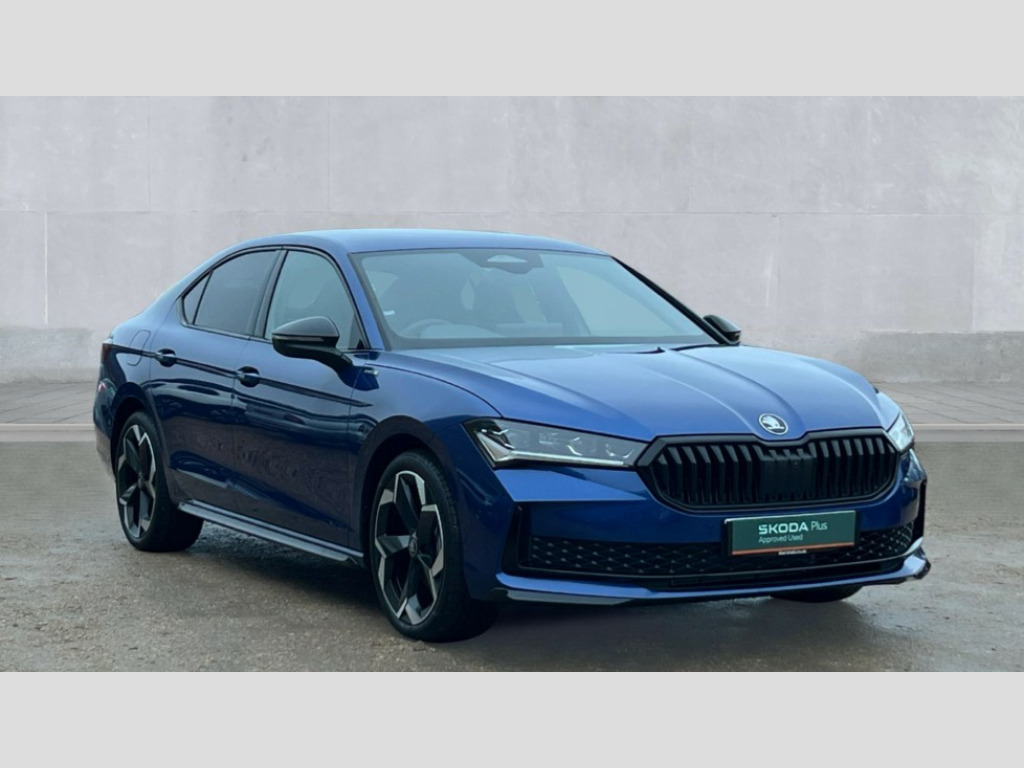 Skoda Superb 1.5 TSI e-TEC Sportline 5dr DSG 13" touchscreen display with satellite navigation, 4x USB-C ports (2x in front centre console and 2x in rear) (45W), Adaptive cruise control with speed assist,lane assist plus and traffic tram assist, Blind spot detection with door exit warning, Bluetooth system, CareConnect and Emergency Call, ChatGPT functionality, Driver fatigue sensor, Easy boot close funtion, Front assist with extended predictive pedestrian protection, Front cross traffic assist, PAS, Quick start all heating software functionality, Stop/start engine system, Traffic sign recognition, Turn assist with evasive assistance, Virtual Cockpit - 10.25" digital display, Voice control system, Washer for rear camera, Wireless charging for one smartphone (15W) with cooling function, Wireless smartlink apple carplay, SmartLink+ android auto, Dynamic chassis control plus with progressive dynamic steering, DAB Digital radio, Display cleaner, FM radio connection, Web radio connection, Acoustic side windows and interior noise suppression, Backdrop lighting, Black exterior styling window and grille surrounds, Body colour door handles, Dynamic range control with poor weather light and integrated fog light, Electrically adjustable, heated, folding and driver side auto-dimming door mirrors with memory function, integrated indicators and logo projection, Frameless auto-dimming rear view mirror with USB-C, Gloss black door mirrors, Ice scraper in fuel tank cap, LED 3rd brake light, Light assist with High beam control, Light assistant (coming/leaving home/tunnel light), Privacy glass, Rear fog lights (x2), Rear side wing doors, Skoda lettering in black, Sportline badging, Sports bumpers, Windscreen wipers with rain sensor, 12V socket 1x centre console 1x boot, 14-way electrically adjustable, memory, front seats with 4-way pneumatic lumbar support, and extendable thigh support with smart comfort entry aid, 2x cargo elements in boot, 2x light in boot, 3 seat bench in 2nd row, 60:40 Split folding rear seats, Aluminium pedals, Bottle holders in the front doors 1.5 litre bottle and rear 1.5 litre bottle, Cup holder in front with easy open mat, Front armrest with storage box, Front sports seats, Heated and ventilated front seats, Height adjustable front and rear head restraints, Illuminated glovebox, Interior lights with control switches, Isofix child seat fittings in outer rear and front passenger seats, LED front and rear reading lights, Single front passenger seat, Skoda lettering on steering wheel, Storage compartment with cover, Storage pockets on back of front seats, Sun visors with illuminated vanity mirrors, Ticket holder on A Pillar, Tri zone climate control, Umbrella in driver's door, Light and view package - Superb, Transport package - Superb Hatchback, 3 rear seatbelts, 8 Airbags - Front driver and passenger,front side driver and passenger,centre,curtain front and rear,drivers knee, Crew protect assist, Driver and passenger seatbelts with warning light, Electronic parking brake, ESC including ABS, EBV, MSR, ASR, EDS, HBA, DSR, RBS, CBC, multi-collision brake (MKB) and Auto hold, Hill hold assist, Power operated child lock in rear doors, Alarm with interior monitoring tilt sensor and back up horn, Backrest remote release from trunk, Electronic engine immobiliser, Keyless start/stop, Remote central locking with SAFE system, Third key, Walk away locking, Decorative front door sills, 19" Torcular polished black alloy wheels with anti theft wheel bolts