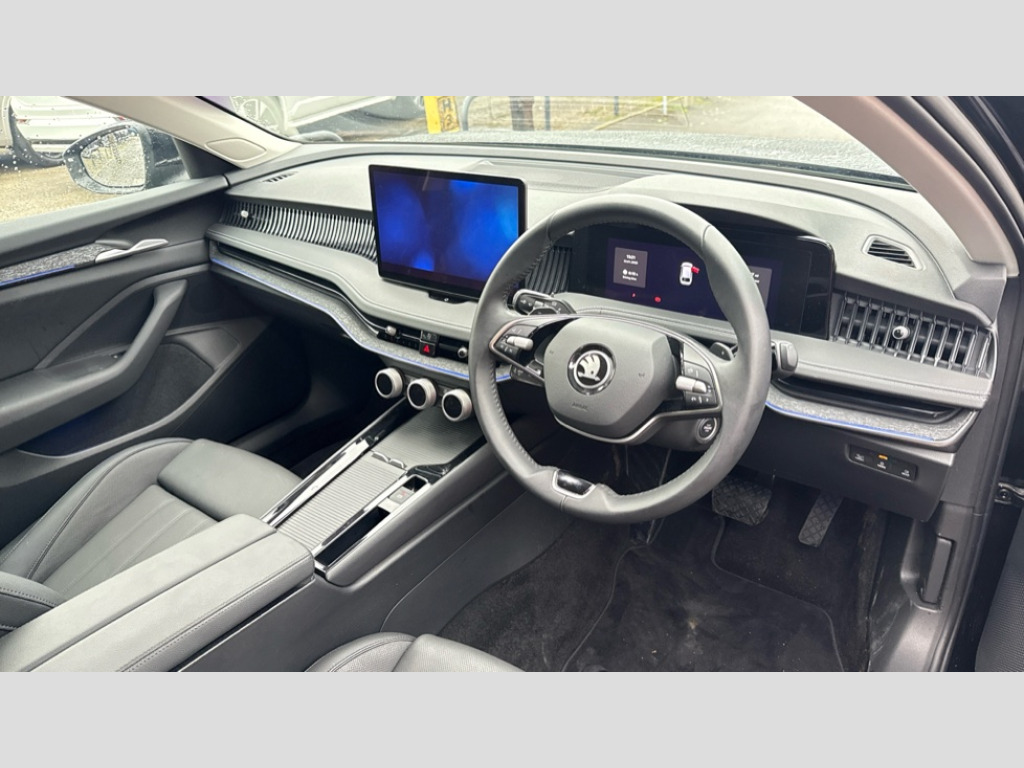 Electrically operated boot 13" touchscreen display with satellite navigation, 4x USB-C ports (2x in front centre console and 2x in rear) (45W), Adaptive cruise control with speed assist,lane assist plus and traffic tram assist, Blind spot detection with door exit warning, Bluetooth system, CareConnect and Emergency Call, ChatGPT functionality, Drive mode selection, Driver fatigue sensor, Electrically operated boot with virtual pedal, Front assist with extended predictive pedestrian protection, Front cross traffic assist, PAS, Quick start all heating software functionality, Rear view camera with washer, Stop/start engine system, Traffic sign recognition, Turn assist with evasive assistance, Virtual Cockpit - 10.25" digital display, Voice control system, Wireless charging for one smartphone (15W) with cooling function, Wireless smartlink apple carplay, SmartLink+ android auto, DAB Digital radio, Display cleaner, FM radio connection, Web radio connection, Acoustic side windows and interior noise suppression, Backdrop lighting, Body colour door handles, Body coloured door mirrors, Chrome roof rails, Chrome window surround, Dynamic range control with poor weather light and integrated fog light, Electrically adjustable, heated, folding and driver side auto-dimming door mirrors with memory function, integrated indicators and logo projection, Frameless auto-dimming rear view mirror with USB-C, Front windscreen with heat-insulating glass, Ice scraper in fuel tank cap, LED 3rd brake light, Light assist with High beam control, Light assistant (coming/leaving home/tunnel light), Privacy glass, Rear fog lights (x2), Rear roof spoiler, Rear side wing doors, Rear windscreen wiper, Tow bar preparation, Unique dark chrome design logo on alloy wheels, Unique dark chrome grille surround with dark chrome rib elements, Windscreen wipers with rain sensor, 12V socket 1x centre console 1x boot, 12V socket and 2x cargo elements in boot, 14-way electrically adjustable, memory, front seats with 4-way pneumatic lumbar support, and extendable thigh support with smart comfort entry aid, 2 spoke multifunction steering wheel with DSG paddles, 3 seat bench in 2nd row, 4x foldable bag hooks in boot, 60:40 Split folding rear seats, Advanced massage function for front seats, Bottle holders in the front doors 1.5 litre bottle and rear 1.5 litre bottle, Cup holder in front with easy open mat, Front and rear footwell illumination, Front armrest with storage box, Front sports comfort seats, Heated and ventilated front seats, Height adjustable front and rear head restraints, Height adjustable front passenger seat, Illuminated glovebox, Interior lights with control switches, Isofix child seat fittings in outer rear and front passenger seats, LED front and rear reading lights, Multi colour ambient lighting, Single front passenger seat, Skoda lettering on steering wheel, Storage pockets on back of front seats, Sun visors with illuminated vanity mirrors, Ticket holder on A Pillar, Tri zone climate control, Umbrella in driver's door, Light and view package - Superb, Transport package - Superb Estate, 3 rear seatbelts, 8 Airbags - Front driver and passenger,front side driver and passenger,centre,curtain front and rear,drivers knee, Crew protect assist, Driver and passenger seatbelts with warning light, Electronic parking brake, ESC including ABS, EBV, MSR, ASR, EDS, HBA, DSR, RBS, CBC, multi-collision brake (MKB) and Auto hold, Hill hold assist, Power operated child lock in rear doors, Alarm with interior monitoring tilt sensor and back up horn, Backrest remote release from trunk, Electronic engine immobiliser, Keyless start/stop, Remote central locking with SAFE system, Third key, Walk away locking, Decorative front door sills, Tyre repair kit