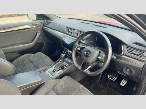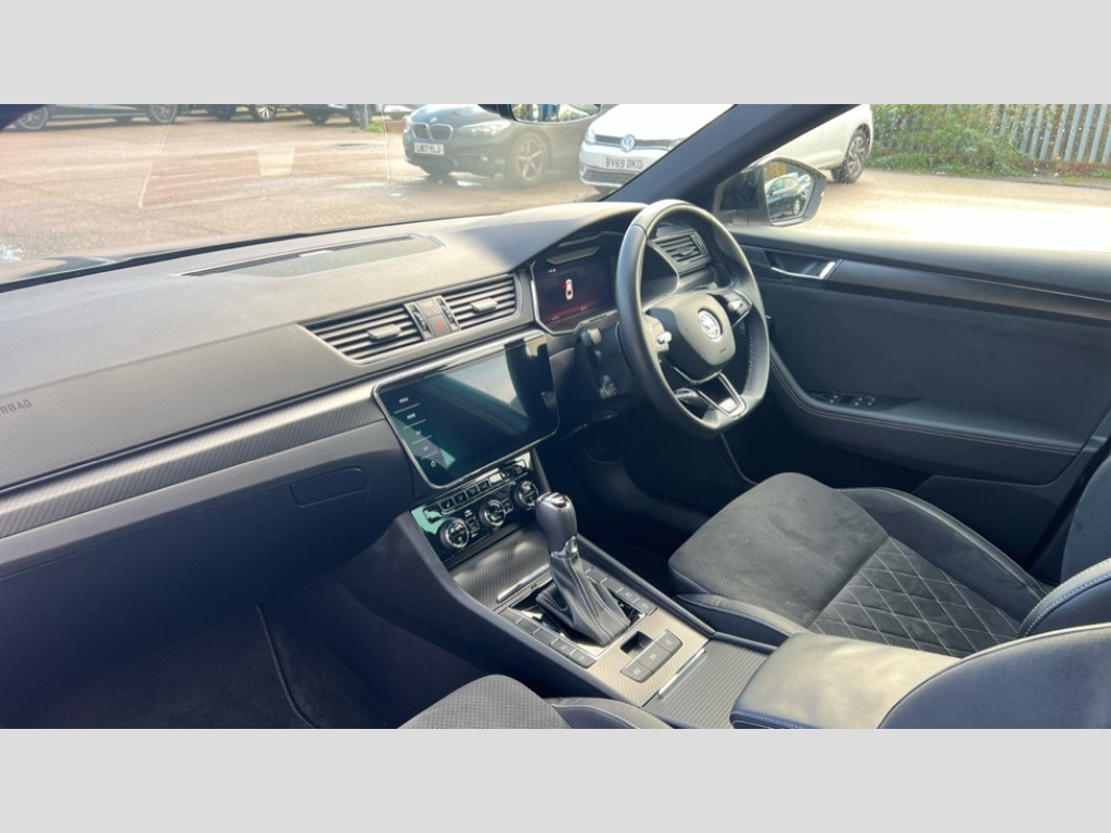 Skoda Superb 1.5 TSI Sport Line Plus 5dr DSG Bluetooth system, CareConnect and Emergency Call, Columbus HDD satellite 3D map navigation with 9.2" colour touch screen, web radio, integrated Wi-Fi, Driver fatigue sensor, Front assist with pedestrian protection, Progressive dynamic steering, Stop/start engine system and energy recovery, Virtual cockpit, Voice control system, Wireless smartlink apple carplay, SmartLink+ android auto, XDS+, 2 USB ports, Bolero radio with 8" touchscreen display, DAB Digital radio, 3rd brake light, Aero front windscreen wipers with intermittent function, Auto dimming rear view mirror, Black rear badge, Body colour door handles, Cornering front fog lights, Electrically adjustable heated and folding door mirrors with memory function, Front and rear electric windows, Full matrix LED headlights with AFS LED DRL integrated with headlight washer LED rear lights(High function), dynamic indicators and lighting animation, Gloss black exterior door mirrors with sports styling including front grill, side strip and window surrounds, Gloss black grille surround with gloss black rib elements, Gloss black rear spoiler (roof), Gloss black strip between rear lights, Light assistant (coming/leaving home/tunnel light), Privacy glass, Rain sensor, Rear exhaust diffuser styling elements, Rear side wing doors, Sportline badging, 12v power point in centre console, 3 seat bench in 2nd row, Black roof headlining, Black textile floor mats, Carbon optic interior elements, Electric auxiliary air heater, Front and rear footwell illumination, Front armrest with storage box, Height adjustable front and rear head restraints, Ice scraper, Illuminated and cooled glovebox, Interior lights with control switches, Isofix child seat fittings on outer rear seats, LED front and rear reading lights, Microsuede/leather upholstery with silver diamond stitching sports seats, One umbrella compartments in driver door with one umbrella in drivers door, Overhead glasses storage compartment, Rear centre armrest with cupholders, Removable parcel shelf, Single front passenger seat, Split folding rear seats, Storage compartment with cover in luggage compartment side panels, Ticket holder on A Pillar, LED package plus - Superb, 3 rear seatbelts, 7 airbags - Front, front side, curtain, driver's knee airbag with front passenger deactivation switch, Driver and passenger seatbelts with warning light, Electronic parking brake, ESC including ABS, EBV, MSR, ASR, EDS, HBA, DSR, RBS, CBC, multi-collision brake (MKB) and Auto hold, Hill start assist, Power operated child lock in rear doors, Tyre pressure monitor, Alarm with interior monitoring tilt sensor and back up horn, Electronic engine immobiliser, Keyless entry and start/stop, Remote central locking with SAFE system, Third remote key