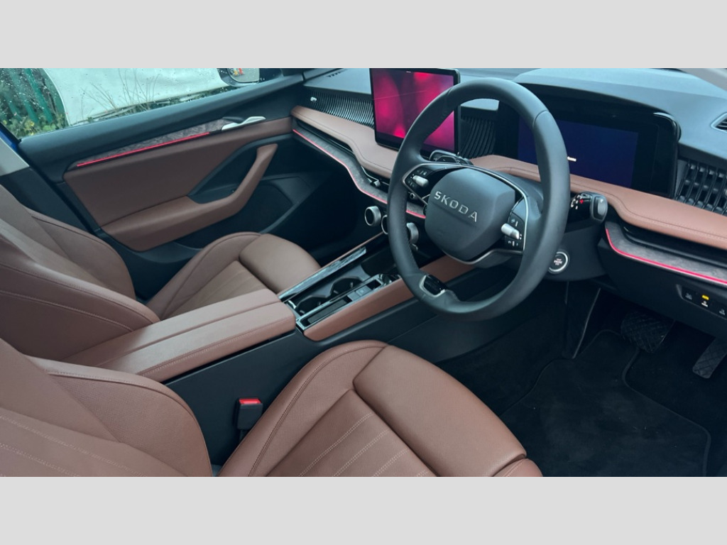 Skoda Superb 2.0 TDI 193 Laurin + Klement 4X4 5dr DSG 13" touchscreen display with satellite navigation, 4x USB-C ports (2x in front centre console and 2x in rear) (45W), Adaptive cruise control with speed assist,lane assist plus and traffic tram assist, Blind spot detection with door exit warning, Bluetooth system, CareConnect and Emergency Call, ChatGPT functionality, Driver fatigue sensor, Front assist with extended predictive pedestrian protection, Front cross traffic assist, PAS, Quick start all heating software functionality, Remote park assist, Stop/start engine system, Traffic sign recognition, Turn assist with evasive assistance, Virtual Cockpit - 10.25" digital display, Voice control system, Washer for rear camera, Wireless charging for one smartphone (15W) with cooling function, Wireless smartlink apple carplay, SmartLink+ android auto, Dynamic chassis control plus with progressive dynamic steering, Canton sound system - 14+1 speaker, DAB Digital radio, Display cleaner, FM radio connection, Web radio connection, Acoustic side windows and interior noise suppression, Backdrop lighting, Body colour door handles, Body coloured door mirrors, Chrome roof rails, Chrome window surround, Dynamic range control with poor weather light and integrated fog light, Electrically adjustable, heated, folding and driver side auto-dimming door mirrors with memory function, integrated indicators and logo projection, Frameless auto-dimming rear view mirror with USB-C, Ice scraper in fuel tank cap, LED 3rd brake light, Light assist with High beam control, Light assistant (coming/leaving home/tunnel light), Privacy glass, Rear fog lights (x2), Rear roof spoiler, Rear side wing doors, Rear windscreen wiper, Unique dark chrome design logo on alloy wheels, Unique dark chrome grille surround with dark chrome rib elements, plus dark chrome rear diffuser strip, Windscreen wipers with rain sensor, 12V socket 1x centre console 1x boot, 14-way electrically adjustable, memory, front seats with 4-way pneumatic lumbar support, and extendable thigh support with smart comfort entry aid, 2x cargo elements in boot, 2x light in boot, 3 seat bench in 2nd row, 4x foldable bag hooks in boot, 60:40 Split folding rear seats, Advanced massage function for front seats, Bottle holders in the front doors 1.5 litre bottle and rear 1.5 litre bottle, Cup holder in front with easy open mat, Front armrest with storage box, Front sports comfort seats, Heated and ventilated front seats, Height adjustable front and rear head restraints, Illuminated glovebox, Interior lights with control switches, Isofix child seat fittings in outer rear and front passenger seats, LED front and rear reading lights, Single front passenger seat, Skoda lettering on steering wheel, Storage compartment with cover, Storage pockets on back of front seats, Sun visors with illuminated vanity mirrors, Ticket holder on A Pillar, Tri zone climate control, Umbrella in driver's door, Light and view package - Superb, Parking package - Superb, Transport package - Superb Estate, Winter package - Superb, 3 rear seatbelts, 8 Airbags - Front driver and passenger,front side driver and passenger,centre,curtain front and rear,drivers knee, Crew protect assist, Driver and passenger seatbelts with warning light, Electronic parking brake, ESC including ABS, EBV, MSR, ASR, EDS, HBA, DSR, RBS, CBC, multi-collision brake (MKB) and Auto hold, Hill hold assist, Power operated child lock in rear doors, Alarm with interior monitoring tilt sensor and back up horn, Backrest remote release from trunk, Electronic engine immobiliser, Keyless start/stop, Remote central locking with SAFE system, Third key, Walk away locking, Decorative front door sills, 18" Steel space saving spare wheel
