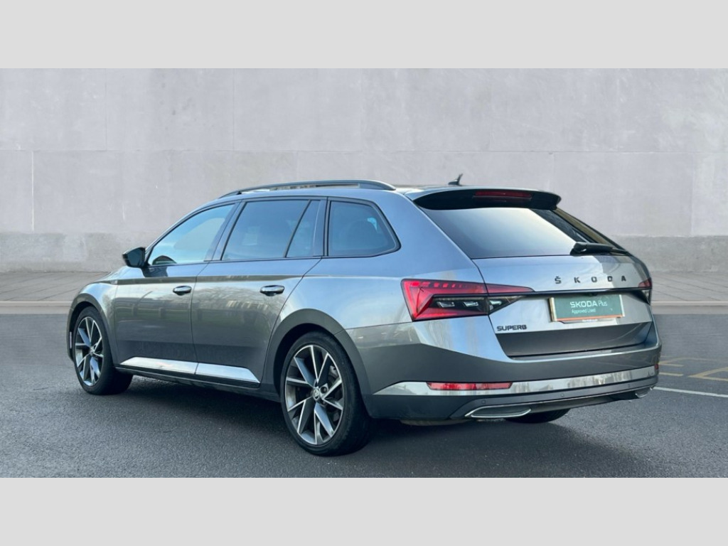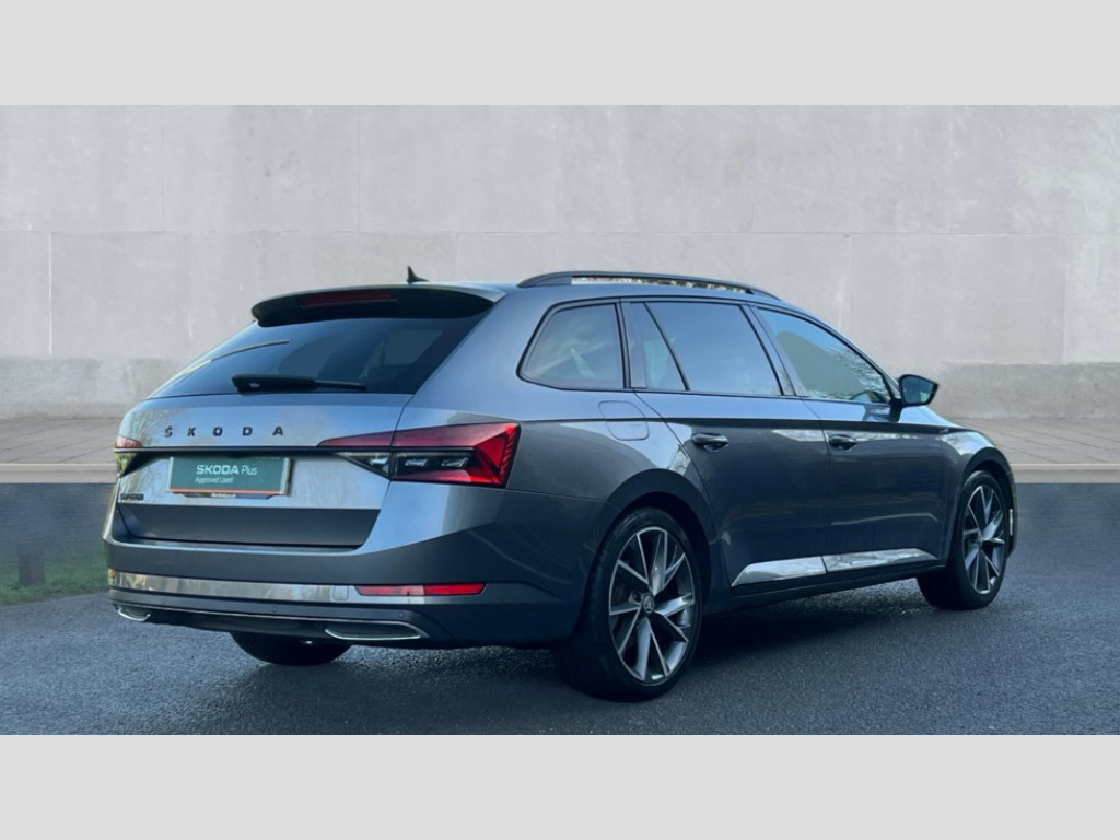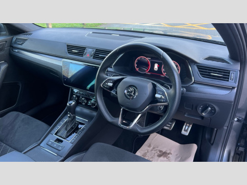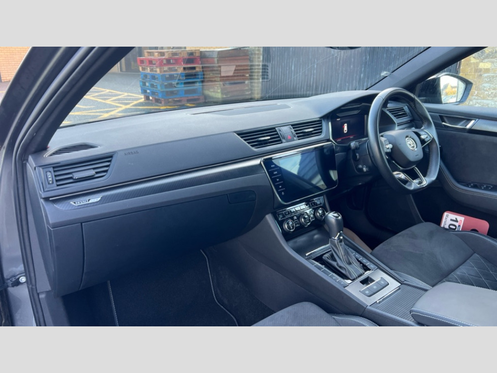 Skoda Superb 2.0 TDI CR 200 Sport Line Plus 5dr DSG Bluetooth system, CareConnect and Emergency Call, Columbus HDD satellite 3D map navigation with 9.2" colour touch screen, web radio, integrated Wi-Fi, Driver fatigue sensor, Front assist with pedestrian protection, Progressive dynamic steering, Stop/start engine system and energy recovery, Virtual cockpit, Voice control system, Wireless smartlink apple carplay, SmartLink+ android auto, XDS+, 2 USB ports, Bolero radio with 8" touchscreen display, DAB Digital radio, 3rd brake light, Aero front windscreen wipers with intermittent function, Auto dimming rear view mirror, Black rear badge, Body colour door handles, Cornering front fog lights, Electrically adjustable heated and folding door mirrors with memory function, Front and rear electric windows, Full matrix LED headlights with AFS LED DRL integrated with headlight washer LED rear lights(High function), dynamic indicators and lighting animation, Gloss black exterior door mirrors with sports styling including front grill, side strip and window surrounds, Gloss black grille surround with gloss black rib elements, Gloss black roof rails, Gloss black strip between rear lights, Light assistant (coming/leaving home/tunnel light), Privacy glass, Rain sensor, Rear exhaust diffuser styling elements, Rear side wing doors, Rear windscreen wiper, Sportline badging, 12v power point in centre console, 3 seat bench in 2nd row, Black roof headlining, Black textile floor mats, Carbon optic interior elements, Electric auxiliary air heater, Front and rear footwell illumination, Front armrest with storage box, Height adjustable front and rear head restraints, Ice scraper, Illuminated and cooled glovebox, Interior lights with control switches, Isofix child seat fittings on outer rear seats, LED front and rear reading lights, Microsuede/leather upholstery with silver diamond stitching sports seats, One umbrella compartments in driver door with one umbrella in drivers door, Overhead glasses storage compartment, Rear centre armrest with cupholders, Single front passenger seat, Split folding rear seats, Storage compartment with cover in luggage compartment side panels, Ticket holder on A Pillar, LED package plus - Superb, 3 rear seatbelts, 7 airbags - Front, front side, curtain, driver's knee airbag with front passenger deactivation switch, Driver and passenger seatbelts with warning light, Electronic parking brake, ESC including ABS, EBV, MSR, ASR, EDS, HBA, DSR, RBS, CBC, multi-collision brake (MKB) and Auto hold, Hill start assist, Power operated child lock in rear doors, Tyre pressure monitor, Alarm with interior monitoring tilt sensor and back up horn, Electronic engine immobiliser, Keyless entry and start/stop, Remote central locking with SAFE system, Third remote key