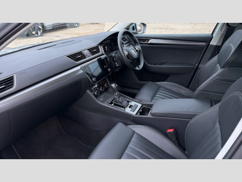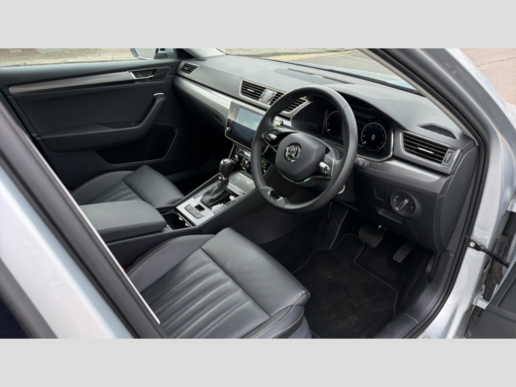 Skoda Superb 2.0 TDI CR SE L 5dr DSG Bluetooth system, CareConnect and Emergency Call, Driver fatigue sensor, Electromechanical power steering, Front assist with pedestrian protection, Stop/start engine system and energy recovery, Virtual cockpit, Voice control system, Wireless smartlink apple carplay, SmartLink+ android auto, XDS+, 2 USB ports, Bolero radio with 8" touchscreen display, DAB Digital radio, 3rd brake light, Aero front windscreen wipers with intermittent function, Auto dimming rear view mirror, Body colour door mirrors and handles, Chrome grille surround with chorme rib elements, Chrome strip between rear lights, Chrome window surround, Cornering front fog lights, Electrically adjustable heated and folding door mirrors with memory function, Front and rear electric windows, Light assistant (coming/leaving home/tunnel light), Privacy glass, Rain sensor, Rear side wing doors, 12v power point in centre console, 3 seat bench in 2nd row, Black textile floor mats, Electric auxiliary air heater, Front and rear footwell illumination, Front armrest with storage box, Height adjustable front and rear head restraints, Ice scraper, Illuminated and cooled glovebox, Interior lights with control switches, Isofix child seat fittings on outer rear seats, LED front and rear reading lights, One umbrella compartments in driver door with one umbrella in drivers door, Overhead glasses storage compartment, Rear centre armrest with cupholders, Removable parcel shelf, Single front passenger seat, Split folding rear seats, Storage compartment with cover in luggage compartment side panels, Sun visors, Ticket holder on A Pillar, 3 rear seatbelts, 7 airbags - Front, front side, curtain, driver's knee airbag with front passenger deactivation switch, Driver and passenger seatbelts with warning light, Electronic parking brake, ESC including ABS, EBV, MSR, ASR, EDS, HBA, DSR, RBS, CBC, multi-collision brake (MKB) and Auto hold, Hill start assist, Tyre pressure monitor, Alarm with interior monitoring tilt sensor and back up horn, Electronic engine immobiliser, Keyless entry and start/stop, Remote central locking with SAFE system, Third remote key, Dark brushed aluminium decorative inserts