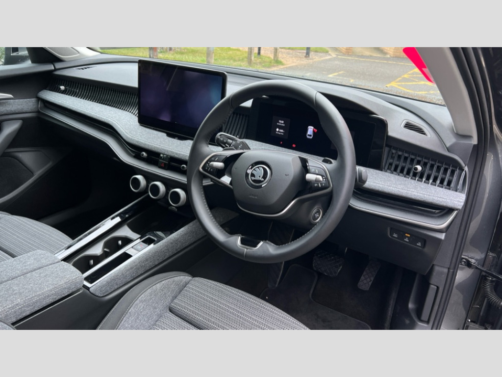 Skoda Superb 2.0 TDI SE Technology 5dr DSG 13" touchscreen display with satellite navigation, 4x USB-C ports (2x in front centre console and 2x in rear) (45W), Adaptive cruise control with speed assist,lane assist plus and traffic tram assist, Blind spot detection with door exit warning, Bluetooth system, CareConnect and Emergency Call, ChatGPT functionality, Driver fatigue sensor, Front assist with extended predictive pedestrian protection, Front cross traffic assist, PAS, Quick start all heating software functionality, Rear view camera with washer, Stop/start engine system, Traffic sign recognition, Turn assist with evasive assistance, Virtual Cockpit - 10.25" digital display, Voice control system, Wireless charging for one smartphone (15W) with cooling function, Wireless smartlink apple carplay, SmartLink+ android auto, 8 Speakers, DAB Digital radio, Display cleaner, FM radio connection, Web radio connection, Acoustic side windows and interior noise suppression, Backdrop lighting, Body colour door handles, Body coloured door mirrors, Chrome roof rails, Chrome window surround, Electrically adjustable, heated, folding and driver side auto-dimming door mirrors with integrated indicators and logo projection, Frameless auto-dimming rear view mirror with USB-C, Front windscreen with heat-insulating glass, Ice scraper in fuel tank cap, LED 3rd brake light, Light assist with High beam control, Light assistant (coming/leaving home/tunnel light), Privacy glass, Rear fog light (x1), Rear roof spoiler, Rear side wing doors, Rear windscreen wiper, Tow bar preparation, Unique dark chrome design logo on alloy wheels, Unique dark chrome grille surround with dark chrome rib elements, Windscreen wipers with rain sensor, 12V socket 1x centre console 1x boot, 12V socket and 2x cargo elements in boot, 2 spoke multifunction steering wheel with DSG paddles, 3 seat bench in 2nd row, 4x foldable bag hooks in boot, 60:40 Split folding rear seats, Bottle holders in the front doors 1.5 litre bottle and rear 1.5 litre bottle, Cup holder in front with easy open mat, Front and rear footwell illumination, Front armrest with storage box, Front comfort seats, Heated front seats, Height adjustable driver and front passenger seats with 2-way electric tilt, 4-way pneumatic lumbar support, and extendable thigh support, Height adjustable front and rear head restraints, Height adjustable front passenger seat, Illuminated glovebox, Interior lights with control switches, Isofix child seat fittings in outer rear and front passenger seats, LED front and rear reading lights, Massage function for front seats, Single front passenger seat, Skoda lettering on steering wheel, Storage pockets on back of front seats, Sun visors with illuminated vanity mirrors, Ticket holder on A Pillar, Tri zone climate control, Umbrella in driver's door, 3 rear seatbelts, 8 Airbags - Front driver and passenger,front side driver and passenger,centre,curtain front and rear,drivers knee, Crew protect assist, Driver and passenger seatbelts with warning light, Electronic parking brake, ESC including ABS, EBV, MSR, ASR, EDS, HBA, DSR, RBS, CBC, multi-collision brake (MKB) and Auto hold, Hill hold assist, Power operated child lock in rear doors, Alarm with interior monitoring tilt sensor and back up horn, Backrest remote release from trunk, Electronic engine immobiliser, Keyless start/stop, Remote central locking with SAFE system, Third key, Decorative front door sills