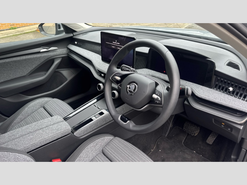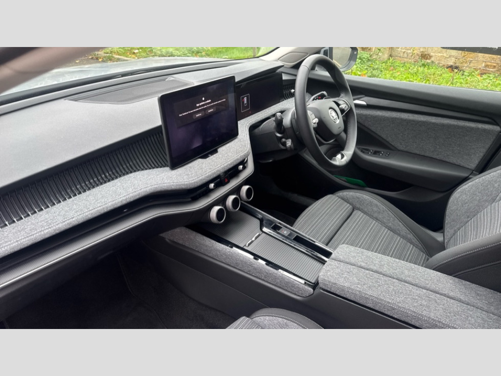 Massage Function for Front Seats 13" touchscreen display with satellite navigation, 4x USB-C ports (2x in front centre console and 2x in rear) (45W), Adaptive cruise control with speed assist,lane assist plus and traffic tram assist, Blind spot detection with door exit warning, Bluetooth system, CareConnect and Emergency Call, ChatGPT functionality, Driver fatigue sensor, Front assist with extended predictive pedestrian protection, Front cross traffic assist, PAS, Quick start all heating software functionality, Rear view camera with washer, Stop/start engine system, Traffic sign recognition, Turn assist with evasive assistance, Virtual Cockpit - 10.25" digital display, Voice control system, Wireless charging for one smartphone (15W) with cooling function, Wireless smartlink apple carplay, SmartLink+ android auto, 8 Speakers, DAB Digital radio, Display cleaner, FM radio connection, Web radio connection, Acoustic side windows and interior noise suppression, Backdrop lighting, Body colour door handles, Body coloured door mirrors, Chrome roof rails, Chrome window surround, Electrically adjustable, heated, folding and driver side auto-dimming door mirrors with integrated indicators and logo projection, Frameless auto-dimming rear view mirror with USB-C, Front windscreen with heat-insulating glass, Ice scraper in fuel tank cap, LED 3rd brake light, Light assist with High beam control, Light assistant (coming/leaving home/tunnel light), Privacy glass, Rear fog light (x1), Rear roof spoiler, Rear side wing doors, Rear windscreen wiper, Tow bar preparation, Unique dark chrome design logo on alloy wheels, Unique dark chrome grille surround with dark chrome rib elements, Windscreen wipers with rain sensor, 12V socket 1x centre console 1x boot, 12V socket and 2x cargo elements in boot, 2 spoke multifunction steering wheel with DSG paddles, 3 seat bench in 2nd row, 4x foldable bag hooks in boot, 60:40 Split folding rear seats, Bottle holders in the front doors 1.5 litre bottle and rear 1.5 litre bottle, Cup holder in front with easy open mat, Front and rear footwell illumination, Front armrest with storage box, Front comfort seats, Heated front seats, Height adjustable driver and front passenger seats with 2-way electric tilt, 4-way pneumatic lumbar support, and extendable thigh support, Height adjustable front and rear head restraints, Height adjustable front passenger seat, Illuminated glovebox, Interior lights with control switches, Isofix child seat fittings in outer rear and front passenger seats, LED front and rear reading lights, Massage function for front seats, Single front passenger seat, Skoda lettering on steering wheel, Storage pockets on back of front seats, Sun visors with illuminated vanity mirrors, Ticket holder on A Pillar, Tri zone climate control, Umbrella in driver's door, 3 rear seatbelts, 8 Airbags - Front driver and passenger,front side driver and passenger,centre,curtain front and rear,drivers knee, Crew protect assist, Driver and passenger seatbelts with warning light, Electronic parking brake, ESC including ABS, EBV, MSR, ASR, EDS, HBA, DSR, RBS, CBC, multi-collision brake (MKB) and Auto hold, Hill hold assist, Power operated child lock in rear doors, Alarm with interior monitoring tilt sensor and back up horn, Backrest remote release from trunk, Electronic engine immobiliser, Keyless start/stop, Remote central locking with SAFE system, Third key, Decorative front door sills