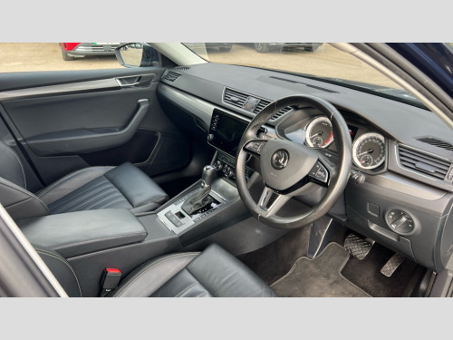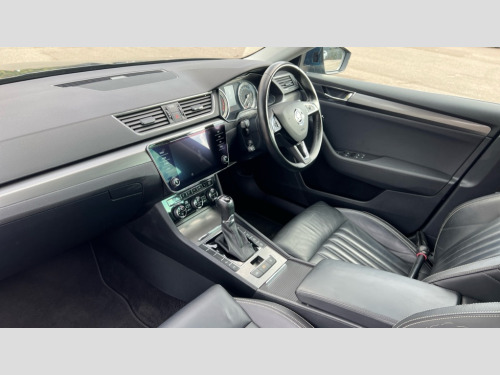 Skoda Superb 2.0 TSI 190 SE L 5dr DSG Adaptive cruise control, Bluetooth system, CareConnect and Emergency Call, Driver fatigue sensor, Electromechanical power steering, Front assist with pedestrian protection, Multifunction colour trip computer, Smartlink+ including apple carplay, android auto and mirror link connectivity, Voice control system, XDS+, 2 USB ports, Bolero radio with 8" touchscreen display, DAB Digital radio, In-car voice enhancement, SD card slot, Aero front windscreen wipers with intermittent function, Auto dimming rear view mirror, Body colour door mirrors and handles, Chrome grille surround with chorme rib elements, Chrome strip between rear lights and lower strip on side doors, Chrome window surround, Cornering front fog lights, Electrically adjustable heated and folding door mirrors with memory function, Front and rear electric windows, Full matrix LED headlights with AFS LED DRL integrated with headlight washer LED rear lights(High function), dynamic indicators and lighting animation, LED rear lights with high functionality, Privacy glass, Rain sensor, 12v power point in centre console, Electric auxiliary air heater, Front armrest with storage box, Height adjustable front and rear head restraints, Ice scraper, Illuminated and cooled glovebox, Illuminated luggage compartment, Interior lights with control switches, Isofix child seat fittings on outer rear seats, Leather upholstery, One umbrella compartments in driver door with one umbrella in drivers door, Overhead glasses storage compartment, Rear centre armrest with cupholders, Removable parcel shelf, Split folding rear seats, Textile floor mat set, Ticket holder on A Pillar, 3 rear seatbelts, 7 airbags - Front, front side, curtain, driver's knee airbag with front passenger deactivation switch, Driver and passenger seatbelts with warning light, Electronic parking brake, ESC including ABS, EBV, MSR, ASR, EDS, HBA, DSR, RBS, CBC, multi-collision brake (MKB) and Auto hold, Hill start assist, Tyre pressure monitor, Alarm with interior monitoring tilt sensor and back up horn, Electronic engine immobiliser, Keyless entry and start/stop including rear doors, Remote central locking with SAFE system