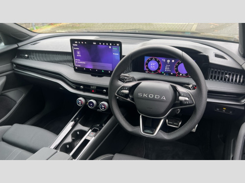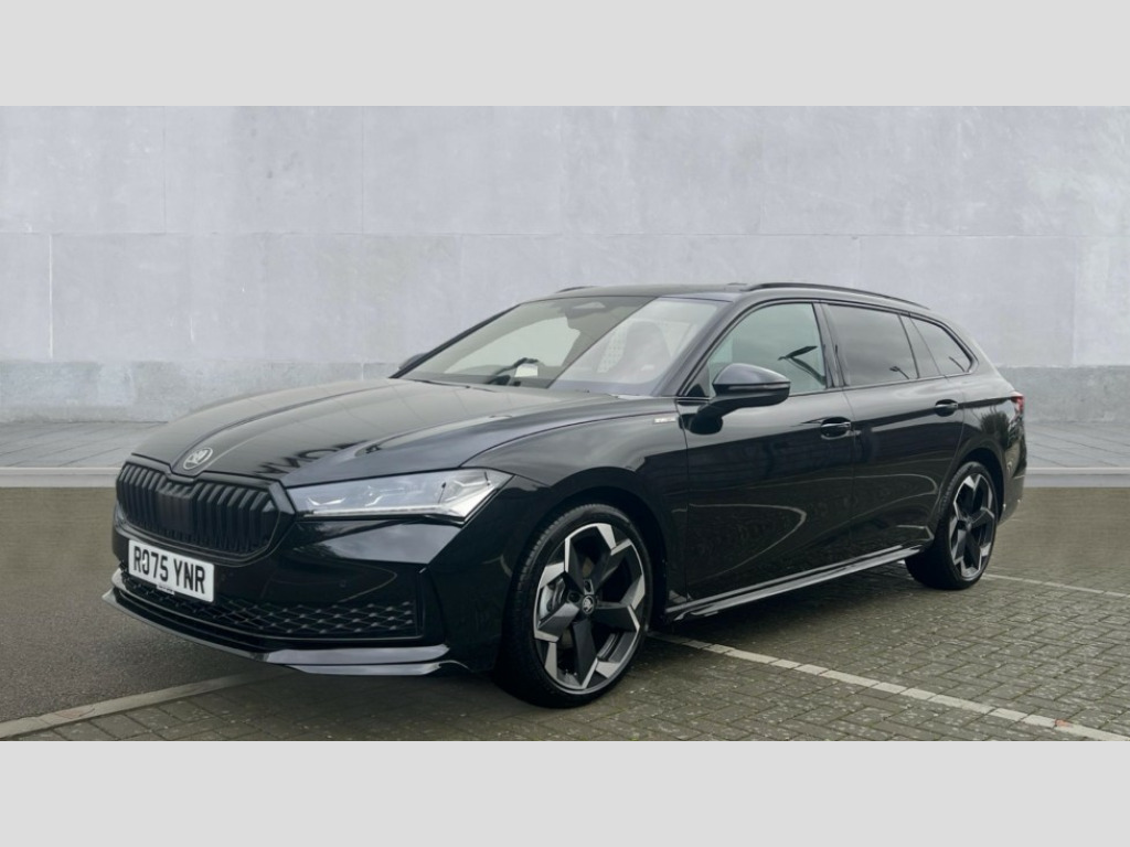 Skoda Superb 1.5 TSI e-TEC Sportline 5dr DSG 13" touchscreen display with satellite navigation, 4x USB-C ports (2x in front centre console and 2x in rear) (45W), Adaptive cruise control with speed assist,lane assist plus and traffic tram assist, Blind spot detection with door exit warning, Bluetooth system, CareConnect and Emergency Call, ChatGPT functionality, Driver fatigue sensor, Front assist with extended predictive pedestrian protection, Front cross traffic assist, PAS, Quick start all heating software functionality, Stop/start engine system, Traffic sign recognition, Turn assist with evasive assistance, Virtual Cockpit - 10.25" digital display, Voice control system, Washer for rear camera, Wireless charging for one smartphone (15W) with cooling function, Wireless smartlink apple carplay, SmartLink+ android auto, Dynamic chassis control plus with progressive dynamic steering, DAB Digital radio, Display cleaner, FM radio connection, Web radio connection, Acoustic side windows and interior noise suppression, Backdrop lighting, Black exterior styling window and grille surrounds, Black roof rails, Body colour door handles, Dynamic range control with poor weather light and integrated fog light, Electrically adjustable, heated, folding and driver side auto-dimming door mirrors with memory function, integrated indicators and logo projection, Frameless auto-dimming rear view mirror with USB-C, Gloss black door mirrors, Ice scraper in fuel tank cap, LED 3rd brake light, Light assist with High beam control, Light assistant (coming/leaving home/tunnel light), Privacy glass, Rear fog lights (x2), Rear roof spoiler, Rear side wing doors, Rear windscreen wiper, Skoda lettering in black, Sportline badging, Sports bumpers, Windscreen wipers with rain sensor, 12V socket 1x centre console 1x boot, 14-way electrically adjustable, memory, front seats with 4-way pneumatic lumbar support, and extendable thigh support with smart comfort entry aid, 2x cargo elements in boot, 2x light in boot, 3 seat bench in 2nd row, 4x foldable bag hooks in boot, 60:40 Split folding rear seats, Aluminium pedals, Bottle holders in the front doors 1.5 litre bottle and rear 1.5 litre bottle, Cup holder in front with easy open mat, Front armrest with storage box, Front sports seats, Heated and ventilated front seats, Height adjustable front and rear head restraints, Illuminated glovebox, Interior lights with control switches, Isofix child seat fittings in outer rear and front passenger seats, LED front and rear reading lights, Single front passenger seat, Skoda lettering on steering wheel, Storage compartment with cover, Storage pockets on back of front seats, Sun visors with illuminated vanity mirrors, Ticket holder on A Pillar, Tri zone climate control, Umbrella in driver's door, Light and view package - Superb, Transport package - Superb Estate, 3 rear seatbelts, 8 Airbags - Front driver and passenger,front side driver and passenger,centre,curtain front and rear,drivers knee, Crew protect assist, Driver and passenger seatbelts with warning light, Electronic parking brake, ESC including ABS, EBV, MSR, ASR, EDS, HBA, DSR, RBS, CBC, multi-collision brake (MKB) and Auto hold, Hill hold assist, Power operated child lock in rear doors, Alarm with interior monitoring tilt sensor and back up horn, Backrest remote release from trunk, Electronic engine immobiliser, Keyless start/stop, Remote central locking with SAFE system, Third key, Walk away locking, Decorative front door sills, 19" Torcular polished black alloy wheels with anti theft wheel bolts