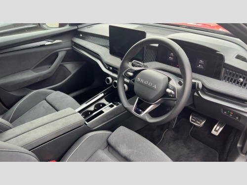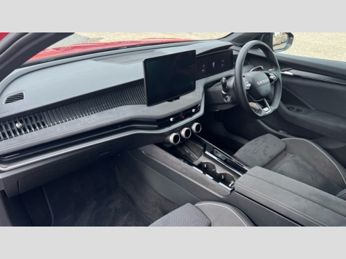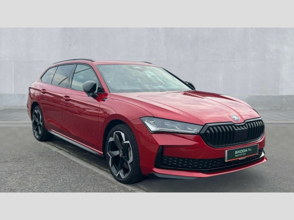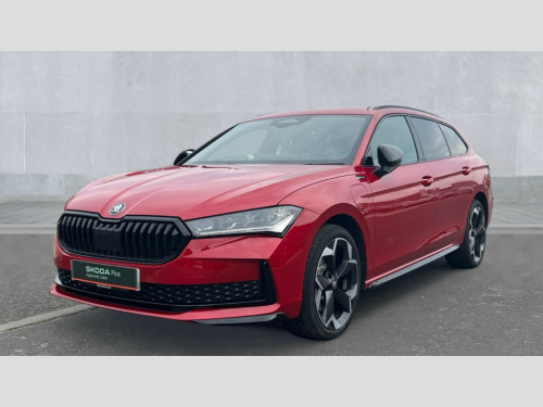 Skoda Superb 1.5 TSI iV Sportline 5dr DSG 13" touchscreen display with satellite navigation, 4x USB-C ports (2x in front centre console and 2x in rear) (45W), Adaptive cruise control with speed assist,lane assist plus and traffic tram assist, Blind spot detection with door exit warning, Bluetooth system, CareConnect and Emergency Call, ChatGPT functionality, Drive mode selection, Driver fatigue sensor, Front assist with extended predictive pedestrian protection, Front cross traffic assist, PAS, Quick start all heating software functionality, Stop/start engine system, Traffic sign recognition, Turn assist with evasive assistance, Virtual Cockpit - 10.25" digital display, Voice control system, Washer for rear camera, Wireless charging for one smartphone (15W) with cooling function, Wireless smartlink apple carplay, SmartLink+ android auto, Dynamic chassis control plus with progressive dynamic steering, Mode 3 charging cable, DAB Digital radio, Display cleaner, FM radio connection, Web radio connection, Acoustic side windows and interior noise suppression, Backdrop lighting, Black exterior styling window and grille surrounds, Black roof rails, Body colour door handles, Dynamic range control with poor weather light and integrated fog light, Electrically adjustable, heated, folding and driver side auto-dimming door mirrors with memory function, integrated indicators and logo projection, Frameless auto-dimming rear view mirror with USB-C, Gloss black door mirrors, Ice scraper in fuel tank cap, LED 3rd brake light, Light assist with High beam control, Light assistant (coming/leaving home/tunnel light), Privacy glass, Rear fog lights (x2), Rear roof spoiler, Rear side wing doors, Rear windscreen wiper, Skoda lettering in black, Sportline badging, Sports bumpers, Windscreen wipers with rain sensor, 12V socket 1x centre console 1x boot, 14-way electrically adjustable, memory, front seats with 4-way pneumatic lumbar support, and extendable thigh support with smart comfort entry aid, 2x cargo elements in boot, 2x light in boot, 3 seat bench in 2nd row, 4x foldable bag hooks in boot, 60:40 Split folding rear seats, Aluminium pedals, Bottle holders in the front doors 1.5 litre bottle and rear 1.5 litre bottle, Cup holder in front with easy open mat, Front armrest with storage box, Front sports seats, Heated and ventilated front seats, Height adjustable front and rear head restraints, Illuminated glovebox, Interior lights with control switches, Isofix child seat fittings in outer rear and front passenger seats, LED front and rear reading lights, Single front passenger seat, Skoda lettering on steering wheel, Storage compartment with cover, Storage pockets on back of front seats, Sun visors with illuminated vanity mirrors, Ticket holder on A Pillar, Tri zone climate control, Umbrella in driver's door, Light and view package - Superb, Transport package - Superb Estate, 3 rear seatbelts, 8 Airbags - Front driver and passenger,front side driver and passenger,centre,curtain front and rear,drivers knee, Crew protect assist, Driver and passenger seatbelts with warning light, Electronic parking brake, ESC including ABS, EBV, MSR, ASR, EDS, HBA, DSR, RBS, CBC, multi-collision brake (MKB) and Auto hold, Hill hold assist, Power operated child lock in rear doors, Alarm with interior monitoring tilt sensor and back up horn, Backrest remote release from trunk, Electronic engine immobiliser, Keyless start/stop, Remote central locking with SAFE system, Third key, Walk away locking, Decorative front door sills, 19" Torcular polished black alloy wheels with anti theft wheel bolts, Tyre repair kit