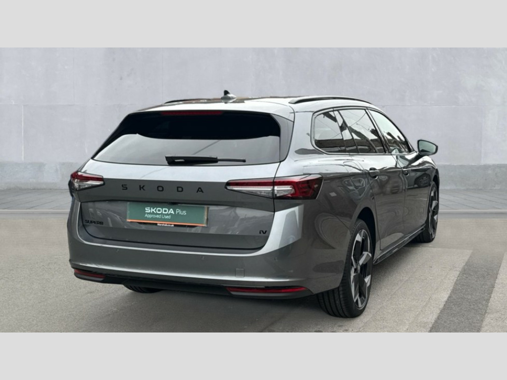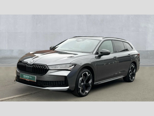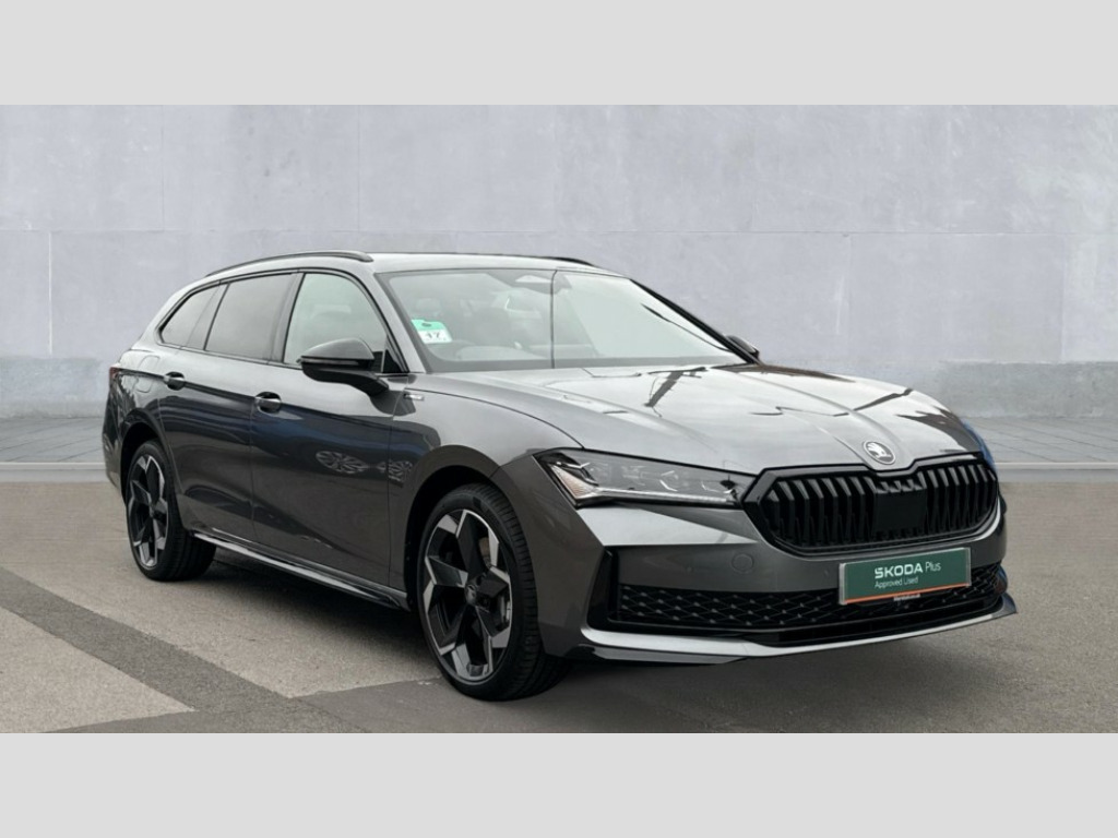 Up to 2 years Servicing, 2 years Warranty, 2 years Roadside Assistance, 2 MOT's and up to £250 deposit contribution for vehicles 13-36 months old at 11.4% APR Representative ** 13" touchscreen display with satellite navigation, 4x USB-C ports (2x in front centre console and 2x in rear) (45W), Adaptive cruise control with speed assist,lane assist plus and traffic tram assist, Blind spot detection with door exit warning, Bluetooth system, CareConnect and Emergency Call, ChatGPT functionality, Drive mode selection, Driver fatigue sensor, Front assist with extended predictive pedestrian protection, Front cross traffic assist, PAS, Quick start all heating software functionality, Stop/start engine system, Traffic sign recognition, Turn assist with evasive assistance, Virtual Cockpit - 10.25" digital display, Voice control system, Washer for rear camera, Wireless charging for one smartphone (15W) with cooling function, Wireless smartlink apple carplay, SmartLink+ android auto, Dynamic chassis control plus with progressive dynamic steering, Mode 3 charging cable, DAB Digital radio, Display cleaner, FM radio connection, Web radio connection, Acoustic side windows and interior noise suppression, Backdrop lighting, Black exterior styling window and grille surrounds, Black roof rails, Body colour door handles, Dynamic range control with poor weather light and integrated fog light, Electrically adjustable, heated, folding and driver side auto-dimming door mirrors with memory function, integrated indicators and logo projection, Frameless auto-dimming rear view mirror with USB-C, Gloss black door mirrors, Ice scraper in fuel tank cap, LED 3rd brake light, Light assist with High beam control, Light assistant (coming/leaving home/tunnel light), Privacy glass, Rear fog lights (x2), Rear roof spoiler, Rear side wing doors, Rear windscreen wiper, Skoda lettering in black, Sportline badging, Sports bumpers, Windscreen wipers with rain sensor, 12V socket 1x centre console 1x boot, 14-way electrically adjustable, memory, front seats with 4-way pneumatic lumbar support, and extendable thigh support with smart comfort entry aid, 2x cargo elements in boot, 2x light in boot, 3 seat bench in 2nd row, 4x foldable bag hooks in boot, 60:40 Split folding rear seats, Aluminium pedals, Bottle holders in the front doors 1.5 litre bottle and rear 1.5 litre bottle, Cup holder in front with easy open mat, Front armrest with storage box, Front sports seats, Heated and ventilated front seats, Height adjustable front and rear head restraints, Illuminated glovebox, Interior lights with control switches, Isofix child seat fittings in outer rear and front passenger seats, LED front and rear reading lights, Single front passenger seat, Skoda lettering on steering wheel, Storage compartment with cover, Storage pockets on back of front seats, Sun visors with illuminated vanity mirrors, Ticket holder on A Pillar, Tri zone climate control, Umbrella in driver's door, Light and view package - Superb, Transport package - Superb Estate, 3 rear seatbelts, 8 Airbags - Front driver and passenger,front side driver and passenger,centre,curtain front and rear,drivers knee, Crew protect assist, Driver and passenger seatbelts with warning light, Electronic parking brake, ESC including ABS, EBV, MSR, ASR, EDS, HBA, DSR, RBS, CBC, multi-collision brake (MKB) and Auto hold, Hill hold assist, Power operated child lock in rear doors, Alarm with interior monitoring tilt sensor and back up horn, Backrest remote release from trunk, Electronic engine immobiliser, Keyless start/stop, Remote central locking with SAFE system, Third key, Walk away locking, Decorative front door sills, 19" Torcular polished black alloy wheels with anti theft wheel bolts, Tyre repair kit