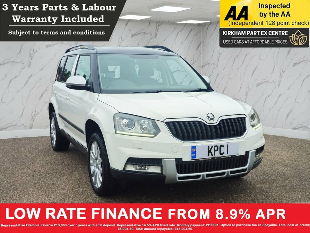 Used Skoda Yeti for Sale – 1.2 TSI Elegance DSG – Petrol SUV – Low Mileage – Kirkham, Preston, Blackpool, Lytham, St Annes, Poulton, Fleetwood, Wigan, Bolton, Southport, Lancaster & Manchester 2014 Skoda Yeti 1.2 TSI Elegance SUV finished in white with 90,558 miles and a full service history. This sought-after compact SUV combines Skoda's proven reliability with excellent practicality and a premium specification. Powered by the smooth 1.2 TSI petrol engine paired with the DSG automatic gearbox producing 105ps, it offers refined performance, strong economy and everyday usability. Vehicle Highlights 2014 Skoda Yeti 1.2 TSI Elegance DSG 90,558 miles – full service history White finish in excellent condition 4 former keepers with two remote keys Supplied with 12 Months MOT on sale Specification & Features Parking sensors for easy manoeuvring Climate control with dual-zone settings Premium leather interior trim 17" alloy wheels Privacy glass for style and comfort Multifunction steering wheel and infotainment system Ownership & Peace of Mind Supplied with 12 Months MOT on sale HPI clear with mileage verification Full V5 registration and two keys included AA 128-point inspection on all cars over £2995 12 Months FREE AA Breakdown Cover included 1 Year Nationwide Parts & Labour Warranty the AA Dealer Promise & Consumer Rights Act 2015 Why Choose This Skoda Yeti? The Skoda Yeti Elegance DSG is a versatile SUV, offeri 12V Socket, 12V Socket in Luggage Compartment, 17in Alloy Wheels - Annapurna, 3 Spoke Leather Steering Wheel, ABS - Anti-Lock Braking System, ASR - Anti Slip Regulation, Air Conditioning - Climate Control Dual , Airbags - Driver, Airbags - Driver Knee, Airbags - Front Passenger, Airbags - Front Side, Airbags - Passenger Deactivation Switch, Alarm with Interior Monitoring, Anti-Theft Locking Wheel Bolts, Armrest - Front with Storage, Armrest - Rear, Auto Dimming Rear View Mirror, Automatic Fuel Supply Cut-Off in Case of, Aux-In Socket - 3.5mm, Bi-Xenon Headlights, Black Roof Rails, Body Mouldings - Body Coloured, Bolero Infotainment System, Bumpers - Body Coloured, Central Locking - Remote, C