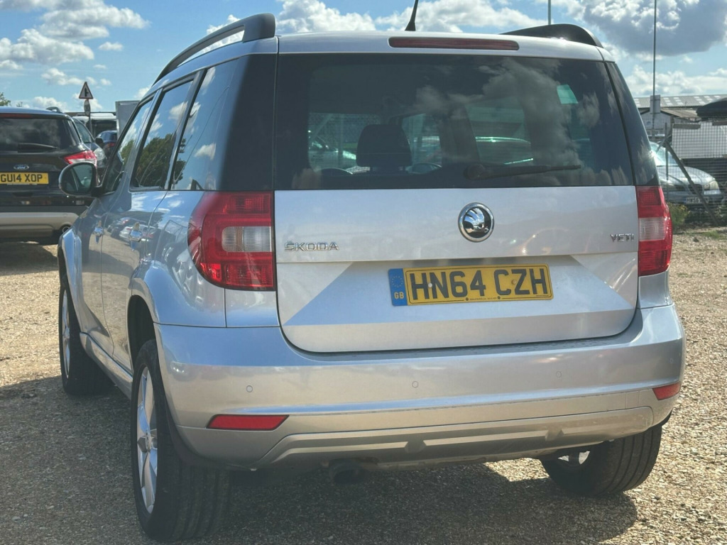 A good example of a Skoda Yeti comes with a warranted low mileage, satnav, full black leather, Parking Sensors, Climate controll, Excellent service history ( 8 service stamps or invoices in the book ) , latest service been done recently , Good condition inside and outside, Well looked after example, 2 Key, Amazing drive, Hpi Clear (certificate present),***3 Months free warranty and 12 Months Free AA breakdown cover included in price. Viewings and test drives are welcome 7 days a week. Please visit our website for similar cars. For any questions please feel free to call our friendly sales team on 01635226263 or what's app on 07517663671This Skoda Yeti TSI SE from 2014 offers excellent value, having had only two owners from new. Powered by a 1.2 litre petrol engine, this SE trim model comes with body coloured door mirrors and rear parking sensors to aid manoeuvring. Inside, you'll find dual zone climate control for comfortable journeys and GSM II telephone preparation with Bluetooth connectivity, allowing for handsfree calls.The Skoda Yeti TSI SE is a sensible choice, benefiting from a low insurance group which can help keep running costs down. Furthermore, its low CO2 emissions indicate a more environmentally friendly performance compared to many other vehicles in its class. This combination of practical features and cost effective highlights makes it an appealing option., v socket, 12v socket in luggage compartment, 17in alloy wheels - scudo, abs - anti-lock braking system, asr - anti slip regulation, air conditioning - climate control dual zone, airbags - driver, airbags - driver knee, airbags - front passenger, airbags - front side, airbags - passenger deactivation switch, alarm with interior monitoring, anti-theft locking wheel bolts, armrest - front with storage, armrest - rear, automatic fuel supply cut-off in case of accident, aux-in socket - 3.5mm, black roof rails, bolero radio - with 6cd changer, bumpers - body coloured, central locking - remote, centre console with cup holders, cruise control, cup holders - rear, curtain airbags, dsr - driver steering recommendation, daytime running lights, door handles - body coloured, door mirrors - body coloured, dust and pollen filter, ebv - electronic brake variator, eds - electronic differential system, esbs - electronic stability braking system, esp - electronic stability programme, electrically adjustable and heated door mirrors, electro-mechanical power steering, electronic engine immobiliser, exterior temperature gauge, front fog lights, front and rear electric windows, gear change recommendation, glovebox - air conditioned, hba - hydraulic brake assist, head restraints - height adjustable rear x3, headlights - halogen, headlights - washers, isofix child seat preparation - outer rear, indicators integrated into door mirrors, luggage compartment - horizontal rails with sliding hooks, luggage compartment - lashing eyes, luggage compartment - net, luggage compartment - removable led light, msr - motor slip regulation, parking sensors - rear, seatbelt warning - front, seats - drivers height adjustment, seats - front passenger height adjustment, seats - varioflex, speakers x8, steering wheel - 3 spoke leather with handbrake and gearknob, steering wheel - multifunction controls, sunset glass, telephone preparation - gsm ii with bluetooth, third rear headrest, ticket holder, tilt sensor, trip computer - maxi-dot, tyre repair kit, vanity mirrors - front, washer fluid level indicator, driver alert with fatigue sensor, dab radio, park assist, heated windscreen