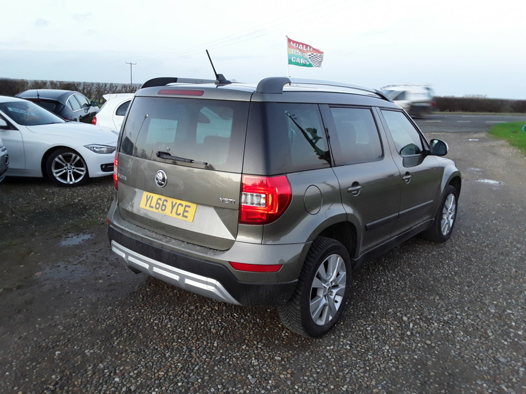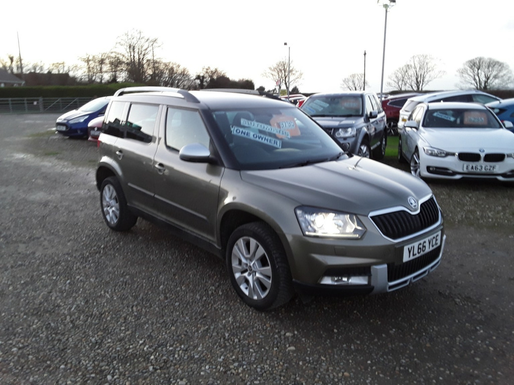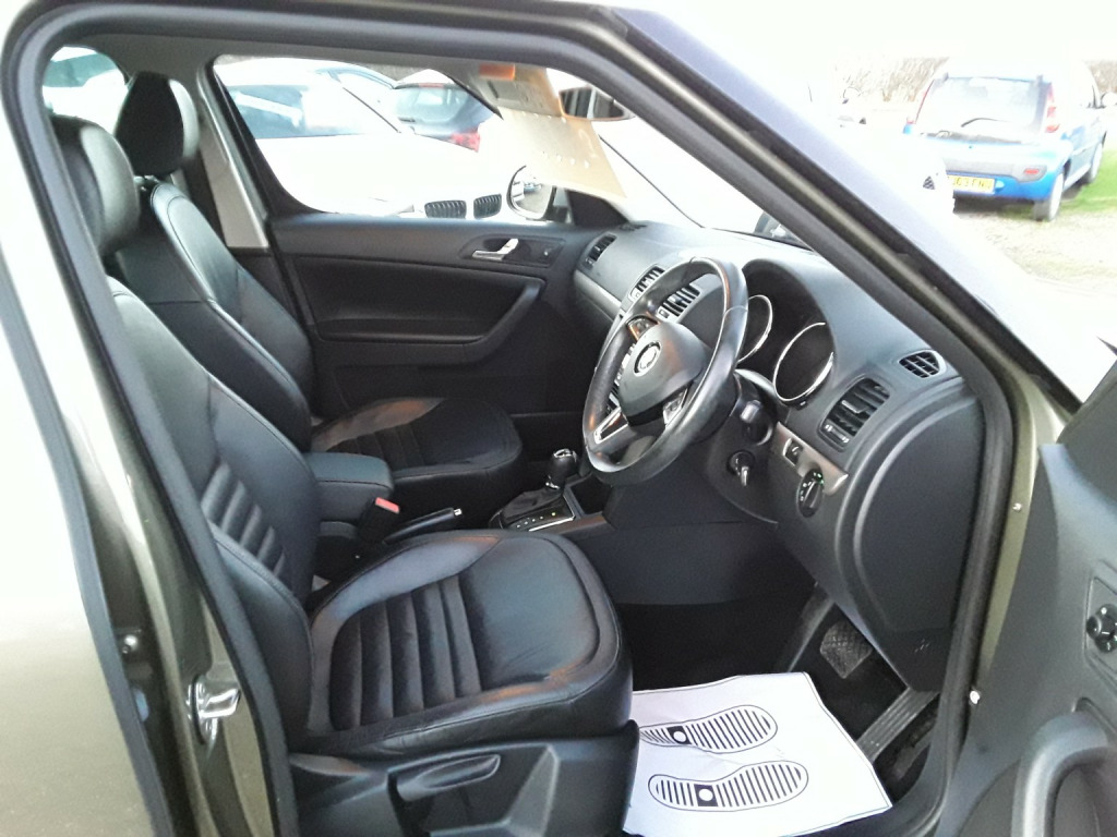 FINISHED IN OLIVE GREEN METALLIC WITH FULL BLACK LEATHER SEATS. SKODA YETI OUTDOOR SE L AUTOMATIC 5 DOOR. 1.2 TURBO CHARGED PETROL 4 CYLINDER. 66 REG ON A 2017.98,000 MILES BY ONE DISABLED OWNER FROM NEW WITH FULL SKODA MAIN DEALER SERVICE HISTORY,10 SERVICE STAMPS.!! HAVE TO SAY STUNNING CONDITION 1ST TO SEE AND DRIVE WILL DEFINITELY BUY. RARE AUTOMATIC!! COMES WITH 12 MONTHS M.O.T.AND A FRESH SERVICE. PREMIUM MICHELIN SET OF TYRES.TOP OF THE RANGE SO PLENTY OF SPEC:- FULL BLACK LEATHER SEATS, HEATED SEATS, SATELLITE NAVIGATION, CRUISE CONTROL, POWER FOLDING MIRRORS, BLUETOOTH, MEDIA.DRIVES FANTASTIC. PLENTY OF POWER. FANTASTIC CONDITION INSIDE AND OUT. REALLY NICE COLOUR.GREAT LOOKING YETI.