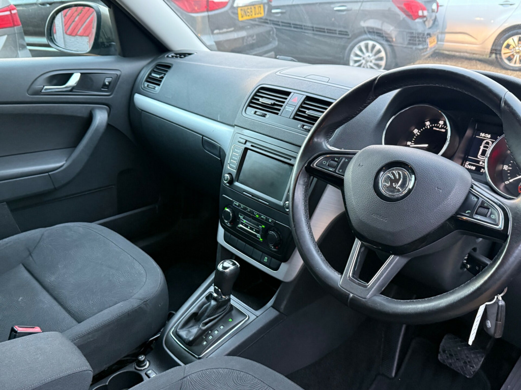Sussex Vehicle Solutions Ltd are delighted to present this Skoda Yeti 1.2 TSI SE SUV 5dr Petrol DSG. Across all our stock, we ensure servicing is up to date, that there is at least 6 months MOT remaining, and we provide warranty options of 3/6/12 months. As an AA Approved dealership, all vehicles come with 12 months AA breakdown cover free of charge. We can offer bespoke finance packages to suit all deal sizes and credit profiles, with rates starting from 8.9% APR. Sussex Vehicle Solutions is a family run business and we pride ourselves on giving excellent customer service in a pressure-free environment. If you have any questions, please do not hesitate to get in touch. v socket, 12v socket in luggage compartment, aux-in socket - 3.5mm, bolero infotainment system, sd card reader, speakers x8, telephone preparation - gsm ii with bluetooth, touchscreen - 6.5in colour, usb connection, 17in alloy wheels - scudo, anti-theft locking wheel bolts, black roof rails, bumpers - body coloured, door handles - body coloured, door mirrors - body coloured, electrically adjustable and heated door mirrors, front and rear electric windows, indicators integrated into door mirrors, sills - body colour, sunset glass, tyre repair kit, 3 spoke leather steering wheel, air conditioning - climate control dual zone, armrest - front with storage, armrest - rear, centre console with cup holders, cup holders - rear, door handles - interior in chrome, dust and pollen filter, gearknob - leather, glovebox - air conditioned, glovebox - illuminated, grab handles - roof, handbrake - leather, head restraints - height adjustable rear x3, height and reach adjustable steering wheel, holder for 1 litre bottle in storage compartments on front door panels, illuminated luggage compartment, interior lighting with door check on all doors, luggage compartment - horizontal rails with sliding hooks, luggage compartment - lashing eyes, luggage compartment - net, luggage compartment - removable box, luggage compartment - removable led light, non-smoking package, reading lights - front and rear, safety reflectors on front doors, seats - drivers height adjustment, seats - front passenger height adjustment, seats - varioflex, steering wheel - multifunction controls, storage box on dash, third rear headrest, ticket holder, vanity mirrors - front, abs - anti-lock braking system, asr - anti slip regulation, airbags - driver, airbags - driver knee, airbags - front passenger, airbags - front side, airbags - passenger deactivation switch, alarm with interior monitoring, automatic fuel supply cut-off in case of accident, central locking - remote, child safety switch, curtain airbags, dsr - driver steering recommendation, ebv - electronic brake variator, eds - electronic differential system, esbs - electronic stability braking system, esp - electronic stability programme, hba - hydraulic brake assist, hhc - hill hold control, isofix child seat preparation - outer rear, msr - motor slip regulation, safe - prevents unlocking from inside, seatbelt warning - front, tilt sensor, cruise control, electro-mechanical power steering, exterior temperature gauge, parking sensors - rear, rev counter and digital clock, tpms - tyre pressure monitoring system, trip computer - maxi-dot, washer fluid level indicator, daytime running lights, front fog lights, headlights - halogen, headlights - washers
