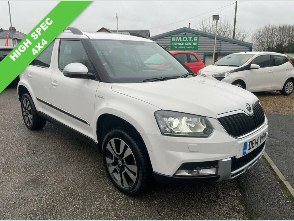 WOW A LOVELY SKODA YETI 4X4 JUST ARIVED....THIS CAR IS PRETTY COOL ! THIS IS A STAND-OUT CAR OFFERING YOU A STUNNING CAR INTERIOR SPECIFICATION AND ALSO ALL-YEAR ROUND 4X4 DRIVING CAPABILITY TOO...FULLY SERVICED CAR AT SKODA X 7 IN TOTAL LAST DONE AT 67,288 ON 25/11/25...LOOKS GREAT IN CANDY WHITE WITH THE UPGRADE BROWN LEATEHER HEATED SEATS WITH A FULL ELECTRIC PAN-ROOF , ALSO A LOVELY DASH WITH THE UPGRADED SOUND SYSTEM , CAR PLAY OPTION , SATALITE NAVIGATION PLUS HEATED MIRRORS , ALL ELECTRIC PACK , REVERSE PARK SENSORS , DUAL CLIMATE , PLUS CARGO LINER IN BOOT , ROOF RAILS , HUGE BOOT SPACE AND HEAD-ROOM ALSO...OVERALL A GEM OF A CAR !...JUST SERVICED & MOT'D READY TO GO CAR !...WE ALSO INCLUDE 6 MONTHS RAC WARRANTY , FINANCE , PART EXCHANGE AND DELIVERY...CALL OUR TEAM ON 07799675426 OR 07778917928 OR 01204 302889. Leather - Brown, Moon White, Candy White, 12V Socket, 12V Socket in Luggage Compartment, 17in Alloy Wheels - Origami - Black and , 3 Spoke Leather Steering Wheel, ABS - Anti-Lock Braking System, ASR - Anti Slip Regulation, Air Conditioning - Climate Control Dual , Airbags - Driver, Airbags - Driver Knee, Airbags - Front Passenger, Airbags - Front Side, Airbags - Passenger Deactivation Switch, Alarm with Interior Monitoring, Anti-Theft Locking Wheel Bolts, Armrest - Front Leather, Armrest - Front with Storage, Armrest - Rear, Auto Dimming Rear View Mirror, Automatic Fuel Supply Cut-Off in Case of, Aux-In Socket - 3.5mm, Bi-Xenon Headlights, Bluetooth - Audio Streaming, Body Mouldings - Black