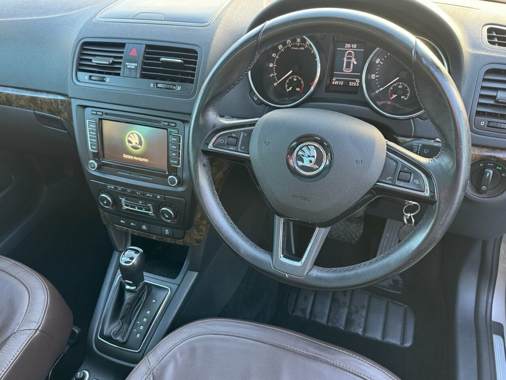 The Skoda Yetis 4x4 popularity was boosted hugely by Jeremy Clarkson's proclamation that it was the greatest thing...in the world on Top Gear!!! They were/are like no other little car in their class. They're great little cars with good road holding, reliability & economy. This little gem looks fantastic being the LAURIN & KLEMENT model in beige metallic with large glass roof and brown leather seats. Only covered a mere 64,000 miles by with full service history . Lovely condition throughout for age and this model is very sought after so please call our sales team for availability or to reserve. We can arrange your finance and take your old car in part exchange. Viewings are strictly appointment only. 12V Socket, 12V Socket in Luggage Compartment, 17in Alloy Wheels - Origami - Black and , 3 Spoke Leather Steering Wheel, ABS - Anti-Lock Braking System, Air Conditioning - Climate Control Dual , Airbags - Driver, Airbags - Driver Knee, Airbags - Front Passenger, Airbags - Front Side, Airbags - Passenger Deactivation Switch, Alarm with Interior Monitoring, Anti-Theft Locking Wheel Bolts, Armrest - Front Leather, Armrest - Front with Storage, Armrest - Rear, ASR - Anti Slip Regulation, Auto Dimming Rear View Mirror, Automatic Fuel Supply Cut-Off in Case of, Aux-In Socket - 3.5mm, Bi-Xenon Headlights, Bluetooth - Audio Streaming, Body Mouldings - Black with Chrome Ledge, Bolero Infotainment Sys