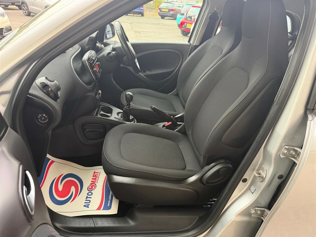 This 2017 Smart forfour T Passion boasts a full service history, offering peace of mind for its next owner. This stylish city car is powered by an efficient 0.9L Euro 6 petrol engine, making it a sensible choice for urban driving. The Passion trim level comes equipped with the desirable Cool and Audio Package, which includes automatic climate control and Bluetooth connectivity, ensuring a comfortable and connected journey. The Smart forfour T Passion is designed to be economical to run. Its impressive fuel economy of 66 mpg, combined with a low insurance group and low CO2 emissions, means it is more cost effective to own and operate than many other vehicles in its class. This makes it an excellent option for those seeking a practical and affordable car. 12 Volt Socket with Cover,15in Alloy Wheels - 8-Spoke Painted in Silver,85 Degree Wide Opening Rear Doors,ABS - Anti Lock Braking System,Airbag - Kneebag for Driver,Airbags - Driver and Passenger,Airbags - Sidebags for Driver and Front Passenger - Combined Head and Thorax,Automatic Climate Control,Black Front Grille,Brake Assist,Breakdown Kit with Air Compressor and Sealant,Central Locking with Convenience Closing Features,Central Locking with Radio Remote Control - Visual Locking-Verification Signal and Folding Key,Centre Console with Pull-Out Tray and Double Cup Holder,Cool and Audio Package with Automatic Climate Control,Crash Sensor for Activation of Hazard Warning Lights,Crosswind Assist,Cruise Control with Speedtronic Variable Speed Limiter,Dashboard and Door Centre Panel - Black Fabric,Dashboard and Door Centre Panel Fabric and Highlights in Contrast Colour,Direct-Steer System with Speed Sensitve Power Assistance and Variable Steering Ratio,Door Mirror Caps in Tridion Colour,Door Mirror with Aspherically Curved Mirror Glass on Driver Side,Drive Lock - Automatic Door Locking when the Vehicle is in Motion,ESP - Electronic Stability Programme,Electric Windows,Exterior Mirrors - Manually Adjustable,Gearshift Lever - Trimmed Leather,Headlights - H4 Halogen,Headrests at the Rear x 2,Hill Start Assist,ISOFIX Child Seat Attachment Points on Rear Seats,Instrument Cluster with Multi Functional Colour 3.5in Display,Interior Door Handle - Matt Chrome,Interior Lighting,LED Daytime Running Lights,Load-Lashing Eyes in Luggage Compartment,Lockable Glove Compartment,Lockable Service Bonnet,Luggage Compartment Cover,Luggage Compartment Lighting,Onboard Computer,Outside Temperature Display,Passenger Seat Backrest Foldable Down For Through Loading,Pedestrian Impact Protection Front and Side,Radiator Trim - Black,Readyspace Seats at Rear with Removable Cargo Box,Rear Seats - Backrest 50:50 Split with Cargo Position,Rear Spoiler,Rear Windscreen - Heated with Timer Control,Rear Windscreen Wiper with Intermittent Wiper and Automatic Wipe - Wash Function,Seat Belt Reminder for Driver and Passenger,Seat Belts - Three-Point with Seat Belt Tensioners and Belt Force Limiters,Smart Audio-System,Solid Roof in Tridion Colour,Steering Wheel - 3- Spoke Multi-Function - Leather,Storage Compartment in Front Doors,Third Rear Brake Light,Tridion Safety Cell in Black Solid Paint,Tyre Pressure Monitoring System,Vanity Mirror in Sun Visors with Parking Ticket Holder for Driver and Passenger,White Side Indicators