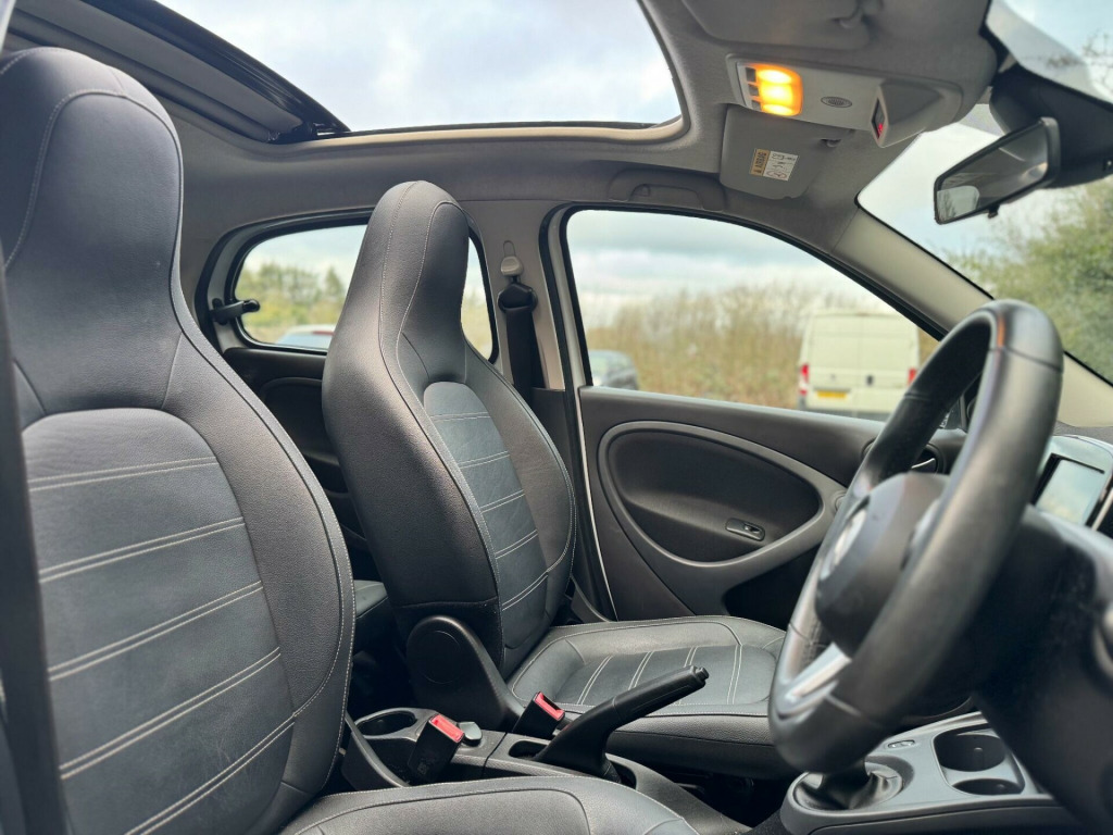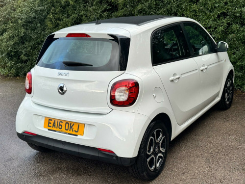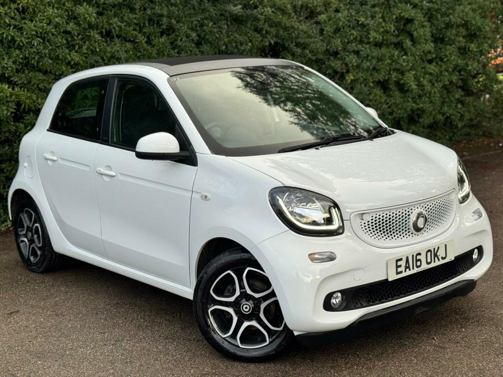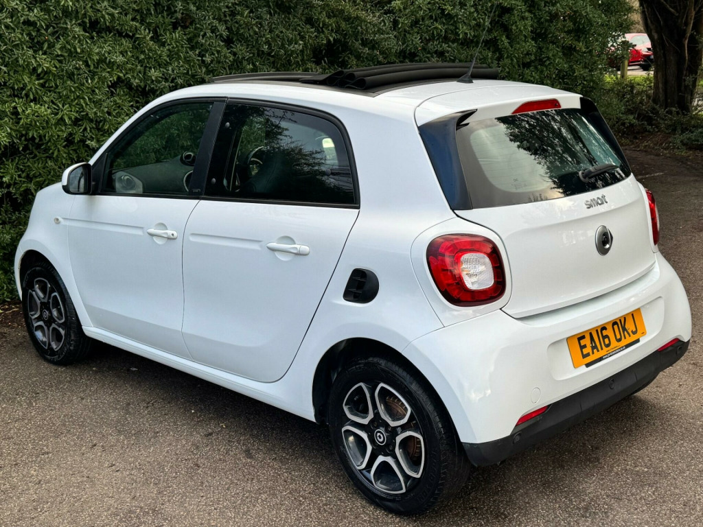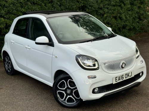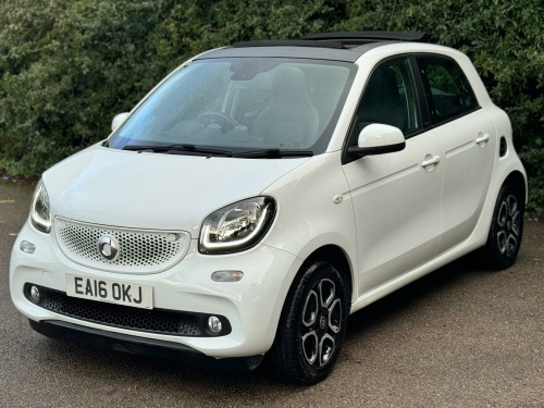 1 FORMER KEEPER FROM NEW - FULL SERVICE HISTORY - JUST BEEN SERVICED - MOT TILL FEBRUARY 2027 - LOW MILEAGE - HPI CLEAR - FINANCE ARRANGED - P/X WELCOME - PLEASE CALL FOR MORE INFORMATION - Discover this exceptional 2016 Smart forfour T Prime Night Sky, boasting remarkably low mileage for its age, having covered just 35,000 miles. This Euro 6 compliant 0.9L petrol model has been cherished by only two owners, offering a compelling combination of style and practicality. Enjoy the convenience of automatic headlights, rear parking assistance with a camera, and heated front seats for added comfort. Stay connected on the go with audio streaming via its Bluetooth module.This Smart forfour stands out with its impressive fuel economy, achieving an outstanding 66 miles per gallon, which is better than many similar vehicles. Furthermore, its low CO2 emissions and low insurance group highlight its cost effectiveness, making it an economical choice for everyday driving. volt socket with cover, 15in alloy wheels - 5-twin-spoke painted in black with a high-sheen finish, 7in capacitive multi-touch display, 85 degree wide opening rear doors, abs - anti lock braking system, airbag - full size driver, airbag - full size passenger, airbag - kneebag for driver, airbag - side for head-thorax, airbag - sidebags, ambient lighting - centre console, ambient lighting - door trim, ambient lighting - footwell, anti-theft alarm system, audio streaming via bluetooth module, automatic climate control, automatic hill start assist on uphill slopes, aux-usb, bluetooth hands-free system, breakdown kit, central locking with radio remote control, centre console with pull-out tray, comfort pack, coming home function, crash sensor auto switch-on of hazard warning lights, crosswind assist, cruise control with speedtronic variable speed limiter, cup holder x 2, dashboard instruments with cockpit clock and rev counter, dashboard and door centre panel - black fabric - black-grey highlights, direct-steer system with speed sensitve power assistance and variable steering ratio, door mirror caps in tridion colour, door mirror with aspherically curved mirror glass on driver side, door mirrors - electrically adjustable and heated, drive lock - automatic door locking when the vehicle is in motion, drivers seat - height adjustable, esp - electronic stability programme, electric folding top - black fabric, electric windows, front fog lights, gearshift lever - trimmed leather, grab handle for front passenger, headlight - automatic, headlights - h4 halogen, headrests at the rear x 2, hydraulic brake assist, isofix child seat attachment points on rear seats, immobiliser, instrument cluster with multi functional colour 3.5in display, interior door handle - matt chrome, led daytime running lights, lane-keeping assist with acoustic and optical warning, load-lashing eyes in luggage compartment, lockable glove compartment, lockable service bonnet, luggage compartment cover, luggage compartment lighting, outside temperature display, painted door handles, painted front grille, parking assistance - rear, parking assistance - rear view camera, passenger seat backrest foldable down for through loading, pedestrian impact protection front and side, pollen filter, premium package, premium plus package, radiator trim - black, radio - am-fm, rain sensing windscreen wipers, reading light for driver and passenger, readyspace seats at rear with removable cargo box, rear seats - backrest 50:50 split with cargo position, rear spoiler, rear windscreen - heated with timer control, rear windscreen wiper with intermittent wiper and automatic wipe - wash function, satellite navigation - whole of europe including 3 live services - individually extendable thereafter, seat belt reminder for driver and passenger, seats - heated front, smart media-system, speakers x4, steering wheel - 3 spoke-leather, steering wheel - height adjustable, steering wheel - multifunction, storage compartment in front doors, sunglasses holder, tail lights - led, third rear brake light, ticket holder, tridion safety cell in black solid paint, trip computer, tyre pressure monitoring system, vanity mirror in sunvisor, voice control, white side indicators