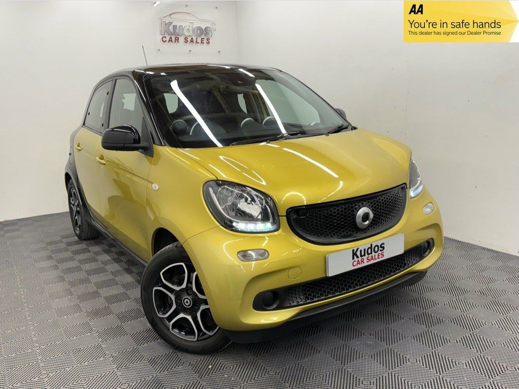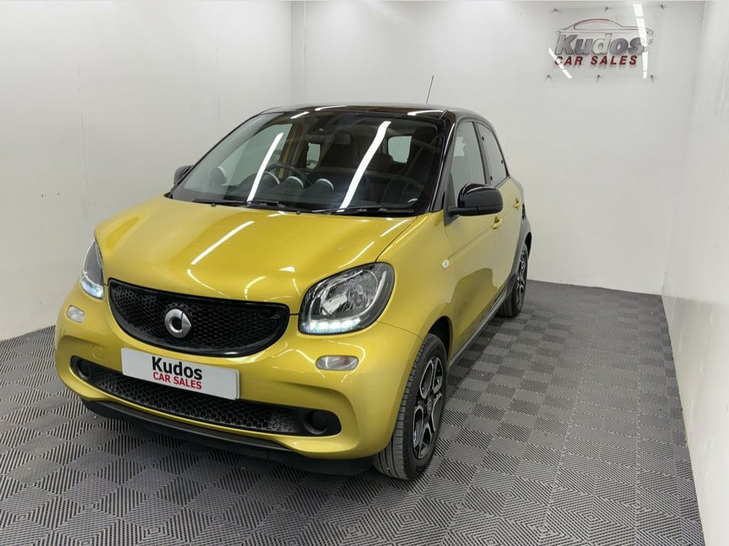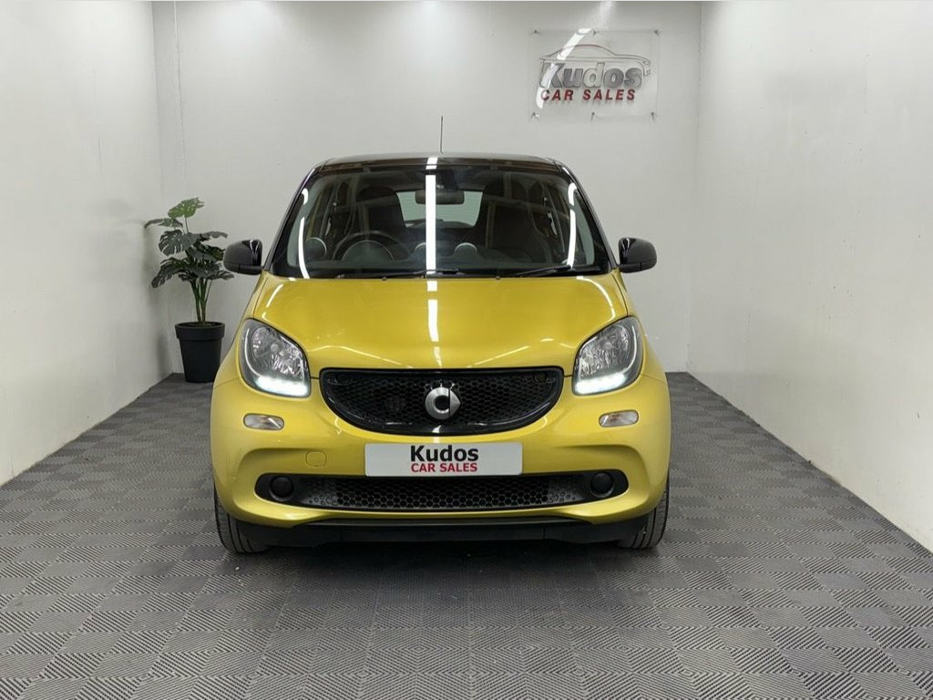 2016 SMART FORFOUR 0.9 Turbo PRIME PREMIUM 5dr - FINISHED IN HIGH GLOSS BLACK AND METALLIC YELLOW. FINANCE AVAILABLE FROM ONLY £117 per mth. 6 MONTHS WARRANTY INCLUDED. EACH VEHICLE COMES WITH A FREE HPI CLEAR REPORT AND 1 YEAR AA BREAKDOWN COVER. FANTASTIC LOW COST ULEZ COMPLIANT RUN AROUND. MOT UNTIL 13/05/2026 [NO ADVISORIES ] SERVICE HISTORY AND JUST FULLY SERVICED. GREAT SPEC: FULL LEATHER INTERIOR, CRUISE CONTROL, TOUCH SCREEN SAT NAV, REAR PARKING SENSORS, DAB, AIRCON, PANORAMIC ROOF, TRACTION CONTROL, RADIO CD, BLUETOOTH, CENTRAL LOCKING, ELECTRIC WINDOWS, UNMARKED ALLOY WHEELS. PREVIOUS NON SMOKER. FINANCE PACKAGES - With a number of lenders on board i am able to offer Finance to suit individual circumstances, including Sub Prime. All CARS ARE HPI CHECKED AND CLEAR. WARRANTY - At KUDOS CAR SALES every vehicle comes with a FREE warranty through Warranty Wise. Any repairs under warranty can be carried out at your local garage - Extended warranty available on request at extra cost. 2 KEYS. ***ALL PART EXCHANGE'S CONSIDERED*** *OPEN 7 DAYS* 12 Volt Socket with Cover, 15in Alloy Wheels - 5-Twin-Spoke Painted, 7in Capacitive Multi-Touch Display, 85 Degree Wide Opening Rear Doors, ABS - Anti Lock Braking System, Airbag - Full Size Driver, Airbag - Full Size Passenger, Airbag - Kneebag for Driver, Airbag - Side for Head-Thorax, Airbag - Sidebags, Audio Streaming Via Bluetooth Module, Automatic Climate Control, Automatic Hill Start Assist on Uphill Sl, Aux-USB, Black-to-Yellow, Bluetooth Hands-Free System, Breakdown Kit, Central Locking with Convenience Closing, Central Locking with Radio Remote Contro, Centre Console with Pull-Out Tray, Comfort Pack, Crash Sensor Auto Switch-On of Hazard Wa, Crosswind Assist, Cruise Control with Sp