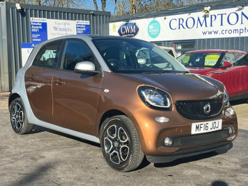 This is a 2016 Smart forfour T Prime, a compact car with a 0.9L petrol engine. It comes in a Prime trim and has had only two owners. With very low mileage at 16,724 miles, this vehicle has been well-maintained with full Mercedes/Smart history, with its last service performed on 22nd September 2023 at 11,038 miles. Equipped with several features for added comfort and convenience, this Smart forfour includes automatic climate control, audio streaming via Bluetooth, and a Bluetooth hands-free system. Parking is made easier with rear parking assistance, and the heated front seats provide extra warmth on colder days. The car's roadworthiness is assured with an MOT valid until September 2025, and a clear vehicle history check provides additional peace of mind. This Smart forfour stands out with its impressive fuel economy of 67 mpg, making it an economical choice for daily commutes and longer journeys. Further enhancing its appeal are its low CO2 emissions, making it an environmentally conscious option. The low insurance group is another significant advantage, offering potential savings on insurance costs. 12 Volt Socket with Cover, 15in Alloy Wheels - 5-Twin-Spoke Painted, 7in Capacitive Multi-Touch Display, 85 Degree Wide Opening Rear Doors, ABS - Anti Lock Braking System, Airbag - Full Size Driver, Airbag - Full Size Passenger, Airbag - Kneebag for Driver, Airbag - Side for Head-Thorax, Airbag - Sidebags, Ambient Lighting - Centre Console, Ambient Lighting - Door Trim, Ambient Lighting - Footwell, Audio Streaming Via Bluetooth Module, Automatic Climate Control, Automatic Hill Start Assist on Uphill Sl, Aux-USB, Bluetooth Hands-Free System, Breakdown Kit, Central Locking with Convenience Closing, Central Locking with Radio Remote Contro, Centre Console with Pull-Out Tray, Comfort Pack, Comin