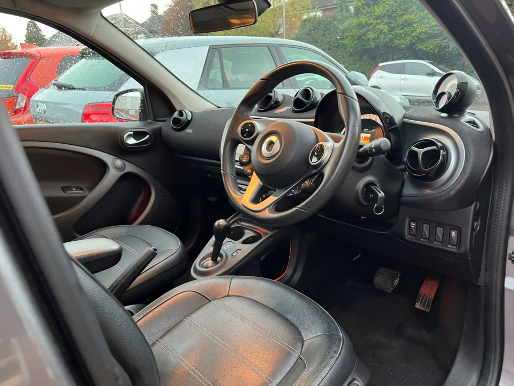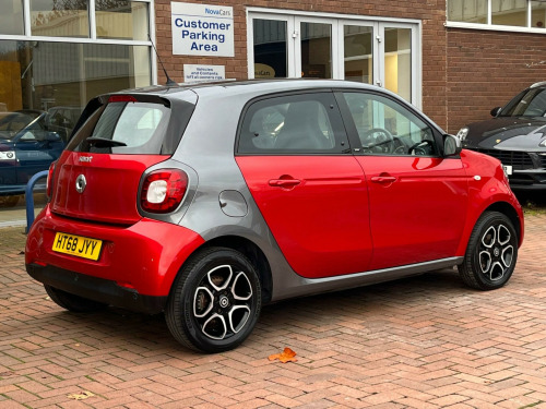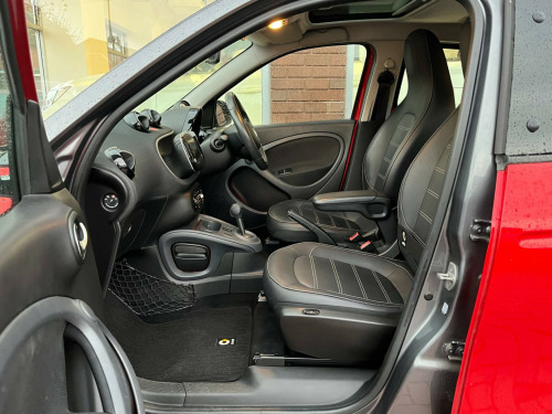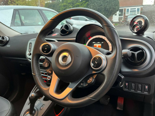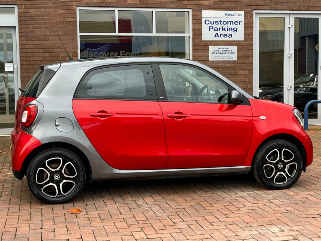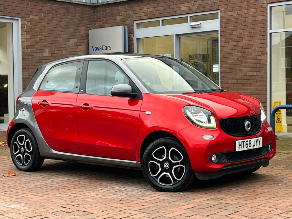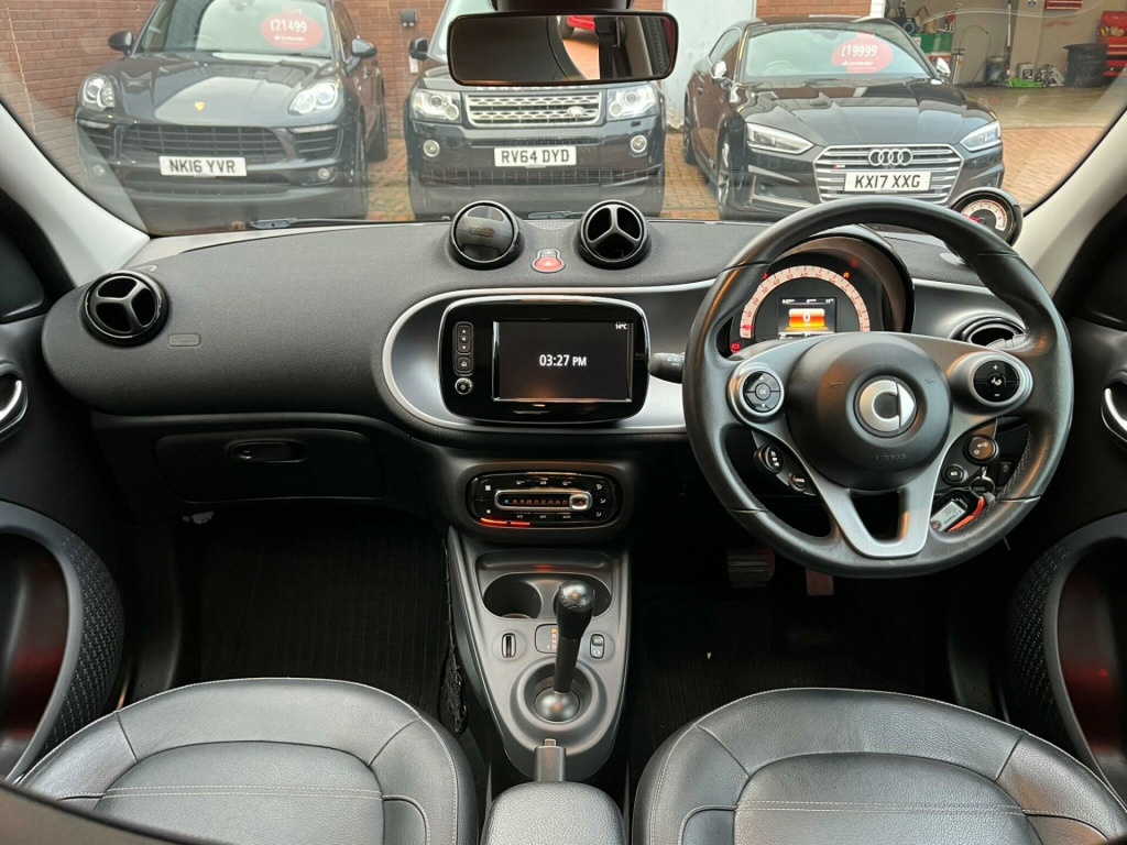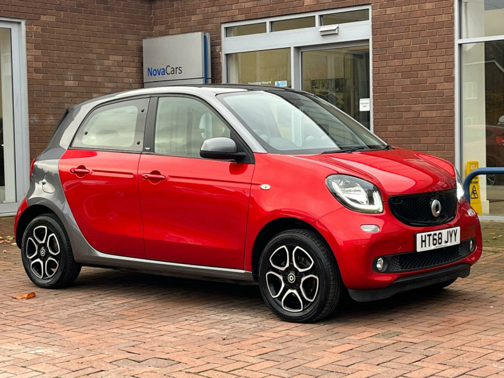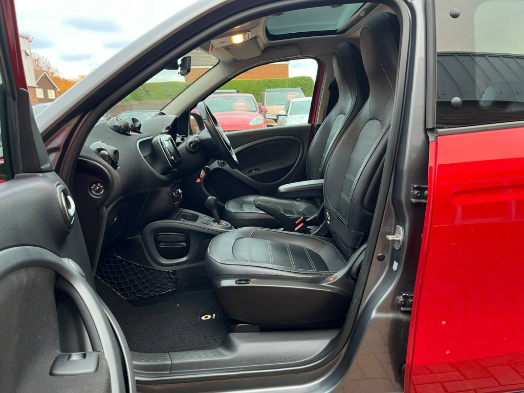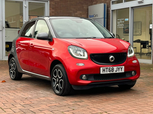 This 2019 Smart forfour T Prime (Premium Plus) is a standout choice, boasting a Euro 6 compliant 0.9L petrol engine for efficient city driving. As a Prime trim model, it comes equipped with a fixed panoramic roof offering a sun protection sunroof, creating a bright and airy cabin. You'll also appreciate the convenience of automatic headlights activated by a rain and light sensor, along with rear view camera parking assistance to make manoeuvring simple. Inside, enjoy the comfort of automatic climate control and heated seats for both the driver and front passenger.This Smart forfour is presented in a low insurance group, making it an economical option for many drivers. The inclusion of features such as the panoramic roof, automatic climate control, and heated seats demonstrates a higher level of specification compared to other vehicles in its class. This particular model offers a well appointed and comfortable driving experience, ideal for navigating urban environments with ease and style.. 12 Volt Socket with Cover, 15in Alloy Wheels - 5-Twin-Spoke Painted in Black with a High-Sheen Finish, 85 Degree Opening Rear Doors, ABS - Anti Lock Braking System, Airbag - Kneebag for Driver, Airbags - Driver and Passenger, Airbags - Sidebags for Driver and Front Passenger - Combined Head and Thorax, Ambient Lighting, Automatic Climate Control, Black Front Grille, Brake Assist, Breakdown Kit with Air Compressor and Sealant, Central Locking with Convenience Closing Features, Central Locking with Radio Remote Control - Visual Locking-Verification Signal, Centre Console with Pull-Out Tray and Double Cup Holder, Comfort Package, Crash Sensor for Activation of Hazard Warning Lights, Crosswind Assist, Cruise Control with Speedtronic Variable Speed Limiter, Dashboard Instruments with Cockpit Clock and Rev Counter, Dashboard and Door Centre Panel - Black Fabric, Direct-Steer System with Speed Sensitve Power Assistance and Variable Steering Ratio, Door Mirror Caps in Tridion Colour, Door Mirror with Aspherically Curved Mirror Glass on Driver Side, Drive Lock - Automatic Door Locking when the Vehicle is in Motion, ESP - Electronic Stability Programme, Electric Windows, Folding Key, Front Fog Lamps with Cornering Function, Gearshift Lever - Trimmed Leather, Grab Handle for Front Passenger, Headlights with LED Light Guide, Heated Seats for Driver and Front Passenger, Hill Start Assist, ISOFIX Child Seat Attachment Points on Rear Seats, Inside Door Opener - Matt Chrome, Instrument Cluster with Multi Functional Colour 3.5in Display, Interior Lighting, LED Daytime Running Lights, LED Tail Lights in Semi-LED Technology, Load-Lashing Eyes in Luggage Compartment, Lockable Glove Compartment, Lockable Service Bonnet, Luggage Compartment Cover, Luggage Compartment Lighting, MirrorLink, Onboard Computer, Outside Temperature Display with Frost Warning, Painted Door Handles, Panoramic Roof with Sun Protection, Parking Assistance - Rear, Parking Assistance - Rear View Camera, Passenger Seat with Through - Loading Function - Flat-Folding Seatback, Pedestrian Impact Protection Front and Side, Pre-Installation for Tablet Holder, Radiator Trim - Black, Rain - Light sensor, Readyspace Seats at Rear with Removable Cargo Box, Rear Seats - Backrest 50:50 Split with Cargo Position, Rear Spoiler, Rear Windscreen - Heated with Timer Control, Rear Windscreen Wiper with Intermittent Wiper and Automatic Wipe - Wash Function, Seat Belt Reminder for Driver and Passenger, Seat Belts - Height Adjustable for Driver and Front Passenger, Seat Belts - Three-Point with Seat Belt Tensioners and Belt Force Limiters, Smart Media-System, Steering Wheel - 3- Spoke Multi-Function - Leather, Storage Compartment in Front Doors, Stowage Space Package, Sunglasses Holder, Third Rear Brake Light, Tridion Safety Cell in Black Solid Paint, Tyre Pressure Monitoring System, Vanity Mirror in Sun Visors with Parking Ticket Holder for Driver and Passenger, White Side Indicators, Perimetric Alarm System, Leather - Black with Grey Stitching.