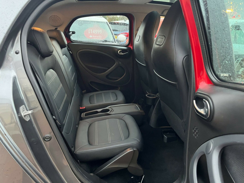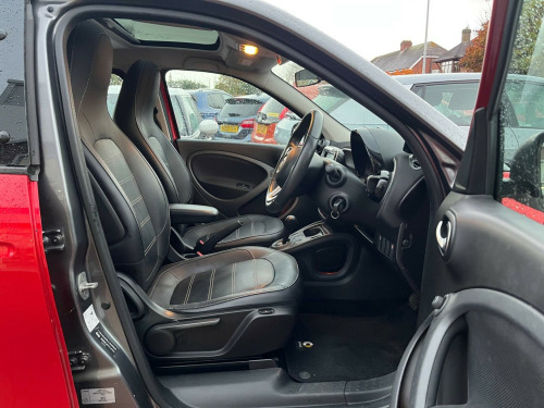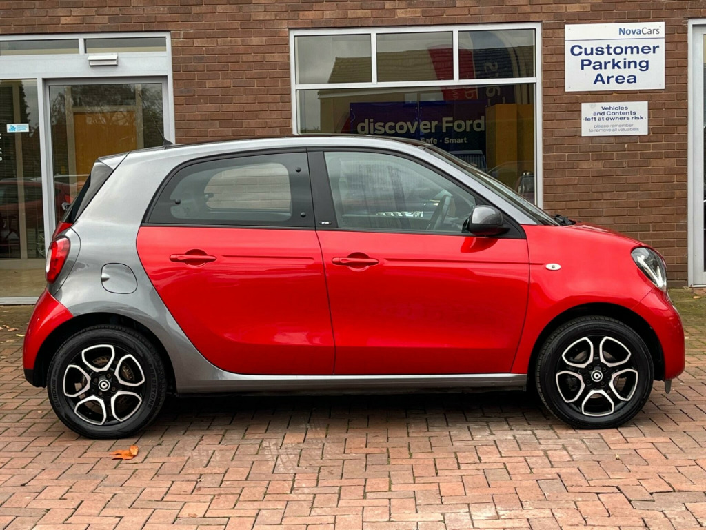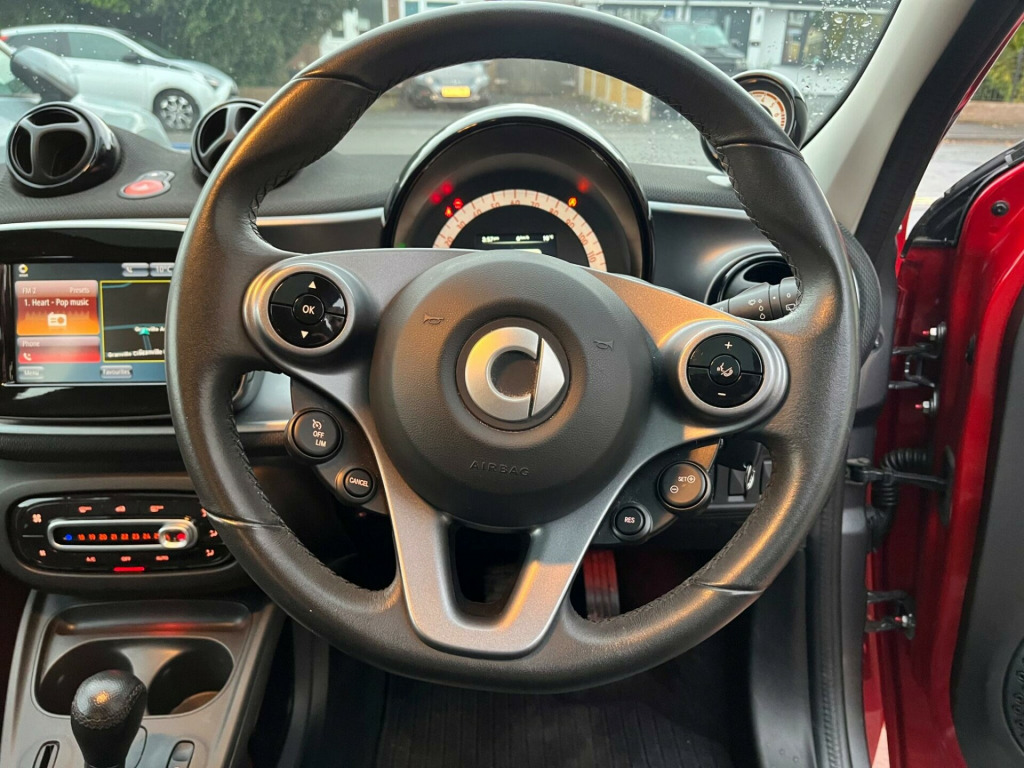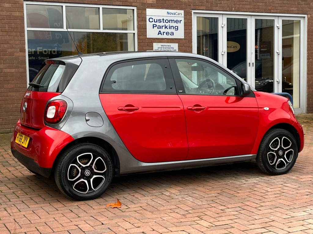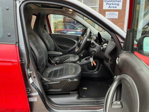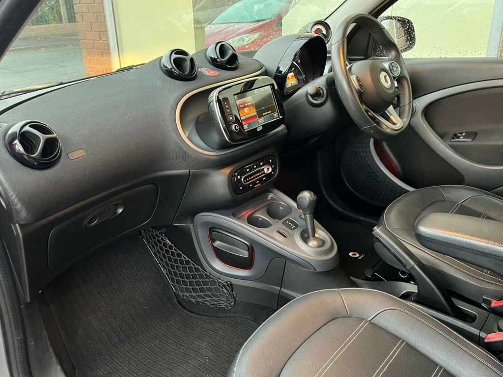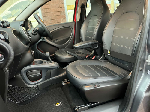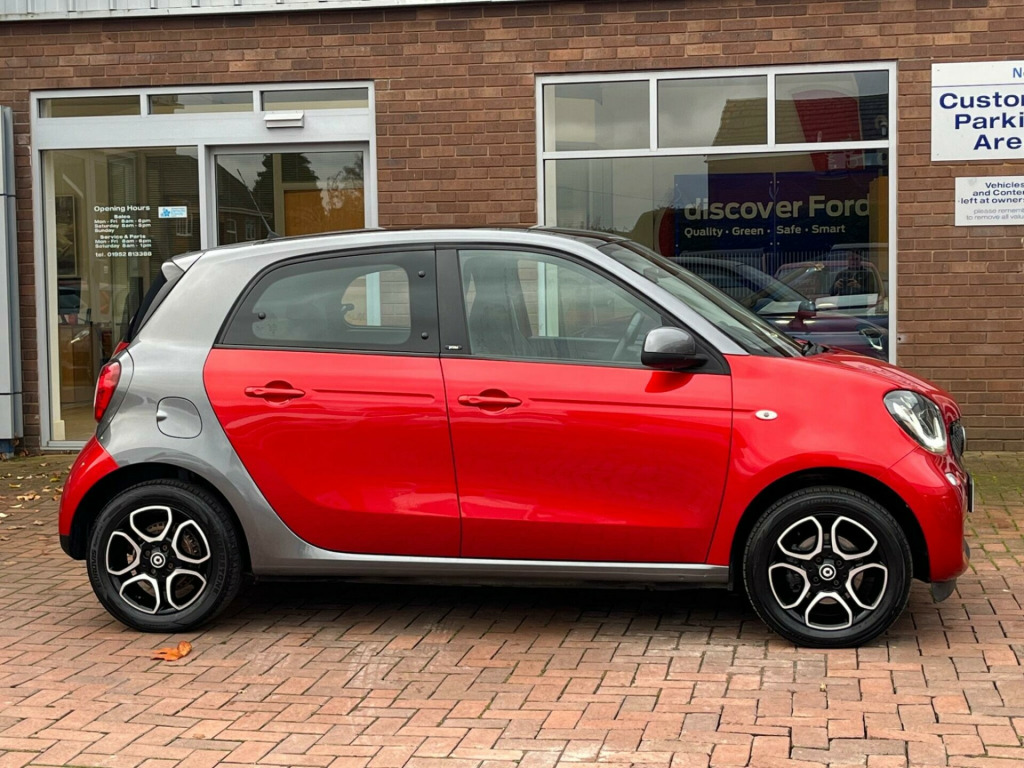 This 2019 Smart forfour T Prime (Premium Plus) is a standout choice, boasting a Euro 6 compliant 0.9L petrol engine for efficient city driving. As a Prime trim model, it comes equipped with a fixed panoramic roof offering a sun protection sunroof, creating a bright and airy cabin. You'll also appreciate the convenience of automatic headlights activated by a rain and light sensor, along with rear view camera parking assistance to make manoeuvring simple. Inside, enjoy the comfort of automatic climate control and heated seats for both the driver and front passenger.This Smart forfour is presented in a low insurance group, making it an economical option for many drivers. The inclusion of features such as the panoramic roof, automatic climate control, and heated seats demonstrates a higher level of specification compared to other vehicles in its class. This particular model offers a well appointed and comfortable driving experience, ideal for navigating urban environments with ease and style.. 12 Volt Socket with Cover, 15in Alloy Wheels - 5-Twin-Spoke Painted in Black with a High-Sheen Finish, 85 Degree Opening Rear Doors, ABS - Anti Lock Braking System, Airbag - Kneebag for Driver, Airbags - Driver and Passenger, Airbags - Sidebags for Driver and Front Passenger - Combined Head and Thorax, Ambient Lighting, Automatic Climate Control, Black Front Grille, Brake Assist, Breakdown Kit with Air Compressor and Sealant, Central Locking with Convenience Closing Features, Central Locking with Radio Remote Control - Visual Locking-Verification Signal, Centre Console with Pull-Out Tray and Double Cup Holder, Comfort Package, Crash Sensor for Activation of Hazard Warning Lights, Crosswind Assist, Cruise Control with Speedtronic Variable Speed Limiter, Dashboard Instruments with Cockpit Clock and Rev Counter, Dashboard and Door Centre Panel - Black Fabric, Direct-Steer System with Speed Sensitve Power Assistance and Variable Steering Ratio, Door Mirror Caps in Tridion Colour, Door Mirror with Aspherically Curved Mirror Glass on Driver Side, Drive Lock - Automatic Door Locking when the Vehicle is in Motion, ESP - Electronic Stability Programme, Electric Windows, Folding Key, Front Fog Lamps with Cornering Function, Gearshift Lever - Trimmed Leather, Grab Handle for Front Passenger, Headlights with LED Light Guide, Heated Seats for Driver and Front Passenger, Hill Start Assist, ISOFIX Child Seat Attachment Points on Rear Seats, Inside Door Opener - Matt Chrome, Instrument Cluster with Multi Functional Colour 3.5in Display, Interior Lighting, LED Daytime Running Lights, LED Tail Lights in Semi-LED Technology, Load-Lashing Eyes in Luggage Compartment, Lockable Glove Compartment, Lockable Service Bonnet, Luggage Compartment Cover, Luggage Compartment Lighting, MirrorLink, Onboard Computer, Outside Temperature Display with Frost Warning, Painted Door Handles, Panoramic Roof with Sun Protection, Parking Assistance - Rear, Parking Assistance - Rear View Camera, Passenger Seat with Through - Loading Function - Flat-Folding Seatback, Pedestrian Impact Protection Front and Side, Pre-Installation for Tablet Holder, Radiator Trim - Black, Rain - Light sensor, Readyspace Seats at Rear with Removable Cargo Box, Rear Seats - Backrest 50:50 Split with Cargo Position, Rear Spoiler, Rear Windscreen - Heated with Timer Control, Rear Windscreen Wiper with Intermittent Wiper and Automatic Wipe - Wash Function, Seat Belt Reminder for Driver and Passenger, Seat Belts - Height Adjustable for Driver and Front Passenger, Seat Belts - Three-Point with Seat Belt Tensioners and Belt Force Limiters, Smart Media-System, Steering Wheel - 3- Spoke Multi-Function - Leather, Storage Compartment in Front Doors, Stowage Space Package, Sunglasses Holder, Third Rear Brake Light, Tridion Safety Cell in Black Solid Paint, Tyre Pressure Monitoring System, Vanity Mirror in Sun Visors with Parking Ticket Holder for Driver and Passenger, White Side Indicators, Perimetric Alarm System, Leather - Black with Grey Stitching.