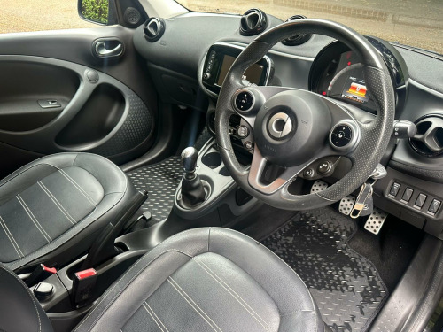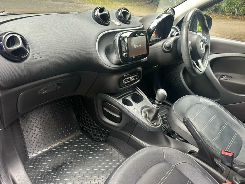 SUPPLIED WITH FULL SERVICE INC TIMING BELT IF REQ! 12 MONTHS MOT! 12 MONTHS FREE AA BREAKDOWN COVER! AND 3 MONTHS PERSONAL PARTS AND LABOUR WARRANTY! We as a garage have been established since 1997 and from the beginning, have always worked hard to provide the best possible service to our customers. One of the key elements of this service is our 3 month personal warranty. It is supplied with the majority of our cars, free of charge and covers any faults which may occur with the car in the first 3 months of purchase! Unlike conventional warranty booklets the warranty is held with us personally. This unique approach guarantees that you receive the best possible service and that the problem is solved conveniently and successfully. 2016 Smart forfour T Prime Sport Night Sky is a standout choice, boasting an impressively low mileage of just 38,000 miles for its age and having been owned by only two previous keepers. Under the bonnet, you'll find an efficient 0.9 litre petrol engine, compliant with Euro 6 emissions standards. This particular Prime Sport Night Sky variant comes equipped with a host of desirable features, including heated seats for both the driver and front passenger, a Cool and Audio Package with automatic climate control and Bluetooth connectivity, and rear parking assistance.This Smart forfour offers excellent running costs, achieving an outstanding fuel economy of 66 miles per gallon, which is a significant advantage over many similar vehicles. Furthermore, its low CO2 emissions and low insurance group rating further contribute to its affordability and appeal. These highlights demonstrate how this Smart forfour provides a more economical and cost effective motoring experience. volt socket with cover, 16in alloy wheels - 8-y-spoke painted black, 85 degree wide opening rear doors, abs - anti lock braking system, airbag - kneebag for driver, airbags - driver and passenger, airbags - sidebags for driver and front passenger - combined head and thorax, automatic climate control, black front grille, brake assist, breakdown kit with air compressor and sealant, brushed stainless steel sports pedals with rubber studs, central locking with convenience closing features, central locking with radio remote control - visual locking-verification signal and folding key, centre console with pull-out tray and double cup holder, cool and audio package with automatic climate control, crash sensor for activation of hazard warning lights, crosswind assist, cruise control with speedtronic variable speed limiter, dashboard instruments with cockpit clock and rev counter, dashboard and door centre panel - black fabric, dashboard and door centre panel fabric and highlights in contrast colour, direct-steer system with speed sensitve power assistance and variable steering ratio, door mirror caps in tridion colour, door mirror with aspherically curved mirror glass on driver side, drive lock - automatic door locking when the vehicle is in motion, esp - electronic stability programme, electric folding top - black fabric, electric windows, exhaust system with chrome plated tailpipe, gearshift lever - trimmed leather, grab handle for front passenger, headlights - h4 halogen, headrests at the rear x 2, heated seats for driver and front passenger, hill start assist, isofix child seat attachment points on rear seats, instrument cluster with multi functional colour 3.5in display, interior door handle - matt chrome, interior lighting, led daytime running lights, load-lashing eyes in luggage compartment, lockable glove compartment, lockable service bonnet, lowered suspension - 10mm, luggage compartment cover, luggage compartment lighting, onboard computer, outside temperature display, painted door handles, passenger seat backrest foldable down for through loading, pedestrian impact protection front and side, pre-installation for ipad cradle on driver and front passenger seat backrest, premium equipment line, radiator trim - black, readyspace seats at rear with removable cargo box, rear seats - backrest 50:50 split with cargo position, rear spoiler, rear windscreen - heated with timer control, rear windscreen wiper with intermittent wiper and automatic wipe - wash function, seat belt reminder for driver and passenger, seat belts - three-point with seat belt tensioners and belt force limiters, solid roof in tridion colour, steering wheel - 3-spoke multi-function-sports-leather, storage compartment in front doors, sunglasses holder, third rear brake light, tridion safety cell in black solid paint, tyre pressure monitoring system, vanity mirror in sun visors with parking ticket holder for driver and passenger, wheel house liners with smart lettering, white side indicators