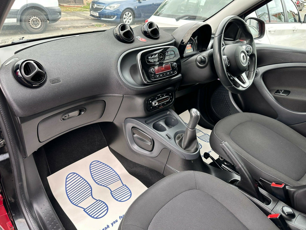 15 MONTHS WARRANTY INCLUDED! 12 MONTHS AA BREAKDOWN COVER INCLUDED, HPI CLEAR WITH REPORT INCLUDED, EXTENDED WARRANTY AVAILABLE FOR UP TO 36 MONTHSDiscover this exceptional 2018 Smart forfour Passion, boasting remarkably low mileage for its age at just 25,188 miles. This Euro 6 compliant 1.0L petrol model offers a smooth and efficient driving experience, perfect for navigating city streets and beyond. The MOT remains valid until June 2026, providing peace of mind for the new owner. Inside, you'll find the convenience of automatic climate control, ensuring a comfortable cabin temperature whatever the weather, complemented by the Cool and Audio Package which includes Bluetooth connectivity for seamless music streaming and hands free calls.This Smart forfour Passion stands out with its impressive fuel economy, achieving an excellent 54 miles per gallon, which is a significant advantage over many other vehicles in its class. Furthermore, its low CO2 emissions contribute to a more environmentally friendly drive. The vehicle also benefits from being in a low insurance group, making it an economical choice for everyday use. With its combination of practicality, efficiency, and desirable features, this Smart forfour represents a sensible and enjoyable motoring option. volt socket with cover, 15in alloy wheels - 8-spoke painted in silver, 85 degree wide opening rear doors, abs - anti lock braking system, airbag - kneebag for driver, airbags - driver and passenger, airbags - sidebags for driver and front passenger - combined head and thorax, automatic climate control, black front grille, brake assist, breakdown kit with air compressor and sealant, central locking with convenience closing features, central locking with radio remote control - visual locking-verification signal and folding key, centre console with pull-out tray and double cup holder, cool and audio package with automatic climate control, crash sensor for activation of hazard warning lights, crosswind assist, cruise control with speedtronic variable speed limiter, dashboard and door centre panel - black fabric, dashboard and door centre panel fabric and highlights in contrast colour, direct-steer system with speed sensitve power assistance and variable steering ratio, door mirror caps in tridion colour, door mirror with aspherically curved mirror glass on driver side, drive lock - automatic door locking when the vehicle is in motion, esp - electronic stability programme, electric windows, exterior mirrors - manually adjustable, gearshift lever - trimmed leather, headlights - h4 halogen, headrests at the rear x 2, hill start assist, isofix child seat attachment points on rear seats, instrument cluster with multi functional colour 3.5in display, interior door handle - matt chrome, interior lighting, led daytime running lights, load-lashing eyes in luggage compartment, lockable glove compartment, lockable service bonnet, luggage compartment cover, luggage compartment lighting, onboard computer, outside temperature display, passenger seat backrest foldable down for through loading, pedestrian impact protection front and side, radiator trim - black, readyspace seats at rear with removable cargo box, rear seats - backrest 50:50 split with cargo position, rear spoiler, rear windscreen - heated with timer control, rear windscreen wiper with intermittent wiper and automatic wipe - wash function, seat belt reminder for driver and passenger, seat belts - three-point with seat belt tensioners and belt force limiters, smart audio-system, solid roof in tridion colour, steering wheel - 3- spoke multi-function - leather, storage compartment in front doors, third rear brake light, tridion safety cell in black solid paint, tyre pressure monitoring system, vanity mirror in sun visors with parking ticket holder for driver and passenger, white side indicators