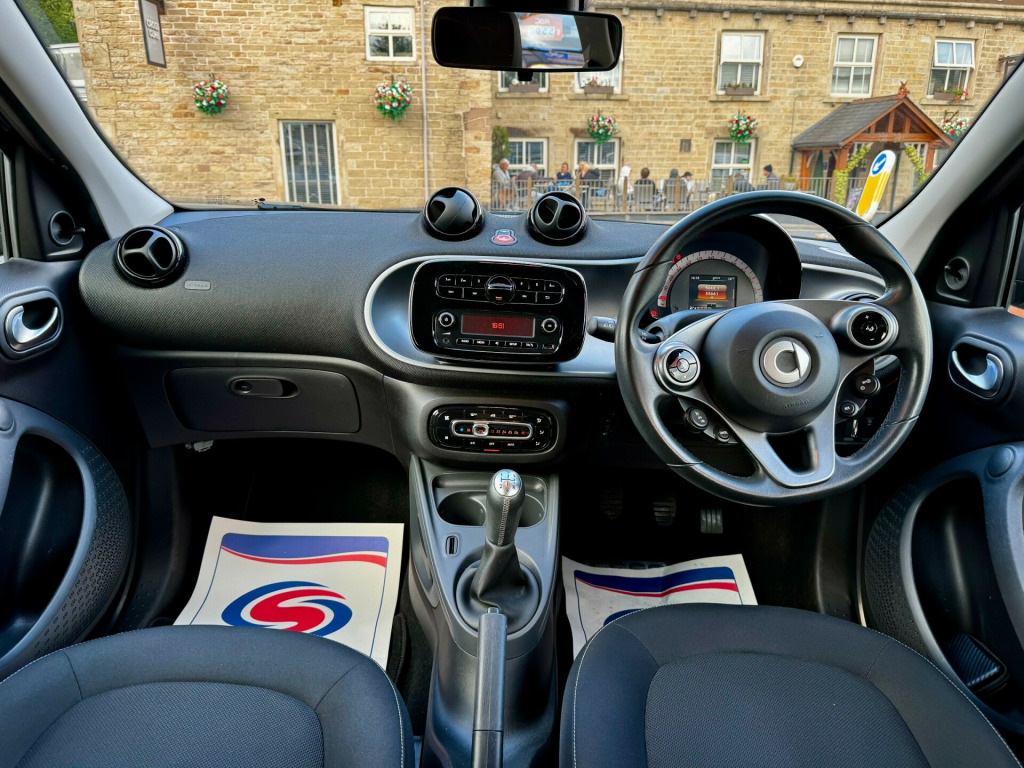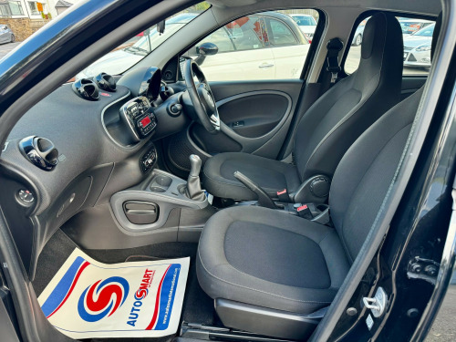 SMART FORFOUR PASSION - ULEZ - GREAT SPEC - BLACK2017 (67) 1.0L Petrol 5-Speed Manual 55,600 Miles Black 5-Door HatchbackA smart and stylish Smart ForFour Passion, perfect for city life and everyday use. Finished in Black, this economical hatchback is ULEZ compliant, cheap to run, and packed with useful features. With space for four passengers and great spec, it's the ideal blend of practicality and fun.Key Features:- 1.0L Petrol Engine - 5-Speed Manual- ULEZ Compliant - Low Running Costs- MOT Valid Until 02/09/2026- Smart Audio System with USB/AUX- 15'' Alloy Wheels- Black Front Grille- 12V Socket with Cover- Breakdown Kit with Air Compressor & Sealant- Electric Windows & Mirrors- Comfortable 4-Seat LayoutPeace of Mind Included:- Fully Serviced & Ready to Go- MOT Supplied with Sale- RAC Warranty Included- 12 Months RAC Breakdown Assistance- Nationwide Delivery Available- Finance Options Available- Part-Exchange WelcomeCall Now to Arrange a Viewing or Test DriveV5 Present - HPI Clear - Drives Really WellCondition commensurate with age and mileage - a clean, practical hatchback with style.www.regalcar.co.uk volt socket with cover, smart audio-system, 15in alloy wheels - 8-spoke painted in silver, black front grille, breakdown kit with air compressor and sealant, door mirror caps in tridion colour, door mirror with aspherically curved mirror glass on driver side, electric windows, painted door handles, radiator trim - black, rear spoiler, rear windscreen - heated with timer control, tridion safety cell in black solid paint, 85 degree opening rear doors, automatic climate control, central locking with convenience closing features, centre console with pull-out tray and double cup holder, dashboard and door centre panel - black fabric, folding key, gearshift lever - trimmed leather, inside door opener - matt chrome, instrument cluster with multi functional colour 3.5in display, interior lighting, load-lashing eyes in luggage compartment, lockable glove compartment, lockable service bonnet, luggage compartment cover, luggage compartment lighting, passenger seat with through - loading function - flat-folding seatback, readyspace seats at rear with removable cargo box, rear seats - backrest 50:50 split with cargo position, seat belts - height adjustable for driver and front passenger, steering wheel - 3- spoke multi-function - leather, storage compartment in front doors, vanity mirror in sun visors with parking ticket holder for driver and passenger, white side indicators, abs - anti lock braking system, airbag - kneebag for driver, airbags - driver and passenger, airbags - sidebags for driver and front passenger - combined head and thorax, brake assist, central locking with radio remote control - visual locking-verification signal, crash sensor for activation of hazard warning lights, crosswind assist, drive lock - automatic door locking when the vehicle is in motion, esp - electronic stability programme, hill start assist, isofix child seat attachment points on rear seats, pedestrian impact protection front and side, rear windscreen wiper with intermittent wiper and automatic wipe - wash function, seat belt reminder for driver and passenger, seat belts - three-point with seat belt tensioners and belt force limiters, cruise control with speedtronic variable speed limiter, direct-steer system with speed sensitve power assistance and variable steering ratio, onboard computer, outside temperature display with frost warning, tyre pressure monitoring system, headlights - h4 halogen, led daytime running lights, third rear brake light