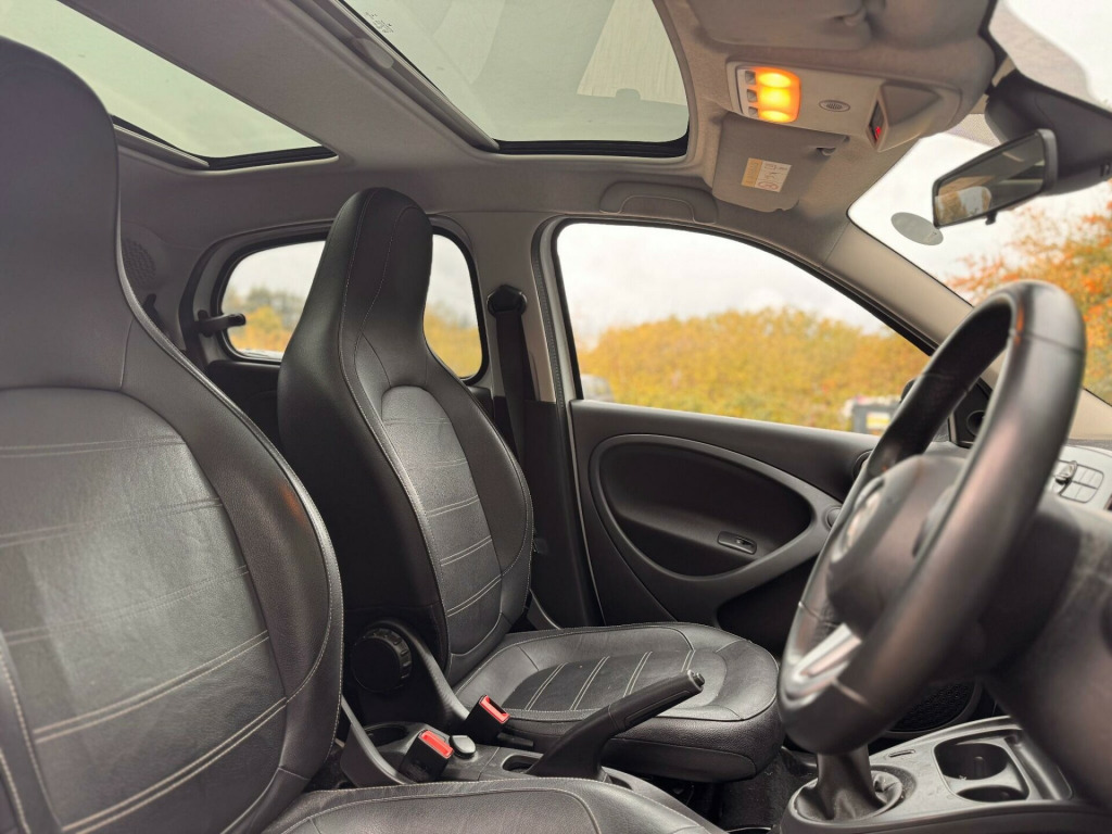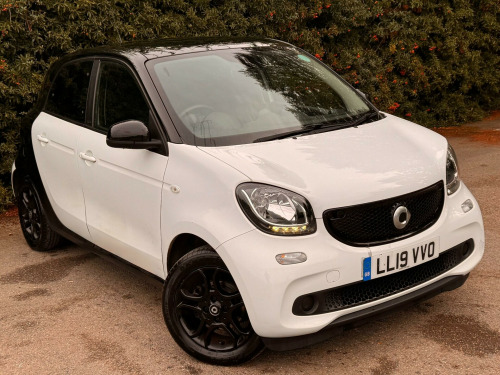 1 FORMER KEEPER FROM NEW - SERVICE HISTORY - HPI CLEAR - MOT TILL JULY 2026 - BLUETOOTH - PAN ROOF - FINANCE AVAILABLE - JUST BEEN SERVICED - ALL PART EXCHANGES ARE WELCOME - OVER 200 CARS IN STOCK - CALL FOR MORE INFORMATION This 2019 Smart forfour Prime offers a superb blend of style and practicality, making it an excellent choice for city driving. Powered by an efficient 1.0 litre petrol engine and meeting Euro 6 emissions standards, this model is designed for economical journeys. Inside, you'll find a comfortable and well equipped cabin featuring heated seats for both the driver and front passenger, ensuring warmth on colder days. Enjoy an airy feel with the panoramic roof, complete with sun protection, and maintain the perfect temperature effortlessly thanks to the automatic climate control.The Smart forfour Prime stands out with its thoughtful features that enhance your driving experience. The inclusion of heated seats and automatic climate control demonstrates a focus on passenger comfort, setting it apart from many other vehicles in its class. Furthermore, its placement in a low insurance group means that running costs are kept to a minimum, offering you peace of mind and affordability. This 2019 Smart forfour Prime is a well rounded vehicle that combines convenience with cost effectiveness. volt socket with cover, 15in alloy wheels - 5-twin-spoke painted in black with a high-sheen finish, 85 degree opening rear doors, abs - anti lock braking system, airbag - kneebag for driver, airbags - driver and passenger, airbags - sidebags for driver and front passenger - combined head and thorax, automatic climate control, black front grille, brake assist, breakdown kit with air compressor and sealant, central locking with convenience closing features, central locking with radio remote control - visual locking-verification signal, centre console with pull-out tray and double cup holder, crash sensor for activation of hazard warning lights, crosswind assist, cruise control with speedtronic variable speed limiter, dashboard instruments with cockpit clock and rev counter, dashboard and door centre panel - black fabric, door mirror caps in tridion colour, door mirror with aspherically curved mirror glass on driver side, door mirrors - electrically adjustable and heated, drive lock - automatic door locking when the vehicle is in motion, esp - electronic stability programme, electric power steering, electric windows, folding key, gearshift lever - trimmed leather, grab handle for front passenger, headlights - h4 halogen, headrests at the rear x 2, heated seats for driver and front passenger, hill start assist, isofix child seat attachment points on rear seats, inside door opener - matt chrome, instrument cluster with multi functional colour 3.5in display, interior lighting, led daytime running lights, load-lashing eyes in luggage compartment, lockable glove compartment, lockable service bonnet, luggage compartment cover, luggage compartment lighting, onboard computer, outside temperature display with frost warning, painted door handles, panoramic roof with sun protection, passenger seat with through - loading function - flat-folding seatback, pedestrian impact protection front and side, pre-installation for ipad cradle on driver and front passenger seat backrest, radiator trim - black, readyspace seats at rear with removable cargo box, rear seats - backrest 50:50 split with cargo position, rear spoiler, rear windscreen - heated with timer control, rear windscreen wiper with intermittent wiper and automatic wipe - wash function, seat belt reminder for driver and passenger, seat belts - three-point with seat belt tensioners and belt force limiters, smart audio-system, steering wheel - 3- spoke multi-function - leather, storage compartment in front doors, sunglasses holder, third rear brake light, tridion safety cell in black solid paint, tyre pressure monitoring system, vanity mirror in sun visors with parking ticket holder for driver and passenger, voice recognition for smartphones with siri and google, white side indicators