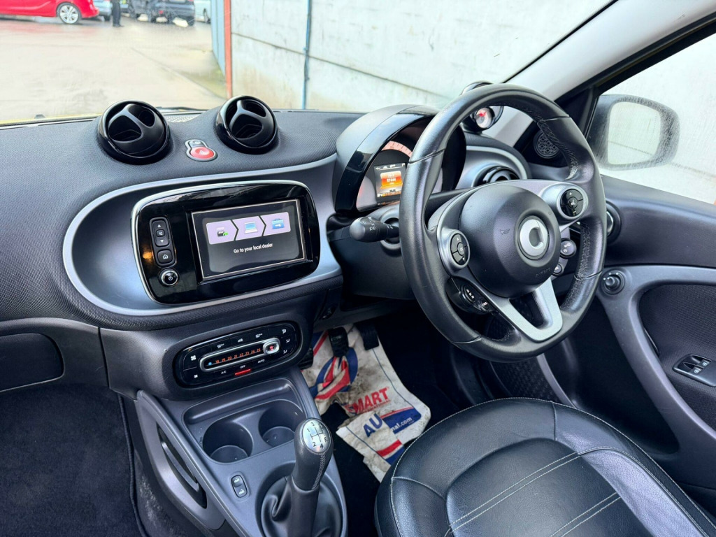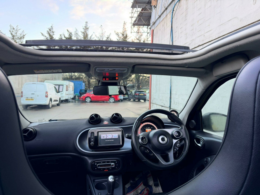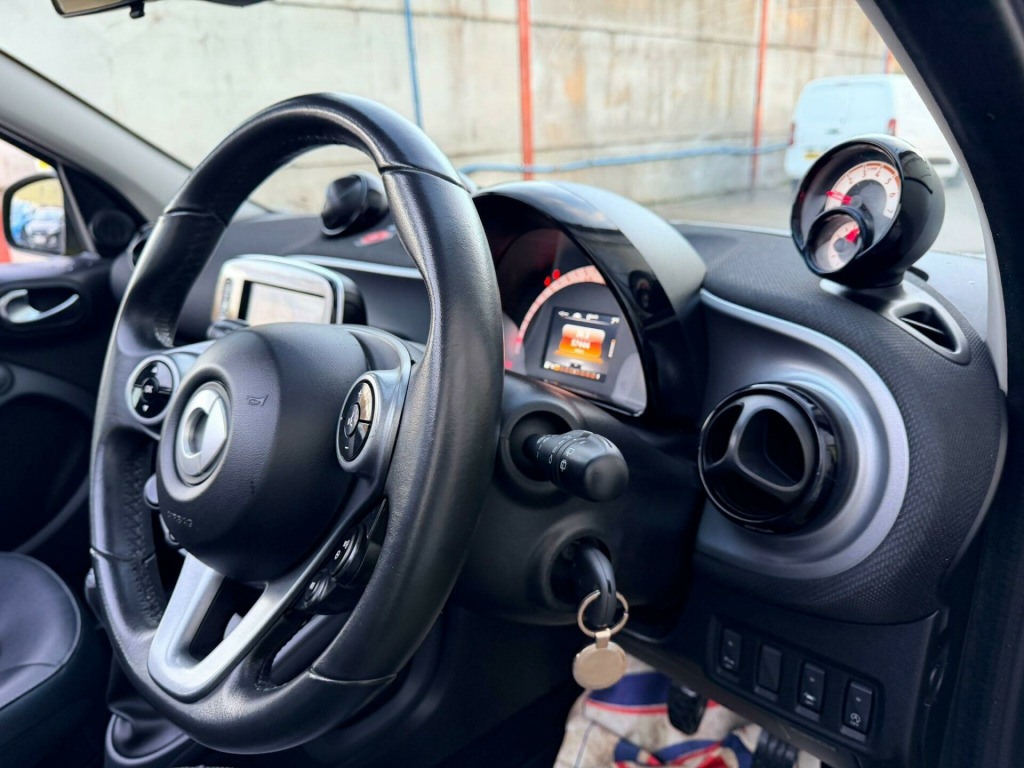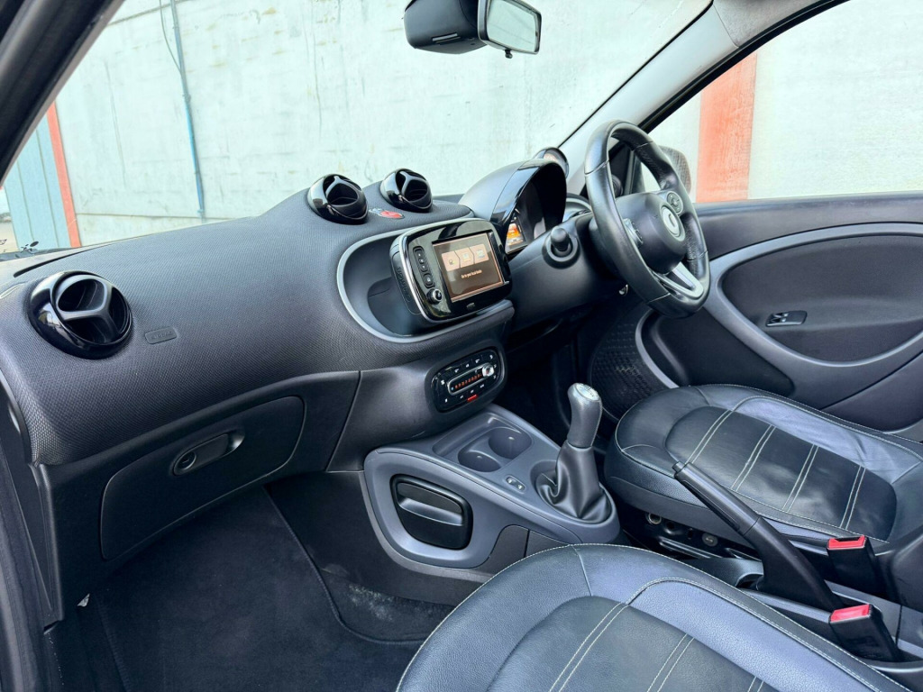 This 2015 Smart forfour Prime Night Sky is a truly exceptional find, having been cherished by only two owners from new. This stylish city car boasts a responsive 1.0 litre petrol engine and meets Euro 6 emissions standards, making it an environmentally conscious choice. Inside, you'll appreciate the comfort of heated front seats and the convenience of automatic climate control. Stay connected and entertained with the Bluetooth hands free system, allowing for phone calls and audio streaming, all while enjoying your favourite stations on the DAB digital radio.The Smart forfour Prime Night Sky offers significant advantages over other vehicles in its class. Its impressive fuel economy of 67 mpg means fewer trips to the petrol station and more money in your pocket. Furthermore, its low insurance group rating makes it an affordable option for many drivers, and its low CO2 emissions contribute to a reduced environmental impact. This combination of efficiency, affordability, and thoughtful features makes this Smart forfour a standout choice.. 12 Volt Socket with Cover, 15in Alloy Wheels - 5-Twin-Spoke Painted in Black with a High-Sheen Finish, 7in Capacitive Multi-Touch Display, 85 Degree Wide Opening Rear Doors, ABS - Anti Lock Braking System, Airbag - Full Size Driver, Airbag - Full Size Passenger, Airbag - Kneebag for Driver, Airbag - Side for Head-Thorax, Airbag - Sidebags, Anti-Theft Alarm System, Audio Streaming Via Bluetooth Module, Automatic Climate Control, Automatic Hill Start Assist on Uphill Slopes, Aux-USB, Bluetooth Hands-Free System, Breakdown Kit, Central Locking with Radio Remote Control, Centre Console with Pull-Out Tray, Comfort Pack, Crash Sensor Auto Switch-On of Hazard Warning Lights, Crosswind Assist, Cruise Control with Speedtronic Variable Speed Limiter, Cup Holder x 2, Dashboard Instruments with Cockpit Clock and Rev Counter, Dashboard and Door Centre Panel - Black Fabric - Black-Grey Highlights, Direct-Steer System with Speed Sensitve Power Assistance and Variable Steering Ratio, Door Mirror Caps in Tridion Colour, Door Mirror with Aspherically Curved Mirror Glass on Driver Side, Door Mirrors - Electrically Adjustable and Heated, Drive Lock - Automatic Door Locking when the Vehicle is in Motion, Drivers Seat - Height Adjustable, ESP - Electronic Stability Programme, Electric Folding Top - Black Fabric, Electric Windows, Gearshift Lever - Trimmed Leather, Grab Handle for Front Passenger, Headlights - H4 Halogen, Headrests at the Rear x 2, Hydraulic Brake Assist, ISOFIX Child Seat Attachment Points on Rear Seats, Immobiliser, Instrument Cluster with Multi Functional Colour 3.5in Display, Interior Door Handle - Matt Chrome, LED Daytime Running Lights, Lane-Keeping Assist with Acoustic and Optical Warning, Load-Lashing Eyes in Luggage Compartment, Lockable Glove Compartment, Lockable Service Bonnet, Luggage Compartment Cover, Luggage Compartment Lighting, Outside Temperature Display, Painted Door Handles, Painted Front Grille, Parking Assistance - Rear, Passenger Seat Backrest Foldable Down For Through Loading, Pedestrian Impact Protection Front and Side, Pollen Filter, Premium Package, Radiator Trim - Black, Radio - AM-FM, Reading Light for Driver and Passenger, Readyspace Seats at Rear with Removable Cargo Box, Rear Seats - Backrest 50:50 Split with Cargo Position, Rear Spoiler, Rear Windscreen - Heated with Timer Control, Rear Windscreen Wiper with Intermittent Wiper and Automatic Wipe - Wash Function, Satellite Navigation - Whole of Europe Including 3 Live Services - Individually Extendable Thereafter, Seat Belt Reminder for Driver and Passenger, Seats - Heated Front, Smart Media-System, Speakers x4, Steering Wheel - 3 Spoke-Leather, Steering Wheel - Height Adjustable, Steering Wheel - Multifunction, Storage Compartment in Front Doors, Sunglasses Holder, Third Rear Brake Light, Ticket Holder, Tridion Safety Cell in Black Solid Paint, Trip Computer, Tyre Pressure Monitoring System, Vanity Mirror in Sunvisor, Voice Control, White Side Indicators, DAB - Digital Radio.