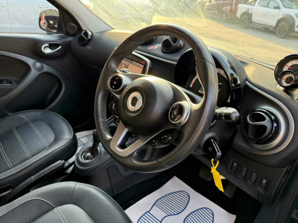 This 2016 Smart forfour Prime Night Sky presents an exceptional ownership proposition with only two previous owners and a remarkably low mileage of 37,000 miles. This Euro 6 compliant 1.0 litre petrol model boasts a clear vehicle history check, offering peace of mind. Inside, you'll find comfortable heated front seats, perfect for cooler mornings, and a convenient Bluetooth hands-free system for seamless audio streaming and calls. Parking is made easier with rear parking assistance, and the automatic climate control ensures a pleasant cabin temperature in all conditions.The Smart forfour Prime Night Sky stands out with its impressive fuel economy, achieving an excellent 67 miles per gallon, which indicates it is more economical than many similar vehicles. Furthermore, its low CO2 emissions and low insurance group highlight its cost effectiveness for everyday driving. This combination of efficient performance, desirable features, and strong provenance makes this Smart forfour a compelling choice.  volt socket with cover, 15in alloy wheels - 5-twin-spoke painted in black with a high-sheen finish, 7in capacitive multi-touch display, 85 degree wide opening rear doors, abs - anti lock braking system, airbag - full size driver, airbag - full size passenger, airbag - kneebag for driver, airbag - side for head-thorax, airbag - sidebags, audio streaming via bluetooth module, automatic climate control, automatic hill start assist on uphill slopes, aux-usb, bluetooth hands-free system, breakdown kit, central locking with convenience closing features, central locking with radio remote control, centre console with pull-out tray, comfort pack, crash sensor auto switch-on of hazard warning lights, crosswind assist, cruise control with speedtronic variable speed limiter, cup holder x 2, dashboard instruments with cockpit clock and rev counter, dashboard and door centre panel - black fabric, dashboard and door centre panel highlights in contrast colour, direct-steer system with speed sensitve power assistance and variable steering ratio, door mirror caps in tridion colour, door mirror with aspherically curved mirror glass on driver side, door mirrors - electrically adjustable and heated, drive lock - automatic door locking when the vehicle is in motion, drivers seat - height adjustable, esp - electronic stability programme, electric folding top - black fabric, electric windows, gearshift lever - trimmed leather, grab handle for front passenger, headlights - h4 halogen, headrests at the rear x 2, hydraulic brake assist, isofix child seat attachment points on rear seats, immobiliser, instrument cluster with multi functional colour 3.5in display, interior door handle - matt chrome, key - folding, led daytime running lights, load-lashing eyes in luggage compartment, lockable glove compartment, lockable service bonnet, luggage compartment cover, luggage compartment lighting, mirrorlink, outside temperature display, painted door handles, parking assistance - rear, passenger seat backrest foldable down for through loading, pedestrian impact protection front and side, pollen filter, pre-installation for ipad cradle on driver and front passenger seat backrest, premium package, radiator trim - black, radio - am-fm, reading light for driver and passenger, readyspace seats at rear with removable cargo box, rear seats - backrest 50:50 split with cargo position, rear spoiler, rear windscreen - heated with timer control, rear windscreen wiper with intermittent wiper and automatic wipe - wash function, satellite navigation - whole of europe including 3 live services - individually extendable thereafter, seat belt reminder for driver and passenger, seat belts - height adjustable for driver and front passenger, seat belts with belt tensioners and belt force limiters, seats - heated front, smart cross connect app, smart media-system, smartphone cradle, speakers x4, steering wheel - 3 spoke-leather, steering wheel - height adjustable, steering wheel - multifunction, storage compartment in front doors, sunglasses holder, third rear brake light, ticket holder, tridion safety cell in black solid paint, trip computer, tyre pressure monitoring system, vanity mirror in sunvisor, visual locking verification signal, voice control, white side indicators
