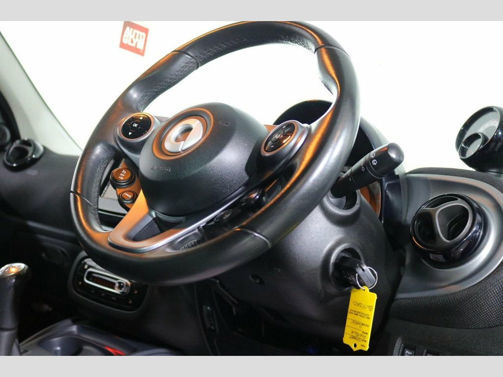 AWB Motors are pleased to present this stunning Smart ForFour finished in Black complemented by ALLOY WHEELS, PANORAMIC GLASS ROOF and Front Fog Lights. Sit in complete luxury with HEATED LEATHER Interior. At the heart of the dash is a TOUCHSCREEN Display. Make your calls handsfree using the BLUETOOTH Interface. Charge your phone using the USB port. Perfect for listening to your favourite music either from your phone through the AUX Port or simply using the DAB Radio. These alongside all other radio functions can be controlled using the Multifunction Steering Wheel. Park with ease thanks to PARKING CAMERA with PARKING SENSORS Fitted. Drive in comfort whatever the journey with both CRUISE CONTROL and CLIMATE CONTROL with AIR CONDITIONING. Safe for your children with ISOFIX Anchorage Points. Other useful ancillaries include Auto Lights and Wipers, Electric Mirrors, Electric Windows and Remote Central Locking. Cheap to run being LOW INSURANCE GROUP and thanks to its Fuel Efficient Engine Engine achieving 50+MPG. Buy with confidence as it has been maintained very well with 5 STAMP SERVICE HISTORY 12 Volt Socket with Cover, 15in Alloy Wheels - 5-Twin-Spoke Painted, 85 Degree Wide Opening Rear Doors, ABS - Anti Lock Braking System, Airbag - Kneebag for Driver, Airbags - Driver and Passenger, Airbags - Sidebags for Driver and Front , Automatic Climate Control, Black Front Grille, Brake Assist, Breakdown Kit with Air Compressor and Se, Central Locking with Convenience Closing, Central Locking with Radio Remote Contro, Centre Console with Pull-Out Tray and Do, Cool and Audio Package with Automatic Cl, Crash Sensor for Activation of Hazard Wa, Crosswind Assist, Cruise Control with Speedtronic Variable, Dashboard Instruments with Cockpit Clock, Dashboard and Door Centre Panel - Black , Dash