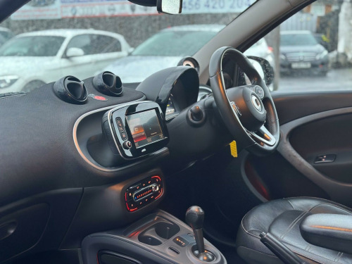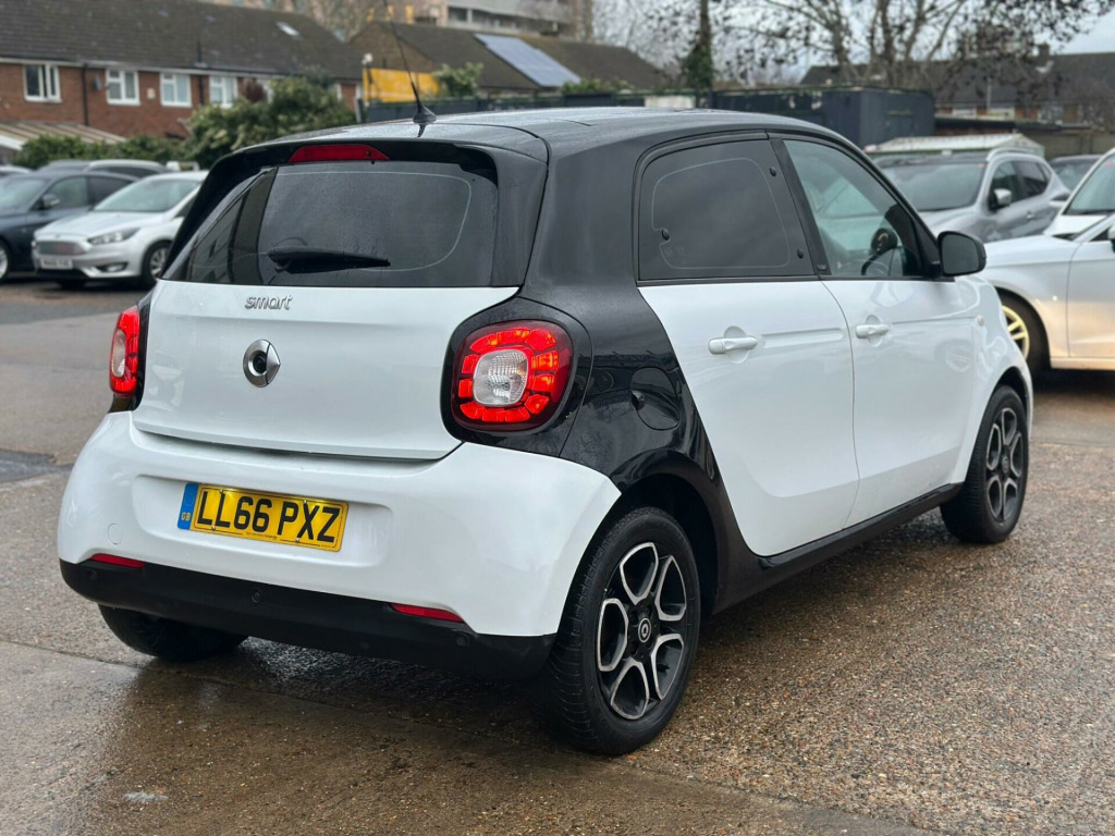 Discover this 2016 Smart forfour Prime, a stylish and practical city car that offers an exceptional ownership experience. This particular model boasts a Euro 6 compliant 1.0 litre petrol engine, ensuring it meets modern environmental standards. It comes equipped with a suite of convenient features designed to make driving easier, including rear parking assistance with sensors and a rear view camera, a Bluetooth hands free system for seamless phone connectivity, audio streaming via Bluetooth, and automatic headlights for enhanced visibility.This Smart forfour Prime stands out with its impressive fuel economy, achieving a remarkable 67 miles per gallon, which indicates it is more economical than many other vehicles in its class. Furthermore, its low insurance group rating suggests that running costs will be kept to a minimum, making it an affordable choice. The low CO2 emissions also highlight its environmental credentials, positioning it as a responsible and efficient option for your motoring needs. ivacy glass, 12 volt socket with cover, 15in alloy wheels - 5-twin-spoke painted in black with a high-sheen finish, 7in capacitive multi-touch display, 85 degree wide opening rear doors, abs - anti lock braking system, airbag - full size driver, airbag - full size passenger, airbag - kneebag for driver, airbag - side for head-thorax, airbag - sidebags, ambient lighting - centre console, ambient lighting - door trim, ambient lighting - footwell, audio streaming via bluetooth module, automatic climate control, automatic hill start assist on uphill slopes, aux-usb, bluetooth hands-free system, breakdown kit, central locking with convenience closing features, central locking with radio remote control, centre console with pull-out tray, comfort pack, coming home function, crash sensor auto switch-on of hazard warning lights, crosswind assist, cruise control with speedtronic variable speed limiter, cup holder x 2, dashboard instruments with cockpit clock and rev counter, dashboard and door centre panel - black fabric, dashboard and door centre panel highlights in contrast colour, daytime running lights - fibre optic, direct-steer system with speed sensitve power assistance and variable steering ratio, direction indicators integrated into front bumper below headlights, door mirror caps in tridion colour, door mirror with aspherically curved mirror glass on driver side, door mirrors - electrically adjustable and heated, drive lock - automatic door locking when the vehicle is in motion, drivers seat - height adjustable, esp - electronic stability programme, electric windows, front fog lights, gearshift lever - trimmed leather, grab handle for front passenger, headlight - automatic, headlights - h4 halogen, headlights with led light guide, headrests at the rear x 2, hydraulic brake assist, isofix child seat attachment points on rear seats, immobiliser, instrument cluster with multi functional colour 3.5in display, interior door handle - matt chrome, key - folding, led daytime running lights, load-lashing eyes in luggage compartment, lockable glove compartment, lockable service bonnet, luggage compartment cover, luggage compartment lighting, mirrorlink, outside temperature display, painted door handles, panoramic roof with sun protection, parking assistance - rear, parking assistance - rear view camera, passenger seat backrest foldable down for through loading, pedestrian impact protection front and side, pollen filter, pre-installation for ipad cradle on driver and front passenger seat backrest, premium package, premium plus package, radiator trim - black, radio - am-fm, rain sensing windscreen wipers, reading light for driver and passenger, readyspace seats at rear with removable cargo box, rear seats - backrest 50:50 split with cargo position, rear spoiler, rear windscreen - heated with timer control, rear windscreen wiper with intermittent wiper and automatic wipe - wash function, satellite navigation - whole of europe including 3 live services - individually extendable thereafter, seat belt reminder for driver and passenger, seat belts - height adjustable for driver and front passenger, seat belts with belt tensioners and belt force limiters, seats - heated front, smart cross connect app, smart media-system, smartphone cradle, speakers x4, steering wheel - 3 spoke-leather, steering wheel - height adjustable, steering wheel - multifunction, storage compartment in front doors, sunglasses holder, tail lights - led, third rear brake light, ticket holder, tridion safety cell in black solid paint, trip computer, tyre pressure monitoring system, vanity mirror in sunvisor, visual locking verification signal, voice control, white side indicators