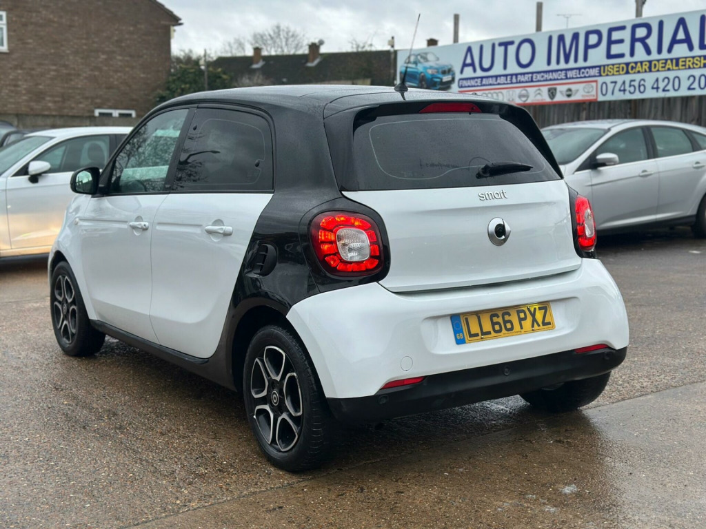 Discover this 2016 Smart forfour Prime, a stylish and practical city car that offers an exceptional ownership experience. This particular model boasts a Euro 6 compliant 1.0 litre petrol engine, ensuring it meets modern environmental standards. It comes equipped with a suite of convenient features designed to make driving easier, including rear parking assistance with sensors and a rear view camera, a Bluetooth hands free system for seamless phone connectivity, audio streaming via Bluetooth, and automatic headlights for enhanced visibility.This Smart forfour Prime stands out with its impressive fuel economy, achieving a remarkable 67 miles per gallon, which indicates it is more economical than many other vehicles in its class. Furthermore, its low insurance group rating suggests that running costs will be kept to a minimum, making it an affordable choice. The low CO2 emissions also highlight its environmental credentials, positioning it as a responsible and efficient option for your motoring needs.. 12 Volt Socket with Cover, 15in Alloy Wheels - 5-Twin-Spoke Painted in Black with a High-Sheen Finish, 7in Capacitive Multi-Touch Display, 85 Degree Wide Opening Rear Doors, ABS - Anti Lock Braking System, Airbag - Full Size Driver, Airbag - Full Size Passenger, Airbag - Kneebag for Driver, Airbag - Side for Head-Thorax, Airbag - Sidebags, Ambient Lighting - Centre Console, Ambient Lighting - Door Trim, Ambient Lighting - Footwell, Audio Streaming Via Bluetooth Module, Automatic Climate Control, Automatic Hill Start Assist on Uphill Slopes, Aux-USB, Bluetooth Hands-Free System, Breakdown Kit, Central Locking with Convenience Closing Features, Central Locking with Radio Remote Control, Centre Console with Pull-Out Tray, Comfort Pack, Coming Home Function, Crash Sensor Auto Switch-On of Hazard Warning Lights, Crosswind Assist, Cruise Control with Speedtronic Variable Speed Limiter, Cup Holder x 2, Dashboard Instruments with Cockpit Clock and Rev Counter, Dashboard and Door Centre Panel - Black Fabric, Dashboard and Door Centre Panel Highlights in Contrast Colour, Daytime Running Lights - Fibre Optic, Direct-Steer System with Speed Sensitve Power Assistance and Variable Steering Ratio, Direction Indicators Integrated into Front Bumper Below Headlights, Door Mirror Caps in Tridion Colour, Door Mirror with Aspherically Curved Mirror Glass on Driver Side, Door Mirrors - Electrically Adjustable and Heated, Drive Lock - Automatic Door Locking when the Vehicle is in Motion, Drivers Seat - Height Adjustable, ESP - Electronic Stability Programme, Electric Windows, Front Fog Lights, Gearshift Lever - Trimmed Leather, Grab Handle for Front Passenger, Headlight - Automatic, Headlights - H4 Halogen, Headlights with LED Light Guide, Headrests at the Rear x 2, Hydraulic Brake Assist, ISOFIX Child Seat Attachment Points on Rear Seats, Immobiliser, Instrument Cluster with Multi Functional Colour 3.5in Display, Interior Door Handle - Matt Chrome, Key - Folding, LED Daytime Running Lights, Load-Lashing Eyes in Luggage Compartment, Lockable Glove Compartment, Lockable Service Bonnet, Luggage Compartment Cover, Luggage Compartment Lighting, MirrorLink, Outside Temperature Display, Painted Door Handles, Panoramic Roof with Sun Protection, Parking Assistance - Rear, Parking Assistance - Rear View Camera, Passenger Seat Backrest Foldable Down For Through Loading, Pedestrian Impact Protection Front and Side, Pollen Filter, Pre-installation for iPad Cradle on Driver and Front Passenger Seat Backrest, Premium Package, Premium Plus Package, Radiator Trim - Black, Radio - AM-FM, Rain Sensing Windscreen Wipers, Reading Light for Driver and Passenger, Readyspace Seats at Rear with Removable Cargo Box, Rear Seats - Backrest 50:50 Split with Cargo Position, Rear Spoiler, Rear Windscreen - Heated with Timer Control, Rear Windscreen Wiper with Intermittent Wiper and Automatic Wipe - Wash Function, Satellite Navigation - Whole of Europe Including 3 Live Services - Individually Extendable Thereafter, Seat Belt Reminder for Driver and Passenger, Seat Belts - Height Adjustable for Driver and Front Passenger, Seat Belts with Belt Tensioners and Belt Force Limiters, Seats - Heated Front, Smart Cross Connect App, Smart Media-System, Smartphone Cradle, Speakers x4, Steering Wheel - 3 Spoke-Leather, Steering Wheel - Height Adjustable, Steering Wheel - Multifunction, Storage Compartment in Front Doors, Sunglasses Holder, Tail Lights - LED, Third Rear Brake Light, Ticket Holder, Tridion Safety Cell in Black Solid Paint, Trip Computer, Tyre Pressure Monitoring System, Vanity Mirror in Sunvisor, Visual Locking Verification Signal, Voice Control, White Side Indicators, Privacy Glass.