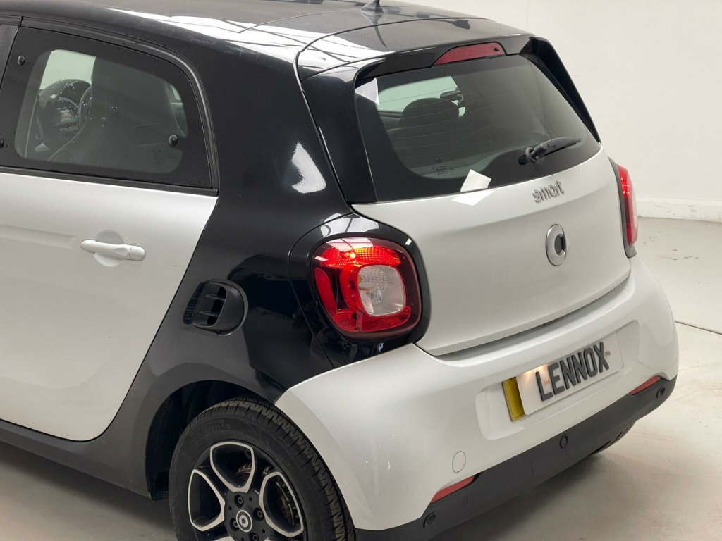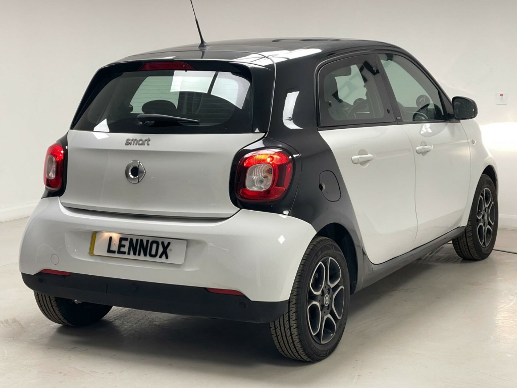 Discover this 2017 Smart forfour Prime, a vehicle boasting exceptionally low mileage for its age, having covered just 39,134 miles. This Euro 6 compliant 1.0 litre petrol model offers a premium driving experience, enhanced by its Prime trim level. Inside, you'll find a host of desirable features designed for comfort and convenience, including a panoramic roof with sun protection, heated seats for both the driver and front passenger, and a cool and audio package complete with Bluetooth and automatic climate control. Further adding to its appeal are rear parking sensors, all part of the premium equipment line.This Smart forfour Prime stands out with its impressive fuel economy, achieving a remarkable 67 miles per gallon, which indicates it is more economical than many similar vehicles. Its low CO2 emissions also mean it is kinder to the environment. Furthermore, its low insurance group rating suggests that running costs will be kept to a minimum, making this a sensible and appealing choice for many drivers. volt socket with cover, 15in alloy wheels - 5-twin-spoke painted in black with a high-sheen finish, 85 degree wide opening rear doors, abs - anti lock braking system, airbag - kneebag for driver, airbags - driver and passenger, airbags - sidebags for driver and front passenger - combined head and thorax, automatic climate control, black front grille, brake assist, breakdown kit with air compressor and sealant, central locking with convenience closing features, central locking with radio remote control - visual locking-verification signal and folding key, centre console with pull-out tray and double cup holder, cool and audio package with automatic climate control, crash sensor for activation of hazard warning lights, crosswind assist, cruise control with speedtronic variable speed limiter, dashboard instruments with cockpit clock and rev counter, dashboard and door centre panel - black fabric, dashboard and door centre panel fabric and highlights in contrast colour, direct-steer system with speed sensitve power assistance and variable steering ratio, door mirror caps in tridion colour, door mirror with aspherically curved mirror glass on driver side, drive lock - automatic door locking when the vehicle is in motion, esp - electronic stability programme, electric windows, gearshift lever - trimmed leather, grab handle for front passenger, headlights - h4 halogen, headrests at the rear x 2, heated seats for driver and front passenger, hill start assist, isofix child seat attachment points on rear seats, instrument cluster with multi functional colour 3.5in display, interior door handle - matt chrome, interior lighting, led daytime running lights, load-lashing eyes in luggage compartment, lockable glove compartment, lockable service bonnet, luggage compartment cover, luggage compartment lighting, onboard computer, outside temperature display, painted door handles, panoramic roof with sun protection, passenger seat backrest foldable down for through loading, pedestrian impact protection front and side, pre-installation for ipad cradle on driver and front passenger seat backrest, premium equipment line, radiator trim - black, readyspace seats at rear with removable cargo box, rear seats - backrest 50:50 split with cargo position, rear spoiler, rear windscreen - heated with timer control, rear windscreen wiper with intermittent wiper and automatic wipe - wash function, seat belt reminder for driver and passenger, seat belts - three-point with seat belt tensioners and belt force limiters, solid roof in tridion colour, steering wheel - 3- spoke multi-function - leather, storage compartment in front doors, sunglasses holder, third rear brake light, tridion safety cell in black solid paint, tyre pressure monitoring system, vanity mirror in sun visors with parking ticket holder for driver and passenger, white side indicators