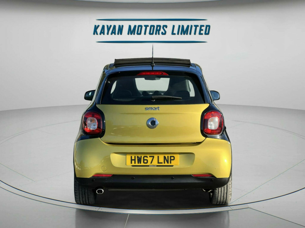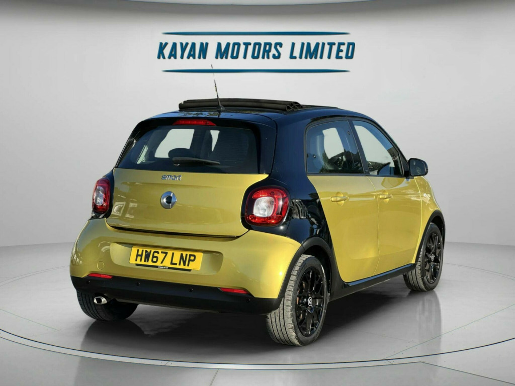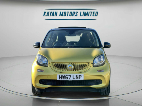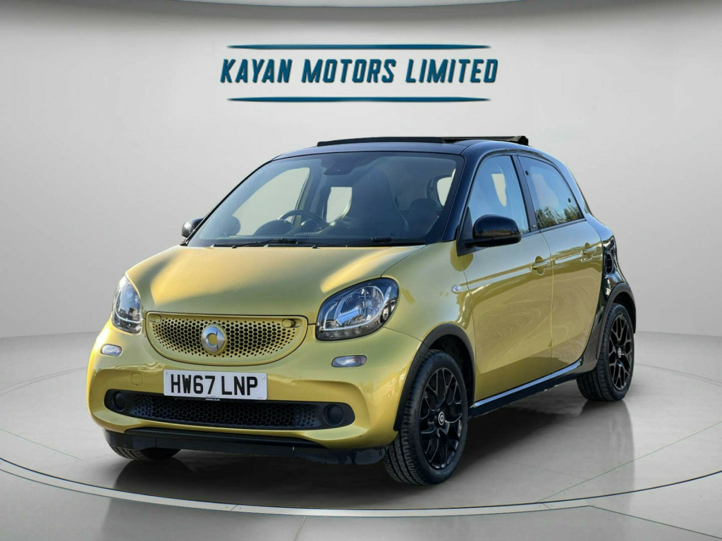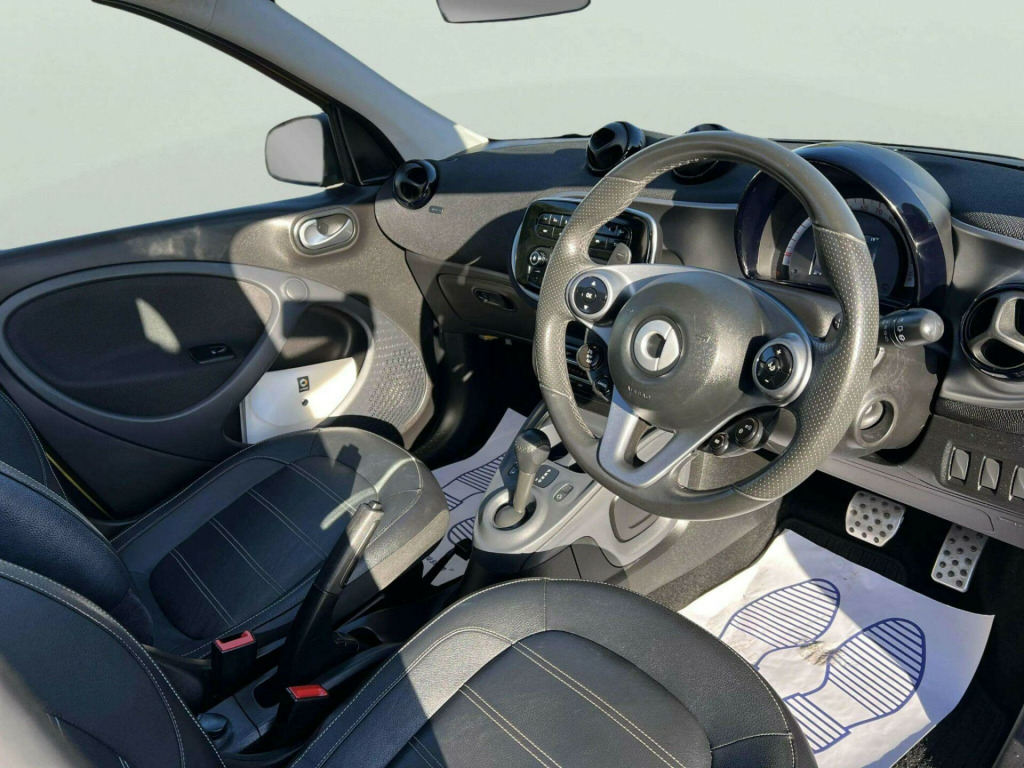 ------PART/EXCHANGE WELCOME. NATIONWIDE WIDE DELIVERY. -----,HPI CLEAR, ULEZ COMPLIANCE, FULL-SERVICE HISTORY, AND 1 YEAR FREE WARRANTY FOR YOUR PEACE OF MIND.=================With an exceptionally low mileage of just 19,456 miles for its age, this 2017 Smart forfour Prime Sport Night Sky presents a remarkable find. This Euro 6 compliant 1.0 litre petrol model is offered with a 12 month warranty and an MOT valid until February 2026, ensuring peace of mind. A clear vehicle history check confirms its sound provenance. Inside, you'll appreciate the comfort of heated seats for both the driver and front passenger, alongside the Smart Audio System which includes Bluetooth connectivity. The Cool and Audio Package further enhances your journey with automatic climate control, ensuring a pleasant cabin temperature no matter the weather.This Smart forfour stands out with its impressive fuel economy, achieving a remarkable 67 miles per gallon, which indicates it is more economical than many similar vehicles. Furthermore, its low insurance group and low CO2 emissions highlight its cost effectiveness and environmental consideration, making it an attractive choice for a wide range of drivers. volt socket with cover, 16in alloy wheels - 8-y-spoke painted black, 85 degree wide opening rear doors, abs - anti lock braking system, airbag - kneebag for driver, airbags - driver and passenger, airbags - sidebags for driver and front passenger - combined head and thorax, automatic climate control, black front grille, brake assist, breakdown kit with air compressor and sealant, brushed stainless steel sports pedals with rubber studs, central locking with convenience closing features, central locking with radio remote control - visual locking-verification signal and folding key, centre console with pull-out tray and double cup holder, cool and audio package with automatic climate control, crash sensor for activation of hazard warning lights, crosswind assist, cruise control with speedtronic variable speed limiter, dashboard instruments with cockpit clock and rev counter, dashboard and door centre panel - black fabric, dashboard and door centre panel fabric and highlights in contrast colour, direct-steer system with speed sensitve power assistance and variable steering ratio, door mirror caps in tridion colour, door mirror with aspherically curved mirror glass on driver side, drive lock - automatic door locking when the vehicle is in motion, esp - electronic stability programme, electric folding top - black fabric, electric windows, exhaust system with chrome plated tailpipe, exterior mirrors - manually adjustable, gearshift lever - trimmed leather, grab handle for front passenger, headlights - h4 halogen, headrests at the rear x 2, heated seats for driver and front passenger, hill start assist, isofix child seat attachment points on rear seats, instrument cluster with multi functional colour 3.5in display, interior door handle - matt chrome, interior lighting, led daytime running lights, load-lashing eyes in luggage compartment, lockable glove compartment, lockable service bonnet, lowered suspension - 10mm, luggage compartment cover, luggage compartment lighting, onboard computer, outside temperature display, painted door handles, passenger seat backrest foldable down for through loading, pedestrian impact protection front and side, pre-installation for ipad cradle on driver and front passenger seat backrest, radiator trim - black, readyspace seats at rear with removable cargo box, rear seats - backrest 50:50 split with cargo position, rear spoiler, rear windscreen - heated with timer control, rear windscreen wiper with intermittent wiper and automatic wipe - wash function, seat belt reminder for driver and passenger, seat belts - three-point with seat belt tensioners and belt force limiters, smart audio-system, solid roof in tridion colour, steering wheel - 3-spoke multi-function-sports-leather-gearshift paddles, storage compartment in front doors, sunglasses holder, third rear brake light, tridion safety cell in black solid paint, tyre pressure monitoring system, vanity mirror in sun visors with parking ticket holder for driver and passenger, wheel house liners with smart lettering, white side indicators