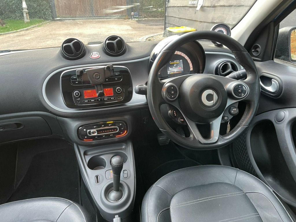 Discover this 2016 Smart forfour Prime, a stylish and practical city car that offers an exceptional ownership experience. Powered by an efficient 1.0L petrol engine, this Euro 6 compliant model boasts impressive fuel economy, achieving up to 67 miles per gallon. Inside, you'll find a comfortable and well equipped cabin featuring heated front seats for those chilly mornings, and a panoramic roof with sun protection to brighten your journeys. Stay connected on the go with the integrated Bluetooth hands free system, allowing for audio streaming and easy phone calls. Automatic climate control ensures a pleasant temperature year round, making every drive a comfortable one.This Smart forfour Prime stands out with its remarkably low insurance group, making it an economical choice for many drivers. Its low CO2 emissions further contribute to its appeal, indicating a more environmentally conscious performance. These highlights, combined with its excellent fuel efficiency, demonstrate how this vehicle offers a superior driving experience compared to many others in its class, providing both cost savings and a refined journey. volt socket with cover, 15in alloy wheels - 5-twin-spoke painted in black with a high-sheen finish, 85 degree wide opening rear doors, abs - anti lock braking system, airbag - full size driver, airbag - full size passenger, airbag - kneebag for driver, airbag - side for head-thorax, airbag - sidebags, anti-theft alarm system, audio streaming via bluetooth module, automatic climate control, automatic hill start assist on uphill slopes, aux-usb, bluetooth hands-free system, breakdown kit, central locking with radio remote control, centre console with pull-out tray, crash sensor auto switch-on of hazard warning lights, crosswind assist, cruise control with speedtronic variable speed limiter, cup holder x 2, dashboard instruments with cockpit clock and rev counter, dashboard and door centre panel - black fabric - black-grey highlights, direct-steer system with speed sensitve power assistance and variable steering ratio, door mirror caps in tridion colour, door mirror with aspherically curved mirror glass on driver side, drive lock - automatic door locking when the vehicle is in motion, esp - electronic stability programme, electric windows, gearshift lever - trimmed leather, grab handle for front passenger, headlights - h4 halogen, headrests at the rear x 2, hydraulic brake assist, isofix child seat attachment points on rear seats, immobiliser, instrument cluster with multi functional colour 3.5in display, interior door handle - matt chrome, led daytime running lights, lane-keeping assist with acoustic and optical warning, load-lashing eyes in luggage compartment, lockable glove compartment, lockable service bonnet, luggage compartment cover, luggage compartment lighting, outside temperature display, painted door handles, painted front grille, panoramic roof with sun protection, passenger seat backrest foldable down for through loading, pedestrian impact protection front and side, pollen filter, radiator trim - black, radio - am-fm, reading light for driver and passenger, readyspace seats at rear with removable cargo box, rear seats - backrest 50:50 split with cargo position, rear spoiler, rear windscreen - heated with timer control, rear windscreen wiper with intermittent wiper and automatic wipe - wash function, seat belt reminder for driver and passenger, seats - heated front, smart audio-system, speakers x2, steering wheel - 3 spoke-leather, steering wheel - multifunction, storage compartment in front doors, sunglasses holder, third rear brake light, ticket holder, tridion safety cell in black solid paint, trip computer, tyre pressure monitoring system, vanity mirror in sunvisor, white side indicators, 16in alloy wheels - 5-twin-spoke painted in black, privacy glass, leather - black with grey stitching, premium package