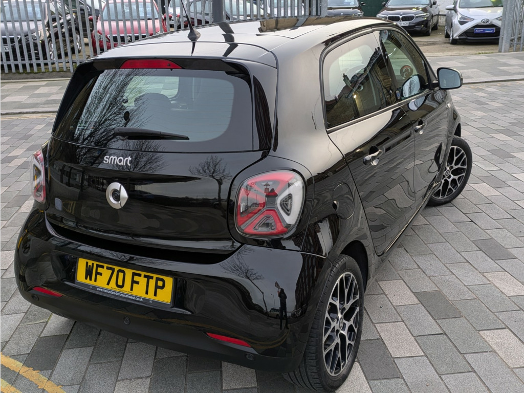 Smart Forfour EQ – The Perfect City Companion, , Registered late 2020, this 70-plate Smart Forfour EQ has quickly become one of our absolute favourites — and its easy to see why. Compact, luxurious, and incredibly easy to drive, this little electric gem makes everyday trips a breeze. Whether its the school run, a supermarket dash, or weaving through city traffic, the Forfour EQ turns every journey into a smooth, comfortable, and genuinely enjoyable experience. , Charging made simple. The Smart prefers modern 11 kW chargers like those found at newer supermarkets or public stations. For example, a full charge at our local Aldi Superstore takes around 1 hour 40 minutes and costs just £5.74 (including VAT). Charging at home overnight is even cheaper — under £3, even when you pre-heat the cabin for an 8 a.m. start. Step inside a perfectly warm, fully defrosted car each morning, powered by your homes electricity rather than the battery. , Real-world range. Officially, the Forfour EQ can manage up to 80 miles per charge — though, as with all EVs, your range will vary depending on the driver, weather, and route. With Eco mode engaged, smooth anticipation of the road ahead, and sensible heating use, we consistently achieve around 50 miles on a single charge. Thats more than enough for most daily commutes or errands. , This car thrives in the city. Stop-start traffic is its natural playground — no diesel filters, no injector issues, no fuel bills, and no stress. Just clean, quiet, electric performance every time. , And the luxury touches? Theyre all here. Heated leather seats, a panoramic sunroof, and a built-in reversing camera make every drive that bit more special. No engine to maintain, no fuss — just pure, modern simplicity. , All this can be yours for as little as £5 a day on finance (Assuming a £650 deposit at an APR of 9.9% subject to status). Come see why we love this Smart so much — book your viewing and full demonstration today. Until then, well keep enjoying ours, every single mile. , Business User? This one-owner car is VAT-qualifying, and the price includes VAT. , (Friendly & Customer-Focused):, Our pricing is simple and fair for everyone. No haggling, no surprises—the price you see is always the price you pay. Clear, transparent, and stress-free shopping the way it should be.