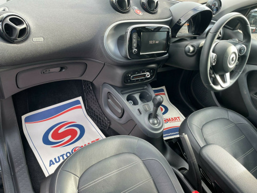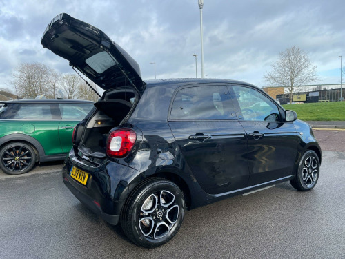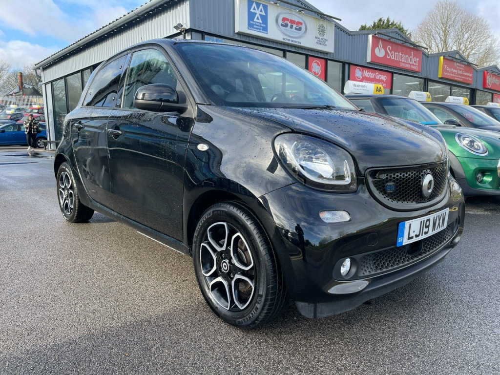 This 2019 Smart forfour EQ Prime (Premium Plus) boasts an exceptionally low mileage of just 21,071 miles, a significant advantage for its age, and comes with a full service history, with its last service completed on 19 February 2026 at 21,071 miles. This electric vehicle offers a battery with a total capacity of 18 kWh, providing a maximum range of 96 miles when new. Charging is convenient, with a full charge at home using a 7kW charger taking approximately 3 hours and 46 minutes. The vehicle is presented with 12 months MOT and a 3 month warranty for your peace of mind.The Premium Plus equipment line enhances this Smart forfour, featuring automatic headlights and a rear parking camera for easier manoeuvring. The Winter Package adds significant comfort, including heated seats for both the driver and front passenger, as well as a heated steering wheel. Further enhancing comfort and privacy, it includes heat insulating dark tinted glass for the rear side windows and rear window. These features, combined with its electric powertrain and low mileage, position this Smart forfour as a compelling choice for those seeking an efficient and well equipped city car.. 12 Volt Socket with Cover, 15in Alloy Wheels - 5-Twin-Spoke Painted in Black with a High-Sheen Finish, 7KW on-board Charger, 85 Degree Opening Rear Doors, ABS - Anti-Lock Braking System with Electronic Brake Force Distribution, Active Brake Assist with Autonomous Braking Function, Airbag - Kneebag for Driver, Airbags - Driver and Passenger, Airbags - Sidebags for Driver and Front Passenger - Pelvis-Thorax Bag, Breakdown Kit with Air Compressor and Sealant, Central Locking with Radio Remote Control - Visual Locking-Verification Signal and Immobiliser, Centre Console with Drawer and Double Cupholder at Front - Cupholder at Rear, Charging Cable - Household Socket, Charging Cable - Wallbox-Public Charging Stations, Charging Cable Bag, Charging Cable Package, Comfort Windscreen Wipers with Intermittent Wiper Control and Automatic Wipe-Wash Function, Crash Sensor for Activation of Hazard Warning Lights, Crosswind Assist, Cruise Control with Speedtronic Variable Speed Limiter, Dashboard Instrument - Battery Charge Status and Power Indicator, Dashboard and Door Centre Panel - Black Fabric, Direction Indicators with Lanechanger Function, Door Mirror Caps in Tridion Colour, Door Mirror with Aspherically Curved Mirror Glass on Driver Side, Door Mirrors - Electrically Adjustable and Heated - Drivers, Drive Lock - Automatic Door Locking when the Vehicle is in Motion, Drivers Seat - Height Adjustable, ESP - Electronic Stability Programme, Electric Power Steering, Electric Windows, Front Passenger Seat with Through-Loading Function - Fully-Folding Backrest, Gearshift Lever Knob in Leather - Chrome, Headlamp Range Adjustment - Manual, Heated Seats for Driver and Front Passenger, Hill Start Assist, Inside Door Opener - Matt Chrome, Instrument Cluster with 3.5-inch Colour TFT Display and Trip Computer, Interior Lighting, Load-Lashing Eyes in Luggage Compartment, Lockable Glove Compartment, Luggage Compartment Cover, Luggage Compartment Lighting, MirrorLink, Outside Temperature Display with Frost Warning, Painted Door Handles - Body Colour, Panoramic Roof with Sun Protection, Parking Assistance - Rear, Premium Plus Equipment Line, Radiator Trim - Grained Black, Reading Light for Driver and Passenger, Rear Bench Seat with One-Piece Folding Rear Seat Backrest, Rear Windscreen Wiper with Intermittent Wiper and Automatic Wipe - Wash Function, Ruffled Pocket on Driver and Passenger Backrests, Seat Belt Reminder for Driver and Passenger, Seat Belts - Height Adjustable for Driver and Front Passenger, Seat Belts - Three-Point with Seat Belt Tensioners and Belt Force Limiters, Side Windows at Rear Manually Operated, Smart Control, Smart Media-System, Smart Road Assistance, Steering Wheel - 3-Spoke Multi-Function - Leather with Anthracite Bezel, Storage Compartment in Front Doors, Storage Compartment in Rear Doors, Storage Net on Console and Handbag Attachment Point on Front Passenger Seat, Summer Tyres, Sun Visor for Driver with Parking Ticket Holder and Front Passenger, Sunglasses Holder, Third Brake Light Featuring LED Technology, Tyre Pressure Monitoring System, Vanity Mirror in Sun Visor for Driver and Front Passenger, White Side Indicators, Window Bag, i-Size Child Seat Attachment System on Front and Rear Passenger Seat, Tridion Safety Cell in Black Solid Paint. Full service history