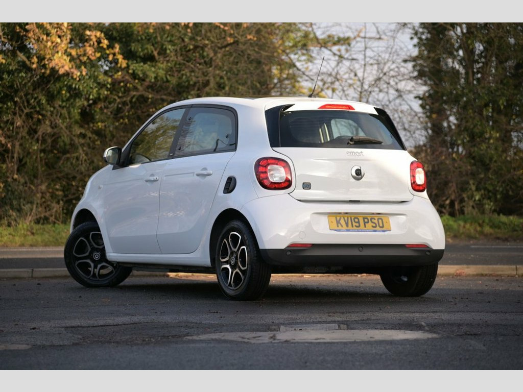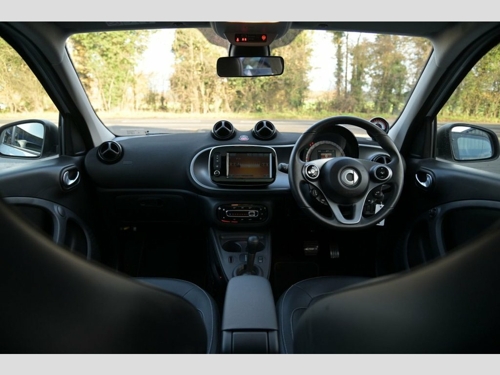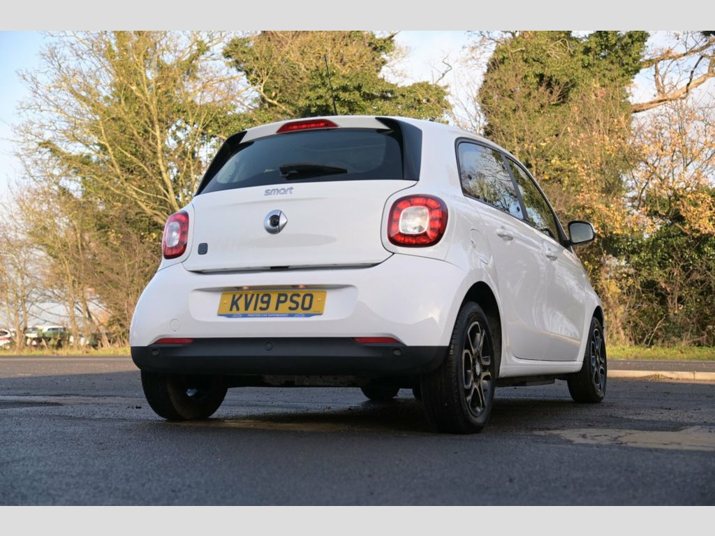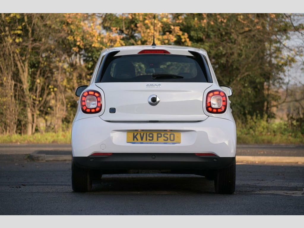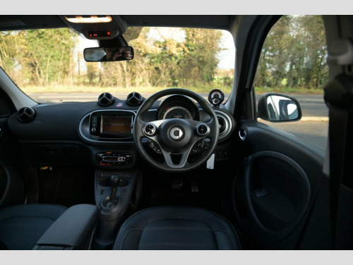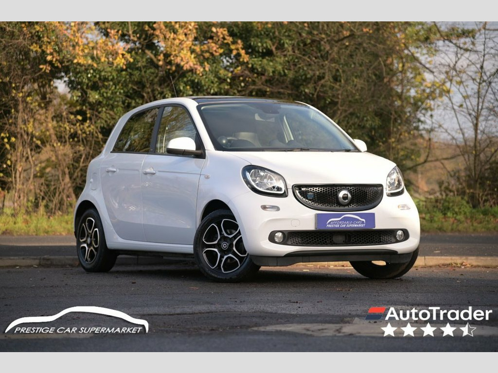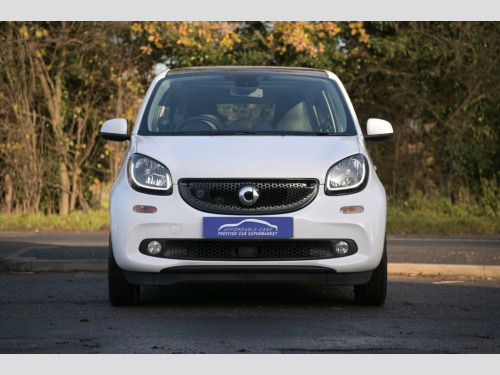 Prestige Car Supermarket in York presents this 2019 Smart ForFour EQ Prime Premium Plus, an all-electric hatchback producing 82 ps with a 17.6 kWh battery and rapid 22 kW onboard charging, finished in Ice White with black leather upholstery featuring grey stitching. This highly equipped model includes a panoramic roof, 15in 5-twin-spoke alloy wheels, heated and electrically adjustable door mirrors, LED light guide headlights, front fog lamps with cornering function and rain-light sensor. The cabin offers heated front seats, height-adjustable driver's seat, folding front passenger backrest with through-loading, centre armrest, ambient lighting, black fabric dashboard and door panels, leather-chrome gear selector and a 3.5-inch TFT instrument cluster displaying battery status and trip data. Convenience features comprise electric windows, automatic drive locking, Smart's comfort windscreen wipers, rear bench with folding backrest, luggage compartment cover, lighting and lashing points, plus a lockable glovebox. Technology highlights include DAB radio, MirrorLink smartphone integration, cruise control with Speedtronic limiter, parking assistance with rear sensors and rear-view camera, and an outside temperature display with frost warning. Safety equipment is extensive with ABS, ESP, Hill Start Assist, Crosswind Assist, multiple airbags including driver kneebag and pelvis-thorax bags, Active Brake Assist with autonomous braking and a crash sensor for hazard activation. C Leather - Black with Grey Stitching, Ice White, 12 Volt Socket with Cover, 15in Alloy Wheels - 5-Twin-Spoke, 22kW Onboard Charger, 85 Degree Opening Rear Doors, ABS - Anti-Lock Braking System with Elec, Active Brake Assist with Autonomous Brak, Airbag - Kneebag for Driver, Airbags - Driver and Passenger, Airbags - Sidebags for Driver and Front , Ambient Lighting, Central Locking with Radio Remote Contro, Centre Armrest, Centre Console with Drawer and Double Cu, Charging Cable - Household Socket, Charging Cable - Wallbox-Public Charging, Charging Cable Bag, Charging Cable Package, Comfort Windscreen Wipers with Intermitt, Crash Sensor for Activation of Hazard Wa, Crosswind Assist, Cruise Cont